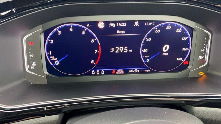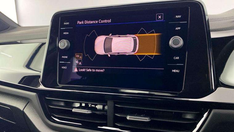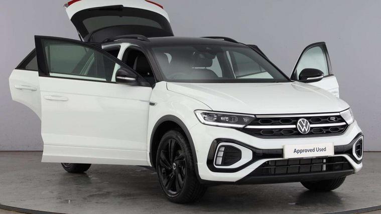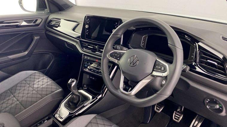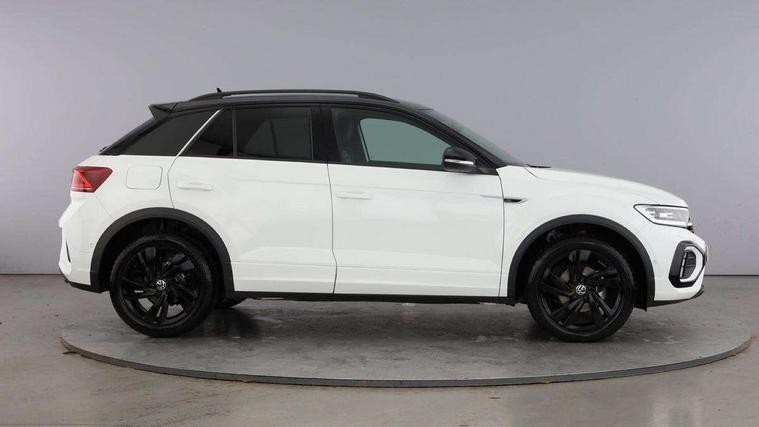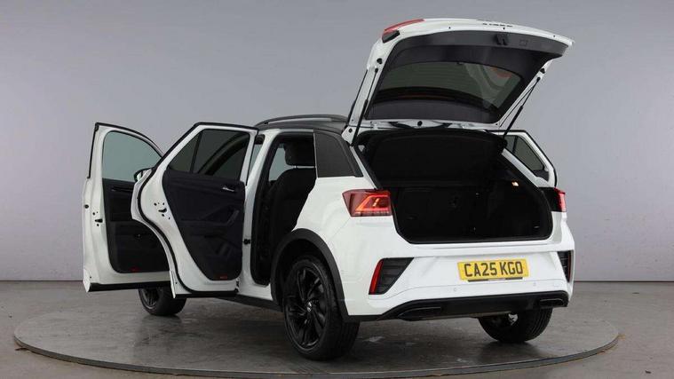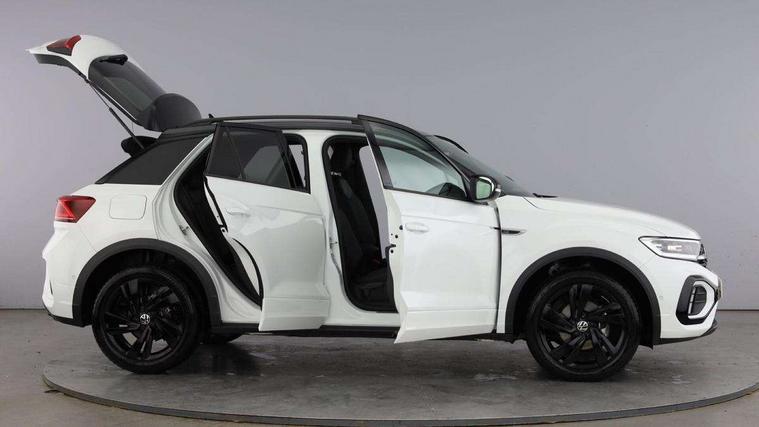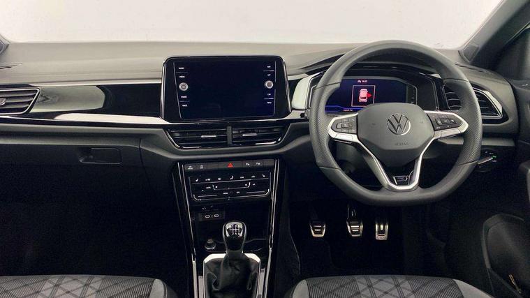 10.25" Digital cockpit pro, Advanced driver attention and drowsiness monitor, Emergency call service, Lane keeping system Lane Assist, Mobile phone interface, Modified key software - reduce switch off time for key status change to Long no motion, Online services, Park assist including front and rear parking sensors, Power assisted speed sensitive steering, Service interval indicator, Tailgate/trunk lid release from outside, Think blue trainer driver tips and journey analysis, Warning sound and light for front seatbelts unfastened, Wireless app connect, Battery regeneration during braking, Rear shock absorption chassis with increased ride height, Start/stop function with battery regeneration, DAB Digital radio, Diversity antenna for FM reception, Front and rear 6 speakers, Music playback - MP3, WMA and AAC files, Premium USB cable in choice of either Apple or Android smartphone compatibility, SD card slot, Simultaneous pairing of 2 compatible mobile devices, Title and cover art display, We Connect and We Connect Plus functionality, Auto dimming interior rear view mirror, Automatic hazard lights activation under emergency braking, Automatic headlight control with LED separate daytime running lights with coming/leaving home function, Dynamic cornering light, Electrically adjustable and heated door mirrors, Extended roof spoiler, Exterior mirrors aspherical on driver side, convex on front passenger side, External USB type C socket and charging sockets, Front windscreen wiper with intermittent wipe and 4 position delay, Heated rear window, Illuminated front grille, IQ LED matrix headlights, LED 3rd brake light, LED rear number plate lights, LED rear tail lights with dynamic turn signal, Light mode for poor weather, rain, fog or snow, Power windows with comfort operation and circuit breaker, R-Line design body coloured bumpers, Rain sensor, Rear exhaust tailpipe, Rear fog light on one side and reversing lights on both sides, Rear side wing doors, Rear wash/wipe with intermittent wipe setting, Remote electrically foldable door mirrors, puddle lights and reverse activated passenger's door mirror, 12V power socket in centre console, 3 rear head restraints, 3 seat bench in 2nd row, 4 load lashing points in luggage compartment, Air care climatronic air conditoning system with active combination filter and 2-zone temperature control, Artvelours cloth upholstery, Black roof lining, Chrome plated radiator grille inserts, air vent surrounds and light switch surrounds, Door and side trim panel with leatherette insert, Drawer under drivers seat, Driver seat height adjust, Driver's seat lumbar support, Front + rear carpet mats, Front centre armrest, Front comfort sports seats, Front cupholders x 2, Front footwell illumination, Front reading light, Front scuff plates with R Line logo, Front seat back storage pockets, Glove compartment door with light, Instrument lighting, white adjustable panel illumination, Interior ambient lighting and surround lighting, Interior light delay, Isofix child seat preparation, Leather gearshift handle, Load-through provision with cup holder when folded down ('Unsplit rear seat bench, split folding backrest, with centre armrest), Luggage compartment lighting, Non-folding front passenger seat backrest, Passenger seat height adjuster, Passenger seat lumbar support, Single front passenger seat, Stainless steel pedals, Storage compartment in left and right luggage area, Storage compartment in rear doors, Storage compartments in driver and front passenger doors, Sunvisors with illuminated vanity mirrors, Variable boot floor, height adjustable and removable, Winter pack without heated windscreen washer jets - T-Roc, 3 point height adj front seatbelts + pretensioners, 3 point seatbelts in outer rear with ECE label, ABS, Child locks on rear doors, City emergency braking and pedestrian monitoring, Driver and front passenger airbag with front passenger airbag deactivation, Driver and front passenger safety-optimised head restraints, Drivers seatbelt reminder, Electronic parking brake, Electronic Stability Control (ESC) inc EDL (Electronic Differential Lock) and ASR (Traction Control), Front and rear passengers curtain airbag system including front side airbags, Front disc brakes, Hill start assist, Predictive pedestrian protection, Rear disc brakes, Two tone horn, Tyre pressure loss indicator, Volkswagen roadside assistance, Tool kit, Trims for alloy wheels, Tyre mobility kit including compressor and sealing foam,