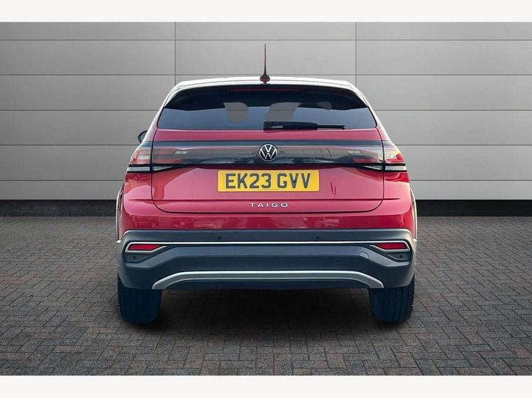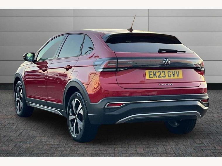 App-Connect including App-Connect Wireless, Digital cockpit pro - 10.25" high resolution TFT dash display screen with customizable menus and information, Driver alert system, e-Call (emergency call), Power Steering, Travel assist including emergency assist, Washer fluid level indicator, Wireless Charging including Bluetooth, Rear shock absorption, Start-stop system with battery regeneration (recuperation - energy recovery during braking), Digital radio reception (DAB+), Diversity antenna for FM reception, WeConnect plus, Advanced high beam control dynamic light assist for LED matrix headlamps, Aspherical driver's exterior mirror, Body coloured bumpers and radiator grille with chrome trim and front fog lamps with chrome bezel, Body coloured exterior mirror housings and door handles, Dual chrome twin tailpipes on left and right, Dynamic headlight range control, Electric windows, Exterior ambient lighting in illuminated front grille, External USB type C socket and charging sockets, Front fog lamps with cornering function, LED matrix headlamps, LED rear combination lamp, LED third brake light, Left convex exterior mirror, Power folding adjustable/heated exterior mirrors and front passenger exterior mirror lowering function, Rear fog light on one side, reversing light on both sides, Rear side wing doors, Rear wash/wipe with intermittent wipe setting, 12V socket in centre console, 2 front reading lights, 3 rear head restraints, 3 seat bench in 2nd row, Air care climatronic air conditoning system with active combination filter and 2-zone temperature control, Ambient lighting with logo projection, Black carpets, Child seat anchor for child seat system i-Size, 2x top tether and child seat anchor in front on front passenger side, Chrome bezel for instrument cluster, vents, door handles + gear shift, Driver and front passenger seat height adjustment, Front + rear carpet mats, Front centre armrest, Front footwell illumination, Front sports comfort seats, Height and reach adjustable steering wheel, Interior ambient lighting and surround lighting, Leather trimmed gear knob, Leather wrapped multifunction steering wheel, Luggage compartment floor, Luggage compartment light, Lumbar support for driver's and front passengers seat, Single front passenger seat, Split folding backrest with centre armrest and unsplit rear seat bench, Storage compartment under front seats, Sun visors with illuminated vanity mirrors, Chrome Package - Taigo, Drivers assistance pack - Taigo, Light and sight pack - Taigo, 2 x 3-point seatbelts/outer rear seats with ECE label, 3-point seat belts in front with pretensioner and height adjustment, 3-point seatbelt for centre rear seat, Driver and front passenger airbags with front passenger airbag de-activation, front side and curtain airbags, Driver and front passenger safety-optimised head restraints, Electronic stability control, Extended and predictive pedestrian/ cyclist protection, Front and rear disc brakes, Front curtain and side airbags with center airbag, Hill start assist, Manual rear child locks, Single tone horn, Tyre pressure loss indicator, Anti-theft alarm system with interior monitoring, backup horn, and towing protection, Anti-theft wheel bolts, Low rolling resistance tyres,