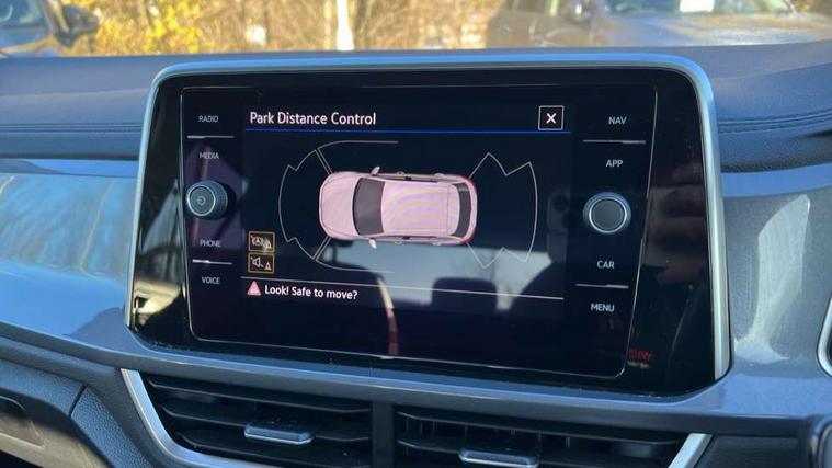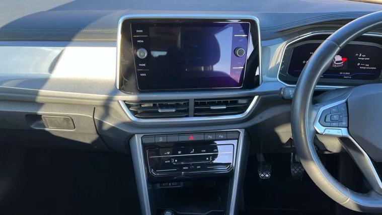 10.25" Digital cockpit pro, Bluetooth mobile phone interface, Driver alert system with fatigue detection, Driver tips and journey analysis, Dynamic road sign display, Emergency call service, Lane keeping system Lane Assist, Modified key software - reduce switch off time for key status change to Long no motion, Online services, Park assist including front and rear parking sensors, Power assisted speed sensitive steering, Service interval indicator, Tailgate/trunk lid release from outside, Think blue trainer driver tips and journey analysis, Warning sound and light for front seatbelts unfastened, Wireless app connect, Battery regeneration during braking, Front shock absorption, Rear shock absorption chassis with increased ride height, Start/stop function with battery regeneration, Diversity antenna for FM reception, Front and rear 6 speakers, Music playback - MP3, WMA and AAC files, Premium USB cable in choice of either Apple or Android smartphone compatibility, SD card slot, Simultaneous pairing of 2 compatible mobile devices, Title and cover art display, We Connect and We Connect Plus functionality, 3rd brake light, Auto dimming interior rear view mirror, Automatic hazard lights activation under emergency braking, Automatic headlight control with LED separate daytime running lights with coming/leaving home function, Body colour sports bumpers with silver metallic underbody fascia, Dynamic headlight range control with self adjusting whilst driving, Extended roof spoiler, Exterior mirrors aspherical on driver side, convex on front passenger side, External USB type C socket and charging sockets, Front windscreen wiper with intermittent wipe and 4 position delay, Heated rear window, LED Plus headlamps, LED rear combination lamps, LED rear number plate lights, LED tail lamp rear comination lamps, Light mode for poor weather, rain, fog or snow, Power windows with comfort operation and circuit breaker, Rain sensor, Rear exhaust tailpipe, Rear fog light on one side and reversing lights on both sides, Rear side wing doors, Rear wash/wipe with intermittent wipe setting, Remote electrically foldable door mirrors, puddle lights and reverse activated passenger's door mirror, 12V power socket in centre console, 3 rear head restraints, 3 seat bench in 2nd row, 4 load lashing points in luggage compartment, Air care climatronic air conditoning system with active combination filter and 2-zone temperature control, Chrome plated radiator grille inserts, air vent surrounds and light switch surrounds, Door and side trim panel with leatherette insert, Drawer under drivers seat, Front + rear carpet mats, Front centre armrest, Front comfort sports seats, Front cupholders x 2, Front footwell illumination, Instrument lighting, white adjustable panel illumination, Interior ambient lighting and surround lighting, Interior light delay, Isofix child seat preparation, Leather gearshift handle, LED interior light with switch off delay/dimmer and 2 front/rear LED reading lights, Load-through provision with cup holder when folded down ('Unsplit rear seat bench, split folding backrest, with centre armrest), Luggage compartment lighting, Non-folding front passenger seat backrest, Single front passenger seat, Storage compartment in left and right luggage area, Storage compartment in rear doors, Storage compartments in driver and front passenger doors, Sunvisors with illuminated vanity mirrors, Variable boot floor, height adjustable and removable, Driver assistance pack without proactive passenger protection - T-Roc, 3 point height adj front seatbelts + pretensioners, 3 point seatbelts in outer rear with ECE label, ABS, Child locks on rear doors, Driver and front passenger airbag with front passenger airbag deactivation, Driver and front passenger safety-optimised head restraints, Drivers seatbelt reminder, Electronic parking brake, Electronic Stability Control (ESC) inc EDL (Electronic Differential Lock) and ASR (Traction Control), Front and rear passengers curtain airbag system including front side airbags, Front assist with city emergency braking and pedestrian monitoring, Front disc brakes, Front seat side impact airbags, Predictive pedestrian protection, Rear disc brakes, Single tone horn, Tyre pressure loss indicator, Volkswagen roadside assistance, Alarm with interior protection, Anti-theft alarm system with interior monitoring, backup horn, and towing protection, Remote central locking with SAFELOCK, radio remote control with 2 remote control folding keys, Trims for alloy wheels,