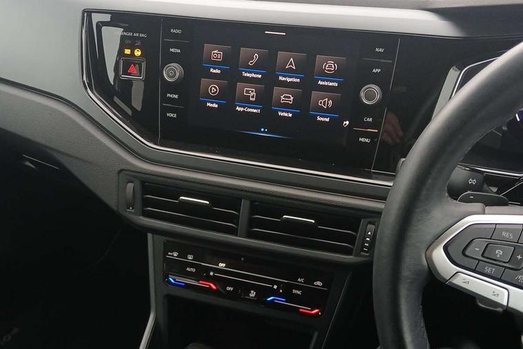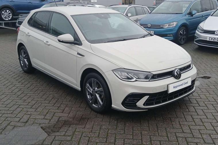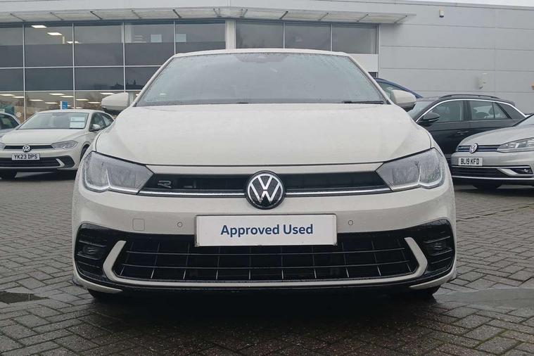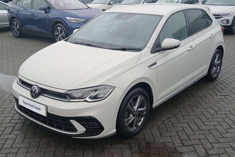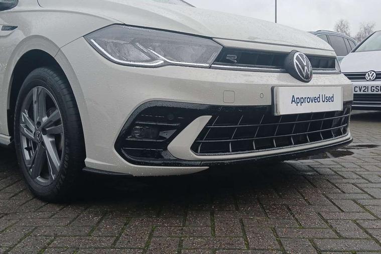 Adaptive cruise control with follow-to-stop and speed limiter, Bluetooth mobile phone interface, Digital Cockpit Pro with 10.25" Display, Driver alert system, Dynamic road sign display, Emergency call service, Power assisted speed sensitive steering, Preparation for We connect and We connect plus, Speedo and rev counter, electronic odometer, trip, service interval display and fuel gauge, Standard rear axle, Travel Assist - Lane keeping system and traffic jam assist, Travel assist including emergency assist, Trip computer, Warning signal and warning light for front and rear seatbelts not fastened, Washer fluid level indicator, Wireless app connect, Front wheel drive, Rear shock absorpion, Start-stop system with battery regeneration (recuperation - energy recovery during braking), DAB Digital radio, Diversity antenna for FM reception, Front and rear 6 speakers, Body colour bumpers, Body colour door handles, Body colour door mirrors, Electric front windows, Front scuff plates with R-Line logo, Heat insulating darkened glass in side and rear windows, Heat insulating glass windscreen, Power folding adjustable/heated exterior mirrors and front passenger exterior mirror lowering function, Rear electric windows, Rear fog light, Rear side wing doors, Rear tinted glass from B-pillar backwards approx 65% tinted, Rear windscreen washer and wiper with interval delay, Third brake light, 12V power socket in centre console, 2 USB-C ports in the front, 2 USB-C charging sockets on the center console in the rear, 3 rear head restraints, 60/40 split folding rear seat and rear seat bench not split, Air care climatronic air conditoning system with active combination filter and 2-zone temperature control, Black roof lining, Chrome plated radiator grille inserts, air vent surrounds and light switch surrounds, Door and side trim panel, Driver and front passenger seat height adjustment, Driver/passenger sunvisors with illuminated vanity mirrors, Front + rear carpet mats in recycled material, Front centre armrest, Front footwell illumination, Front seat backrest storage pockets, Front sports comfort seats, Handbrake lever handle in leather, Headliner in recycled material, Isofix child seat preparation easy-fit (for two outer rear seats, and front passenger seat) compatible with I-size, Karoso artvelours cloth upholstery, Leather trimmed gear knob, LED interior light with switch off delay and dimmer, 2 reading lights front and rear, Luggage compartment cover, Luggage compartment floor, Luggage compartment lighting, Lumbar adjustment for front seats, Single front passenger seat, Stainless steel pedals, Standard pedal cluster, Three spoke leather wrapped multifunction steering wheel with shifting paddles, Light and sight pack - Polo R-Line/Black Edition, 3 point height adj front seatbelts + pretensioners, 3x3 point rear seatbelts, ABS, Driver and front passenger airbag with front passenger airbag deactivation, Drivers and front passengers safety optimised head restraints, ESC (Electronic stability control) + EDL (Electronic Differntial lock) and ASR (Traction control), Extended and predictive pedestrian/ cyclist protection, Front curtain and side airbags with center airbag, Hill hold control, Manual child lock in rear doors, Single tone horn, Tyre pressure loss indicator, Alarm with interior protection, Anti-theft alarm system with interior monitoring, backup horn, and towing protection, Anti-theft wheel bolts, Electronic engine immobiliser, Chrome applications on rotary light, mirror adjustment, window regulator switches, outlet with frame in black, Dark grey anodised matt decorative inserts in dash and front door panels, Low rolling resistance tyres,