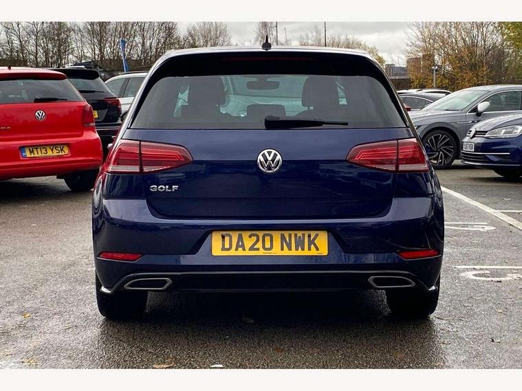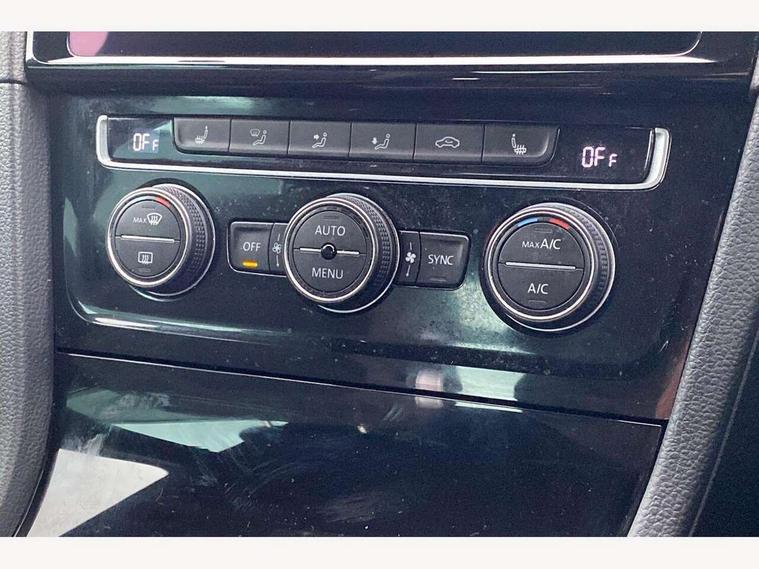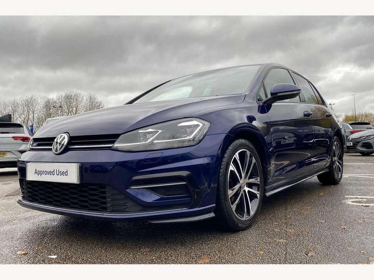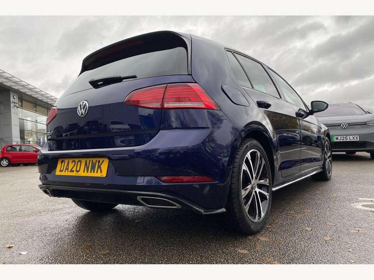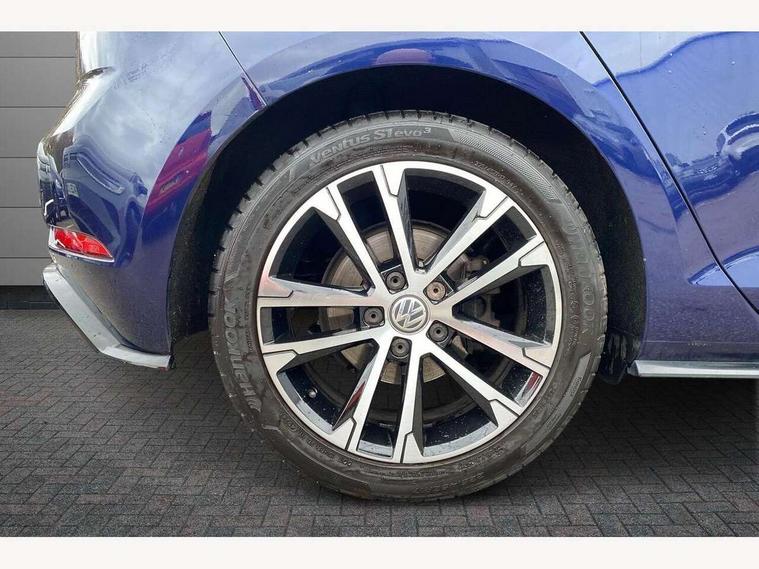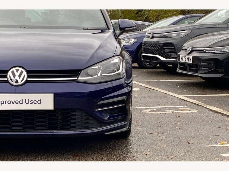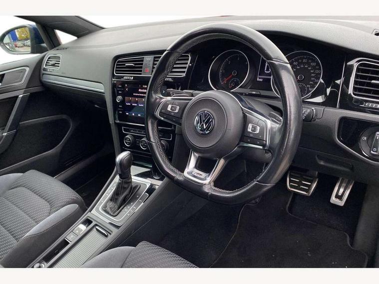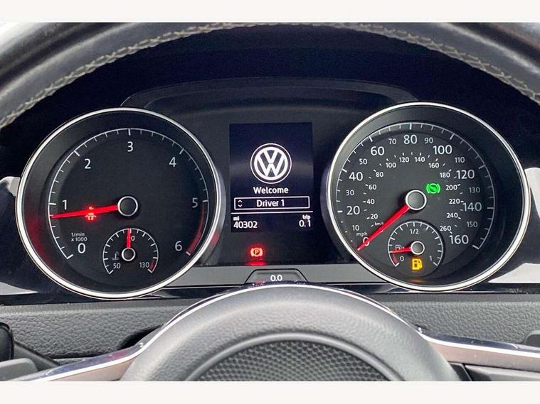 'Lights On' Reminder warning buzzer, ACC - Adaptive cruise control with front assist, forward collision warning, distance monitoring, city emergency brake and speed limiter, Bluetooth telephone and audio connection for compatible devices, Brake pad wear indicator warning light, Driver alert system, Driving Mode Selection with four preset modes - Eco, normal, sport or individual modes, Misfuelling protection device, Multifunction computer with visual gear change recommendation for fuel consumption, Power assisted speed sensitive electro-mechanical steering, Push tank flap, Speed limit display, Speedo, rev counter, electronic odometer, trip, service interval display, exterior temperature and fuel gauge, Stop/start system, Think blue trainer driver tips and journey analysis, Warning buzzer and light for front seatbelts unfastened, Battery regeneration during braking, Diesel particulate filter, XDS electronic differential lock, Composition media system, DAB Digital radio receiver, Driver Personalisation profile selection, MP3/WMA compatability, Multi device interface (MDI) via USB connection, Premium USB cable in choice of either Apple or Android smartphone compatibility, SMS Functionality, Title and cover art display, USB and SD card connectivity, Volkswagen media control, Black front air intake and radiator grille with chrome insert, Body colour bumpers, Body colour door handles, Body colour door mirrors with integrated indicators, Dusk sensor + automatic driving lights, Electric front windows, Electric rear windows, Electrically adjustable and heated door mirrors, Fully galvanised body, Heated rear windscreen, High level 3rd brake light incorporating LED Technology, Left and right chrome effect trapezoid dummy exhaust tailpipe surrounds, Range adjustable headlights via infotainment system with LED daytime running lights, Rear diffuser, Rear fog lamp, Rear number plate lights incorporating LED technology, Rear tinted glass 65% light absorbing from B pillar backwards, Rear window aerial, Rear window wash/wipe with intermittent wipe, Reflectors in all doors, Stainless steel door sill protection, Unique R Line badging, Windscreen wipers/ intermittent wipe + 4 position delay, 12V socket in luggage compartment, 3 rear headrests, 4 load lashing points in luggage compartment, 60/40 split folding rear seat backrest, Bag hook in luggage compartment x 2, Black roof lining, Climate control - 2 zone electronic air conditioning with automatic air recirculation and allergy filter, Cooled glovebox, Cover for storage compartment in centre, Dust/pollen filter, Embosseed R line logo on front sport seat backrest, Front + rear carpet mats, Front centre armrest with storage compartment and two rear air vents, Front seat back storage pockets, Grab handles front x 2, rear x 2 with integrated coat hooks, Height and reach adjustable steering wheel, Illuminated vanity mirrors, Instrument lighting white adjustable panel illumination, Interior light delay, Isofix preparation for 2 rear child seats, Leather gear knob and handbrake grip, Load through provision with rear centre armrest and cupholders x2, Luggage compartment lighting, Multifunction sports leather steering wheel with R-Line logo and decorative seams in crystal grey including paddle shift, Overhead storage box, Stainless steel pedals, Storage box in luggage compartment, Storage compartment in roof console with cover, Storage compartments in centre console, Storage compartments in front doors, Storage compartments in rear doors, Stowable luggage compartment cover, Sun visors, Variable boot floor, height adjustable and removable, Ambient lighting pack - Golf, Convenience Pack - Golf, Mirror pack - Golf, R Line Styling pack - Golf, Winter pack - Golf, 3 rear three point seatbelts, Airbags - Driver's and front passenger's, curtain airbag, Driver's knee, front side impact and passenger's airbag deactivation switch, Anti-lock Braking System (ABS) with Hydraulic Brake Assist (HBA), Automatic post collision braking system, Child locks on rear doors, Driver/Passenger optimised head restraints, Electronic parking brake with auto hold, Electronic stability control (ESC) including Electronic differential lock (EDL) and ASR (Traction control) with deactivation via infotainment system, Front ventilated disc brakes and rear disc brakes, Pre crash preventive occupant protection, Three point height adjustable front seatbelts with tensioners, Tyre pressure loss indicator, Alarm with interior protection and deactivation via infotainment system, Electronic engine immobiliser, Chrome plated air vent surround, Chrome plated electric mirror adjustment switch surround, Chrome-plated light switch surround, Dark Diamond decorative inserts in dash and door panels, Piano black decorative inserts in centre console, Steel space saver spare wheel,