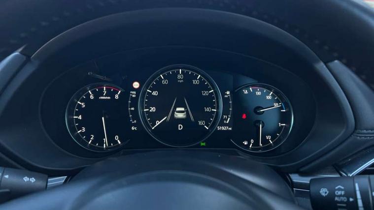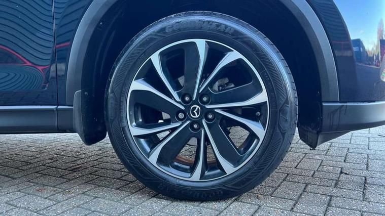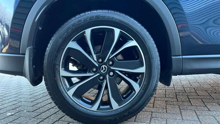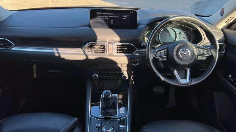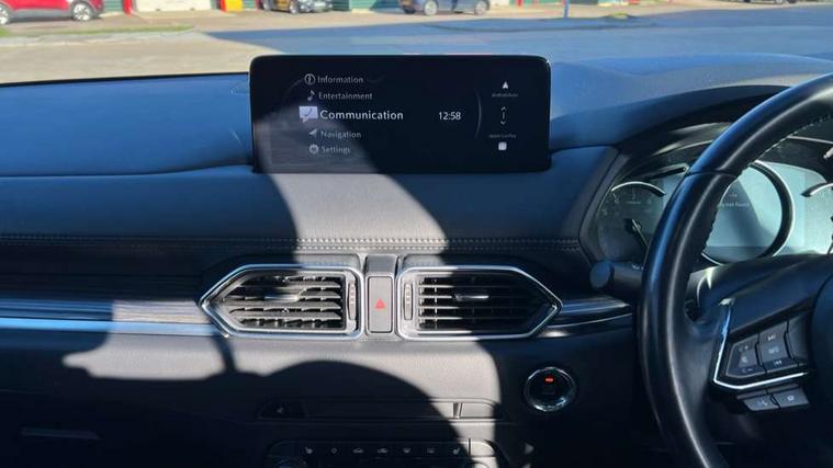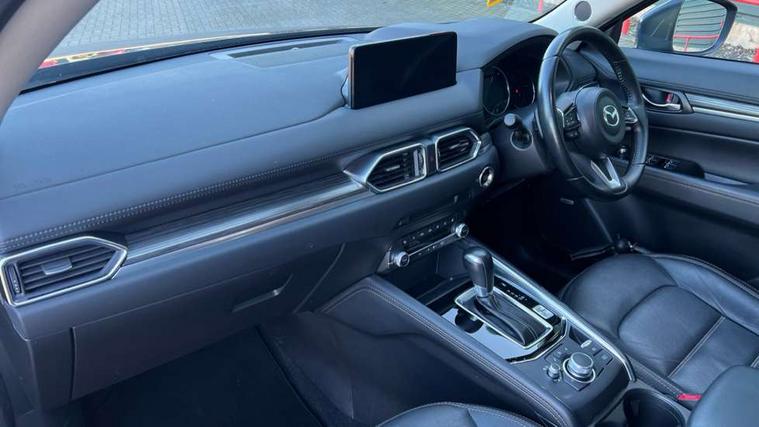 10.25" display with Mazda Connect infotainment, 7" colour TFT display, Advanced blind spot monitoring, Bluetooth connectivity with voice control, Collision prevention assist, Connected services, Cruising Traffic Support, Drive mode selector, Electric power steering, Emergency stop signalling system, Engine start/stop button, Forward collision warning, Front and rear parking sensors, Integrated navigation system, Intelligent speed assist, Lane departure warning system, Lane keep assist, Power liftgate, Qi wireless phone charging, Radar cruise control with Stop and Go, Rear cross traffic alert, Reversing camera, Service indicator, Traffic sign recognition (TSR), Trip computer, Windscreen projected colour active driving display (HUD) with memory, Wireless apple car play/android Auto, Cylinder Deactivation, i-stop, AM/FM radio, Bluetooth audio streaming, Bose premium sound system with 10 speakers, DAB Digital radio, Multimedia Commander including separate volume dial, Steering wheel mounted audio controls, Adaptive front lighting system, Auto dimming rear view mirror, Automatic headlights, Black inlay dashboard panel, Body colour door mirrors, Body colour roof spoiler, Body coloured front and rear black lower bumper mouldings, Coming/leaving home lighting function, Door mirror integrated indicators, Dual chrome tailpipes, Dusk sensitive headlamps, Electric front/rear windows with one touch auto up/down, Front grille in gloss black finish, Front grille in gloss black finish with chrome signature wing, Gloss black B and C pillars garnish, High beam assist, Intermittent rear wash/wipe, LED auto levelling, LED daytime running lights, LED front fog lights, LED Headlights, LED third brake light, Power folding and heated door mirrors, Power tilt/slide sunroof, Privacy glass (rear side windows only), Rain sensing front wipers, Rear side wing doors, Satin black side mouldings, Scuff plates, Shark fin antenna, Signature LED rear combination lights, Variable intermittent front wash/wipe, Vinyl with wood grain metal inlay door trim panel, Windscreen wiper de-icer, 12v electrical power outlet, 3 seat bench in 2nd row, 3 stage heated front seats, 40:20:40 Karakuri fold-flat seat system, 6 way electric adjustable passenger seat, 8 way electric driver seat with lumbar support + memory, Cargo room flat floor board with waterproof undertray, Driver seat power slide, recline and height adjustment, Driver, Front passenger and two rear grab handles with coat hooks, Driver/passenger front seatback pockets, Driver/passenger sunvisors + illuminated vanity mirrors (drivers with ticket holder), Dual zone climate control, Folding centre armrest with 2 cup holders, Front and rear door pockets, Front centre storage with two cupholders, Front passenger seat power slide, recline and height adjustment, Heated steering wheel, Humidity sensor, Illuminated glovebox, Interior dome light with integral spotlight, ISOFIX child seat anchorage points attached on outer rear seats, Karakuri tonneau cover, Leather upholstery, Leather wrapped steering wheel and gear knob, Light roof lining, Luggage compartment LED lighting, Luggage compartment power outlet, Paddle shifts, Rear air vents, Rear headrests, Rear seat recline, Roof mounted sunglasses holder, Single front passenger seat, Three height adjustable head restraints, Tilt/height adjustable steering wheel, USB Connectivity (2x front Type-C, 2x rear Type-B), White interior LED illumination lighting, 3 point front seatbelts with pre-tensioners, 3 rear 3 point seatbelts, ABS, Advanced Smart City Brake Support - SCBS, Child locks on rear doors, Driver and front passenger side airbags, DSTC-Dynamic Stability and Traction Control, Dual front airbags, Electronic brake force distribution, Electronic parking brake with auto hold, ESP, Front and rear curtain airbags, Front passenger airbag deactivation, G-Vectoring control, Hill hold assist, Seatbelt reminder front and rear, Single stage passenger airbags, Smart brake support with forward obstruction warning, Tyre pressure monitoring system, Automatic door locking when moving off, Deadlock, Immobiliser, Power door locks, Remote central locking, Smart keyless entry, Thatcham Cat.1 alarm, 19" diamond cut black alloy wheels, Tyre repair kit,