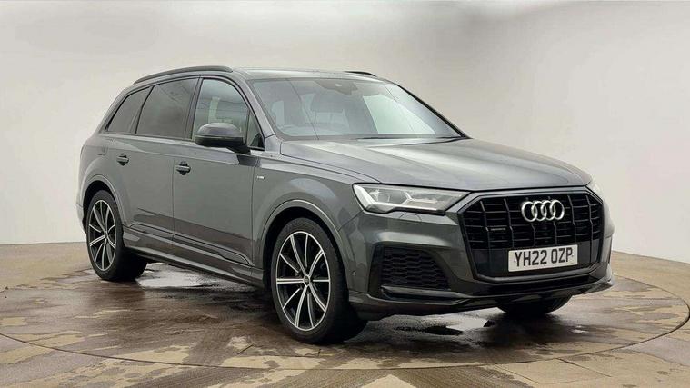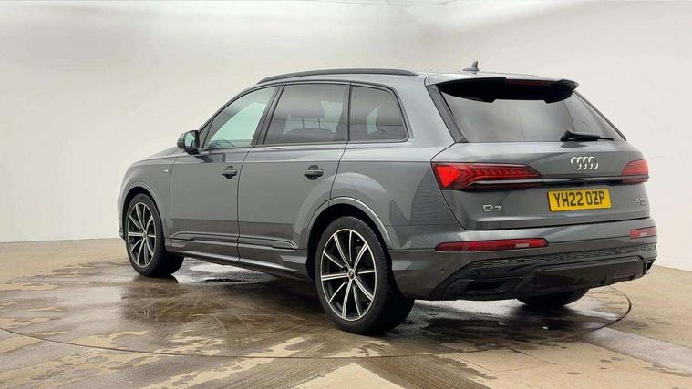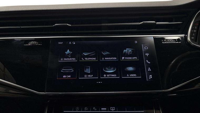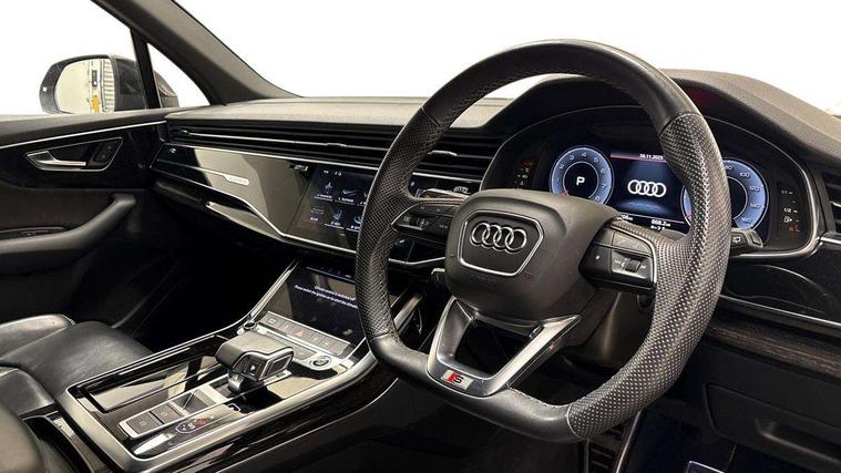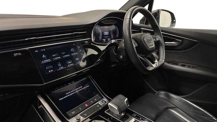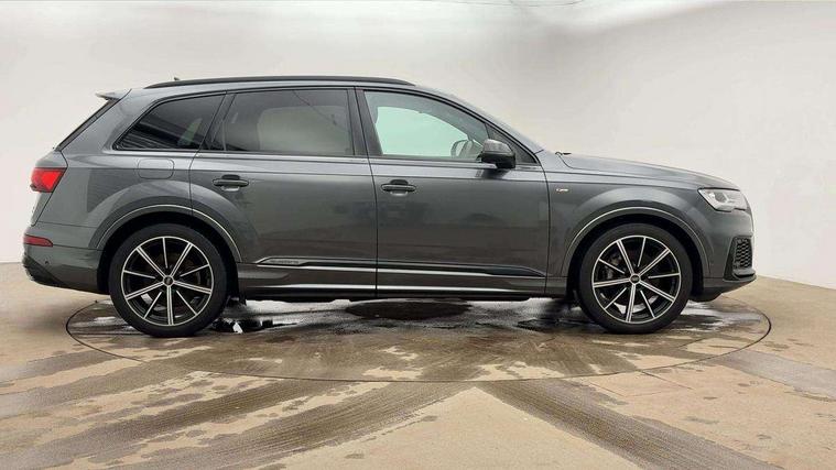 Audi connect safety and service (e-call), Audi connect with Amazon Alexa Integration, Audi drive select (Auto, Comfort, Dynamic, Efficiency, Individual, Off-road and All road), Bluetooth interface, Camera based traffic sign recognition, Electromechanical steering, MMI navigation plus with MMI touch screens includes 10.1" and 8.6" screens with haptic feedback, Natural voice recognition, Parking system plus with 360 degree display (front, rear and side sensors) - acoustic and visual park assist system, Power operated tailgate, Rear view camera, Smartphone interface includes wireless Apple carplay/Android Auto, Start/stop system, 48V Mild hybrid technology, 85 litre fuel tank, Adaptive air sports suspension, Quattro all wheel drive with self locking centre differential, Audi music interface - front 2 USB-C ports with charger and data functions, Audi sound system with 6 channel amplifier, 180 watt amplifying capacity and 10 loudspeakers including subwoofer, DAB digital radio module, 3rd brake light, Audi matrix LED headlights with dynamic front and rear indicators, Auto dimming frameless rear view mirror, Black roof rails, Bumpers in contrast paint scandium grey finish includes door trim and wheel arch trim strips, inlays in door strip contain quattro embossing, Electrically adj heated/folding + automatically dimming exterior mirrors with memory + automatic kerb side function for passenger side exterior mirror, Heat insulating glass in windshield, Integrated LED indications in door mirrors, LED daytime running lights, LED rear tail lights, Privacy glass - dark tinted rear and rear side windows from B-pillar backwards, Rear side wing doors, Rear wiper, 2 seat bench in 3rd row, 3 seat bench in 2nd row, 4 zone deluxe automatic climate control, 7 seat layout with ISOFIX points for the front passenger seat and rear passenger seat, Black cloth headlining, Comfort front centre armrest, Electric adjustable front seat with 4 way lumbar support, driver memory functionality, Folding rear seats, Front head restraints, Front/rear floor mats, Heated front seats, Illuminated door sill trims with S logo, LED interior ambient lighting, Luggage compartment cover, Luggage compartment sill protection in stainless steel, Rear head restraints, Single front passenger seat, Stainless steel pedals, Sunvisors with illuminated vanity mirrors, Titanium black styling pack - Q7/SQ7, 3 point seatbelts on all rear seats, Audi pre sense front, Child locks on rear doors, Driver and front passenger, front side and curtain airbags, Electromechanical parking brake, Electronic Stabilisation Control (ESC) including ABS, ASR and EDL, Extended pedestrian protection measures, Hill hold assist, Seatbelt monitoring, Tyre pressure loss indicator, Warning triangle and first aid kit, Anti theft alarm, Anti-theft wheel bolts and wheel loosening detection, Keyless Go, Remote central locking, Polished oak trim with grey finish inlay, Tool kit, Tyre repair kit,