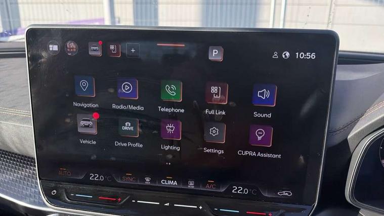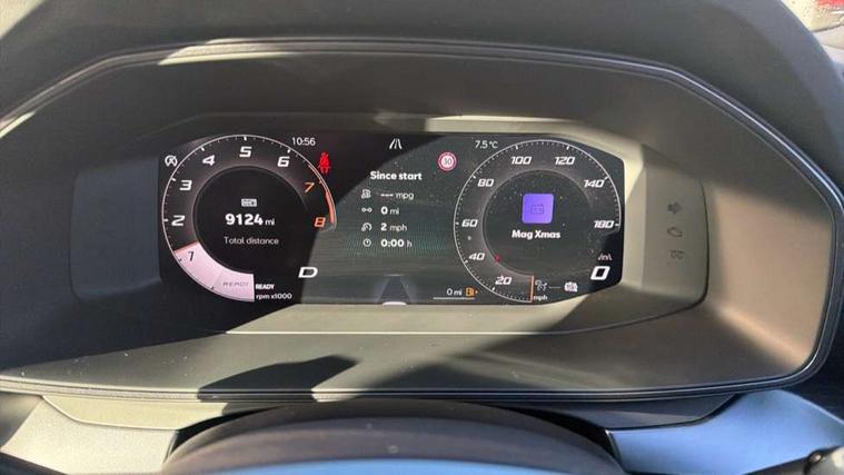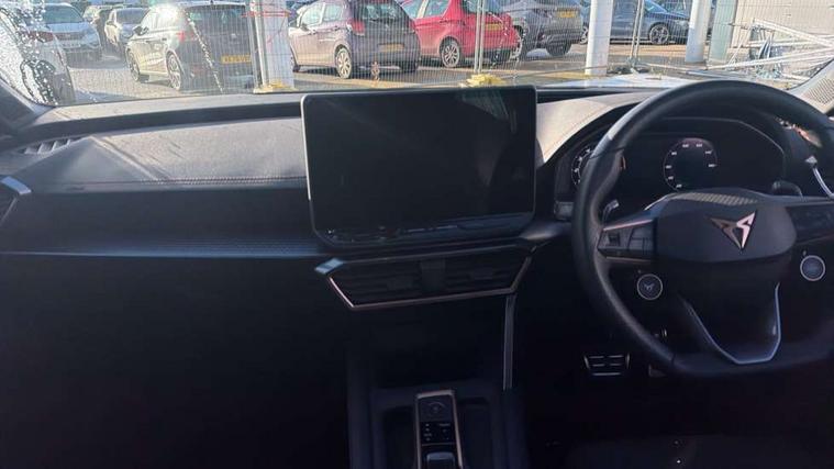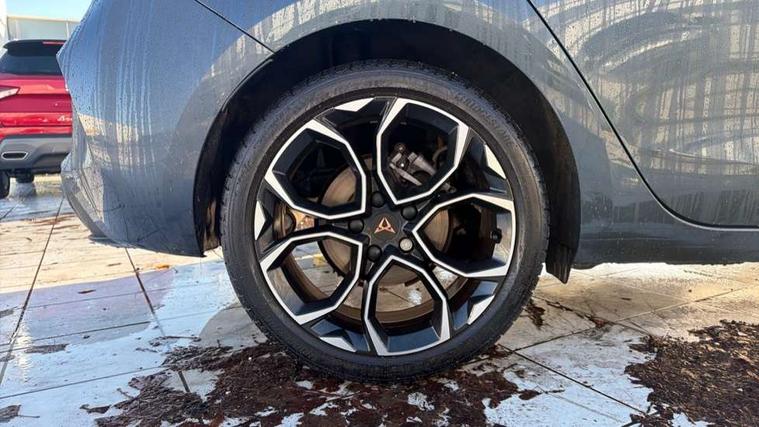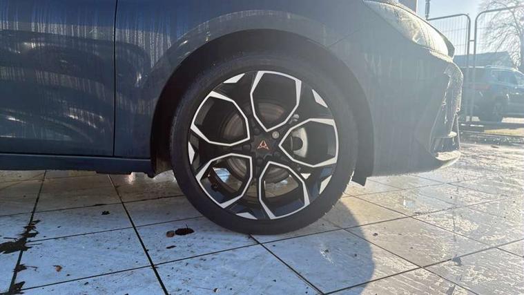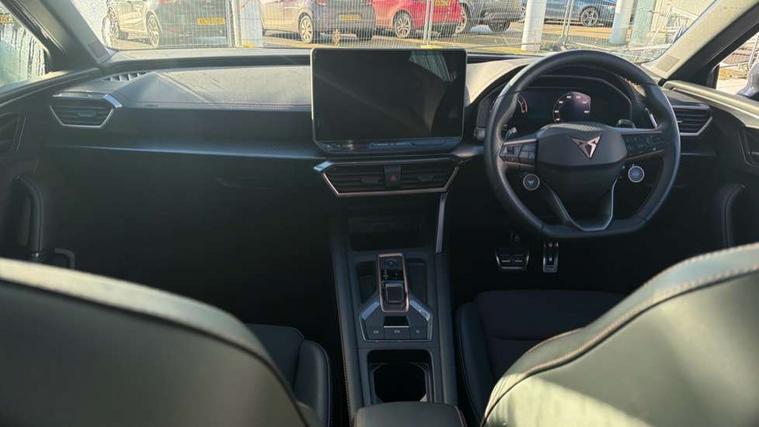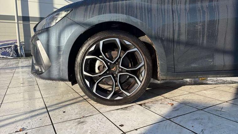 Adaptive cruise control with follow-to-stop and speed limiter, CUPRA drive profile selection with (Comfort/Sport/Individual), throttle response and gearshift mode, Digital cockpit, Dynamic road sign display, E-call, Four x USB Type C ports (2 in front and 2 in rear), Front and rear parking sensors, Front assist with forward collision warning braking reaction to vehicles, pedestrians and cyclists, Full link smartphone integration with Mirror Link, wireless Apple CarPlay and wired Google Android Auto, Lane assist, Lockable tailgate, PAS, RPM, trip computer, outside temp gauge, instrument light brightness, low fuel warning light, lights on reminder, gearshift indicator, Service interval indicator, Start/stop system with regenerative braking, Wireless phone charger, 7 speakers, Auxiliary input socket, Auto dimming rear view mirror, Body colour door handles, Body coloured bumpers, Cupra sports bumpers, Dark tinted rear windows, Electric front/rear windows, Electrically adjustable, heated and folding door mirrors, High beam assist, LED front fog lamps with cornering function, LED headlights with dynamic turn signals, tail lights, rear fog lights with rear coast to coast lighting, LED rear fog lamp, Rain sensing wipers, Rear side wing doors, Rear wash/wipe, Separate daytime running light with automatic headlight control and coming home feature, Third brake light, Welcome light with logo projector in door mirrors, 12v power supply in centre console, 3 seat bench in 2nd row, 5 headrests, 60/40 split rear bench seat with armrest, Ambient lighting with glovebox, footwell and single monocolour, Black headlining, Cloth/PVC upholstery, Cupra sports pedals, CUPRA Supersports, heated steering wheel with satellite buttons, Driver and passenger seat with manual height and lumbar adjustment, Folding boot cover, Front and rear reading lights X 4, Front centre armrest, Height/reach adjust steering wheel, Illuminated interior front door sills, ISOFIX points in outer rear seats with top tether anchorage points, Single front passenger seat, Storage pockets on rear of front seats, Sunvisors with illuminated mirror, Three zone climate control, Media system plus with 12.9" display + navigation pack - Leon Cupra, 3 point seatbelts on all rear seats, ABS, Brake control system - ESC and brake booster, Child proof door locks, Cupra black brake calipers, Driver and front passenger airbags with front passenger airbag de-activation, front side and curtain airbags, Electronic parking brake, Hill hold control, Rear disc brakes, Seat belt reminder for front and rear seats, Tiredness recognition system, Tyre pressure monitoring system, Anti theft alarm system with interior monitoring in cab, backup horn and towing protection, Central locking system Keyless Go, Locking wheel bolts, Chrome and copper interior detailing, 18" Windstorm machined sport black matt and silver alloy wheel with 92Y XL tyres, Tool kit,