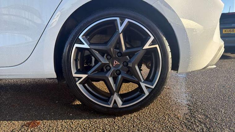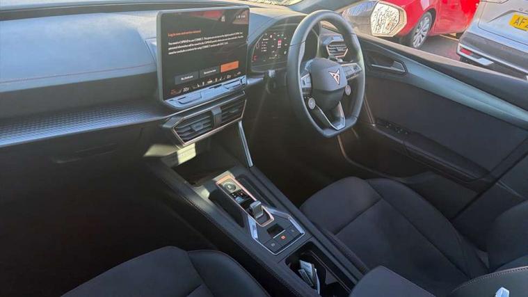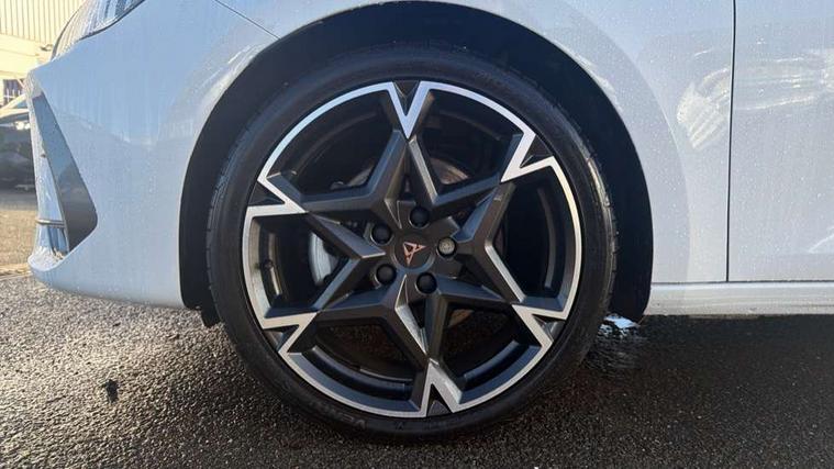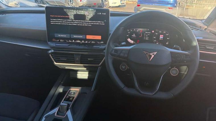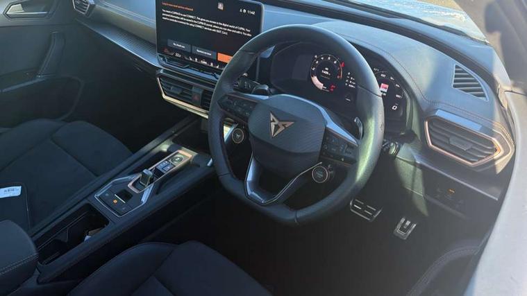 Adaptive cruise control with follow-to-stop and speed limiter, CUPRA drive profile selection with (Comfort/Sport/Individual), throttle response and gearshift mode, Digital cockpit, Dynamic road sign display, E-call, Four x USB Type C ports (2 in front and 2 in rear), Front and rear parking sensors, Front assist with forward collision warning braking reaction to vehicles, pedestrians and cyclists, Full link smartphone integration with Mirror Link, wireless Apple CarPlay and wired Google Android Auto, Lane assist, Lockable tailgate, Rear view camera, RPM, trip computer, outside temp gauge, instrument light brightness, low fuel warning light, lights on reminder, gearshift indicator, Service interval indicator, Start/stop system with regenerative braking, Wireless phone charger, Auxiliary input socket, Auto dimming rear view mirror, Body colour door handles, Body coloured bumpers, Cupra sports bumpers, Dark tinted rear windows, Electric front/rear windows, Electrically adjustable, heated and folding door mirrors, High beam assist, LED front fog lamps with cornering function, LED headlights with dynamic turn signals, tail lights, rear fog lights with rear coast to coast lighting, LED rear fog lamp, Rain sensing wipers, Rear side wing doors, Rear wash/wipe, Separate daytime running light with automatic headlight control and coming home feature, Third brake light, Welcome light with logo projector in door mirrors, 12v power supply in centre console, 3 seat bench in 2nd row, 5 headrests, 60/40 split rear bench seat with armrest, Ambient lighting (glovebox, footwell, ambient lighting multicoloured), Black headlining, Cupra sports pedals, CUPRA Supersports, heated steering wheel with satellite buttons, Dinamica cloth upholstery, Electrically adjustable driver seat and lumbar support with memory function + manually adjustable passenger seat, Folding boot cover, Front and rear reading lights X 4, Front centre armrest, Heated front seats, Height/reach adjust steering wheel, Illuminated interior front door sills, Interior wraparound lighting, ISOFIX points in outer rear seats with top tether anchorage points, Single front passenger seat, Storage pockets on rear of front seats, Sunvisors with illuminated mirror, Three zone climate control, Dynamic and comfort pack - Leon Cupra, Media system plus with 12.9" display + navigation pack - Leon Cupra, 3 point seatbelts on all rear seats, ABS, Brake control system - ESC and brake booster, Child proof door locks, Cupra black brake calipers, Driver and front passenger airbags with front passenger airbag de-activation, front side and curtain airbags, Electronic parking brake, Hill hold control, Rear disc brakes, Seat belt reminder for front and rear seats, Tiredness recognition system, Tyre pressure monitoring system, Anti theft alarm system with interior monitoring in cab, backup horn and towing protection, KESSY Advanced - Keyless start, keyless entry, Locking wheel bolts, Chrome and copper interior detailing, 19" Polar machined sport black and silver alloy wheel with 91Y tyres, Tool kit,