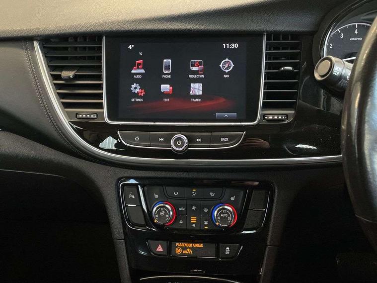 Cruise control + speed limiter, Digital clock, Multi function trip computer, Navi 5.0 intelliLink sat nav, USB/iPod/Aux-in, audio streaming, digital radio/AM/FM radio, RDS traffic, bluetooth audio streaming and connectivity, Outside temperature display, Smartphone integration with Apple CarPlay and Android auto, Speed sensitive power steering, Systems with voice recognition, 2 speed wipers/wash wipe/intermittent wipe, Automatic lighting control, Black door mirrors, Body colour door handles, Body colour side mouldings, Chrome side window trim, Electric front+rear windows, Electrically adjustable and heated door mirrors, Front fog lights, Front skid plate, LED daytime running lights, Silver roof rails, Stainless steel exhaust tailpipe, 18 way adjustable front seats, 3 spoke steering wheel, 60/40 split folding rear seat, Centre rear head restraint, Chrome interior door handles, Dual zone electronic climate control, Front centre armrest, Front door pockets, Front seat back storage pockets, Front/rear courtesy lights, Height adjustable front/rear head restraints, Illuminated glovebox, Illuminated vanity mirrors, ISOFIX on outer rear seats, Jasmin leather seat trim, Multi function steering wheel, Reach + rake adjustable steering column, Rear cupholders, Rear seat centre armrest, Sight and light pack - Mokka X, Winter pack - Mokka, 3x3 point rear seatbelts, ABS, Curtain airbags, Driver/Front Passenger airbags, Emergency brake assist, ESP, Front seat side impact airbags, Hill start assist, Seatbelt warning, Traction control, Tyre pressure monitoring system, Immobiliser, Remote central locking, Remote security alarm system,