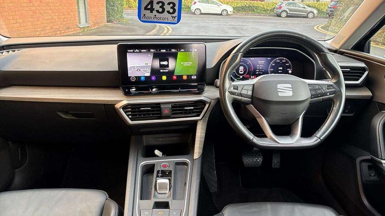 Digital cockpit, E-call, Four x USB Type C ports, Front assist with forward collision warning braking reaction to vehicles, pedestrians and cyclists, Full link smartphone integration with Mirror Link, wireless Apple CarPlay and wired Google Android Auto, Lane assist, Park assist (inc front/rear parking sensors), Power assisted speed sensitive electro-mechanical steering, Rear view camera, RPM, trip computer, outside temp gauge, instrument light brightness, low fuel warning light, lights on reminder, gearshift indicator, Service interval indicator, Start/stop system with regenerative braking, 10 amp mode 2 charging cable, 16 amp mode 3 charging cable, XDS electronic differential lock and dynamic traction support, 7 speakers, Auxiliary input socket, Auto dimming rear view mirror, Body colour door handles, Body coloured bumpers, Dark tinted rear windows, Door mirror LED indicator lights, Electric adjustable/heated/folding door mirrors with memory, Electric front/rear windows, Illuminated front door sill, LED front fog lamps with cornering function, LED headlights and tail lights with dynamic turn signals, welcome light silhouette from exterior mirrors and dynamic headlight range control, LED rear fog lamp, Rain sensing wipers, Rear side wing doors, Rear wash/wipe, Separate daytime running light with automatic headlight control and coming home feature, Third brake light, 12v power point in centre console, 3 seat bench in 2nd row, 60/40 split rear bench seat with armrest, Ambient lighting with glovebox, footwell and single monocolour, Dust/pollen filter, Electric driver lumbar support + passenger manual lumbar support, Folding boot cover, Front and rear height adjustable headrests, Front and rear reading lights X 4, Front centre armrest, Front seatback storage pockets, Grey headlining, Heated front seats, Heated leather steering wheel with leather gearshift paddles, Height/reach adjust steering wheel, ISOFIX points in outer rear seats with top tether anchorage points, Luggage tie-down hooks, Nappa leather upholstery, Power driver seat with memory and manual height adjustable passenger seat, Single front passenger seat, Sunvisors with covered illuminated mirror, Three zone climate control, Tool kit, Wraparound lighting, Media system plus with navigation - Leon, Safety and Driving pack (M) - Leon, 3 point seatbelts on all rear seats, ABS, Brake control system - ESC and brake booster, Child proof door locks, Driver and front passenger airbags with front passenger airbag de-activation, front side and curtain airbags, Electronic parking brake, Extended safety system - seat belt tensioner, window closure and hazard lights, Hill hold control, Rear disc brakes, Seat belt reminder for front and rear seats, Tiredness recognition system, driver alert system, Tyre pressure monitoring system, Anti theft alarm system with interior monitoring in cab, backup horn and towing protection, KESSY Advanced - Keyless start, keyless entry with SAFELOCK, Lockable tailgate, Locking wheel bolts, Wireless phone charging, Chrome interior detailing, 18" Aerodynamic performance nuclear grey alloy wheels with 92Y XL tyres, Emergency tyre repair kit,