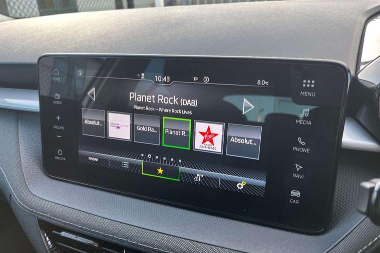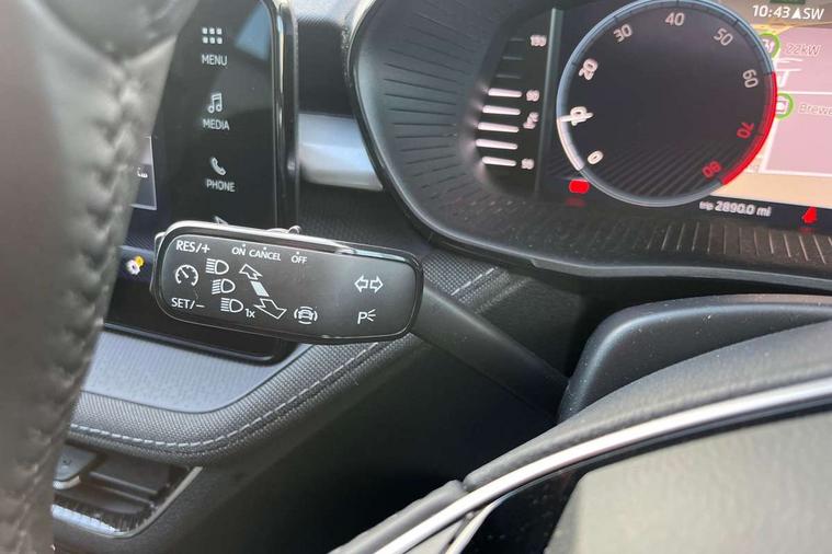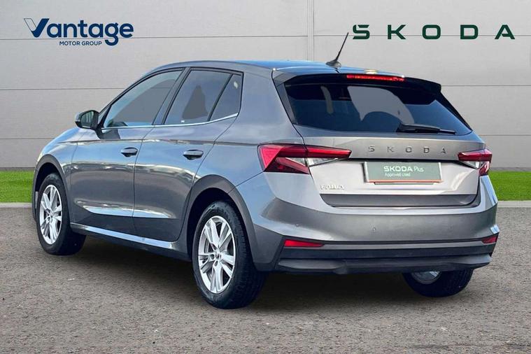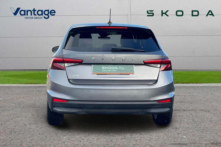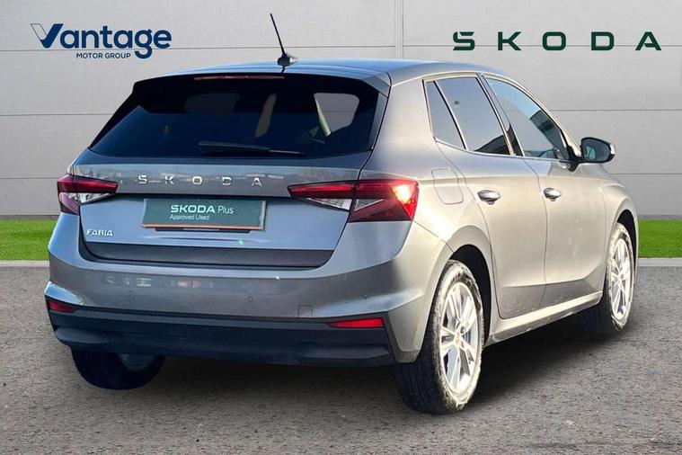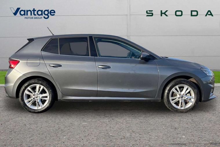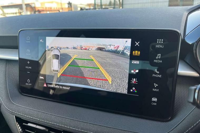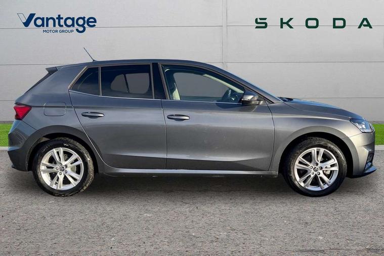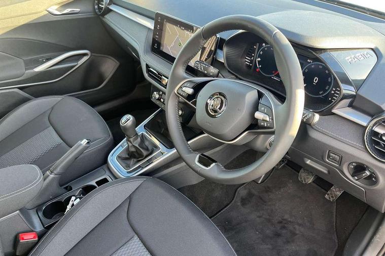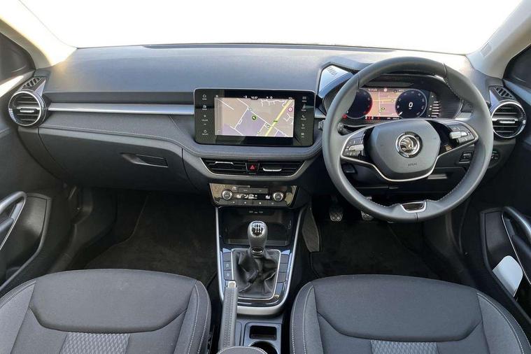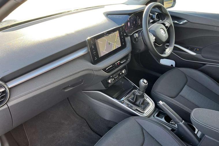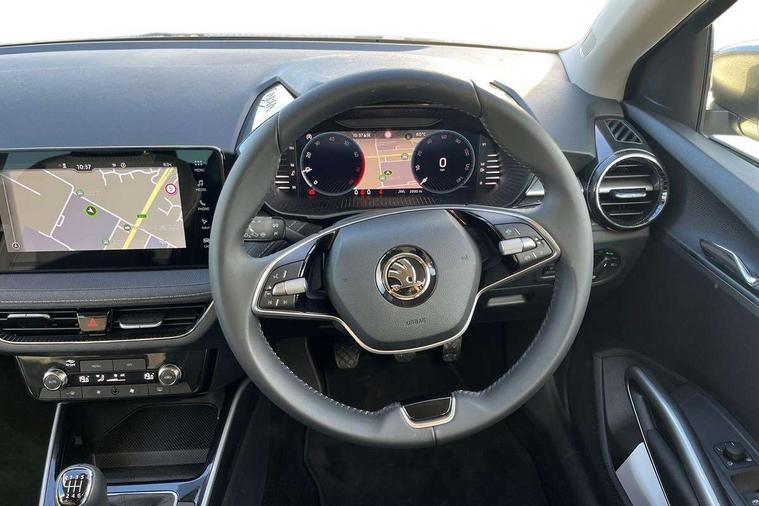 Advanced driver attention and drowsiness monitor, Bluetooth connection, Electromechanical power steering, Exterior temperature gauge, Service interval indicator, Traffic sign recognition, Virtual cockpit with 10.25" colour display, Wireless SmartLink for Apple CarPlay and Android Auto, 6 Speakers (4 in front and 2 in rear), 9.2" colour display skoda navigation system with voice control and web radio, Auxiliary socket for external MP3 player, DAB digital radio reception, Auto dimming rear view mirror, Body colour door mirrors, Body coloured bumpers, Chrome window surround, Door mirror integrated indicators, Front and rear electric windows, Front window wiper intermittent control, Headlight range control - Automatic, Ice scraper in fuel cap, LED 3rd brake light, LED daytime running lights with coming and leaving home feature, LED rear lights, Privacy glass, Rear LED fog light, Rear side wing doors, Rear window wiper with washing nozzles, Roof mounted spoiler, SKODA tailgate lettering in chrome, Unique dark chrome design logo on alloy wheels, 2 LED reading lights in front and rear, 3 rear headrests, Backrest split and folding, Central console with removable cup holder and storage box, Chrome handbrake release button, Comfort seats, Door sills with fabia badging, Dual zone air conditioning with climatronic electronic control, Fabric upholstery, Front centre armrest, Gearshift knob/handle in leather, Hand brake lever handle in leather, Height adjustable front headrests, Height adjustable front seats, Height adjustable steering wheel, ISOFIX and TopTether anchorage points to the outer rear seats, ISOFIX and TopTether on the front passenger seat, Luggage compartment lighting, Manually adjustable lumbar support in front seats, Metallic grey interior door handles, Pollen filter, Rear seat bench unsplit, Single front passenger seat, Skoda lettering on steering wheel, Storm grey headlining, Sun visors with mirror and airbag label on passenger side, Textile floor mats, Ticket holder, Umbrella in drivers door, 3-point height adjustable front seats belts with pretensioner and force limiter, Automatic warning lights in case of crash, Driver and passengers airbag with switch off function, e-Call+, ESC including ABS, MSR, ASR, EDS, HBA and XDS, Front and rear seat belt warning, FRONT ASSIST (AEB City and AEB Inter Urban), Front side airbags, Head airbags, One tone horn, Pedestrian protection, Three rear 3-points safety seat belts with pretensioner and force limiter including stop function for outer rear seat belts, Tyre pressure monitoring system, Anti-theft alarm system including immobiliser, interior monitoring, backup horn, and towing protection, Central locking with radio remote control, interior controls, SAFE function and 2 foldable keys, Black painted air vents, Metallic grey central console cover, Metallic grey upper decorative trim, Satin black door and side trim panel in front, Textile microsuede grey lower decorative trim with art grey stitching, Anti-theft wheel bolts protection, Super-low rolling resistance tyres,
