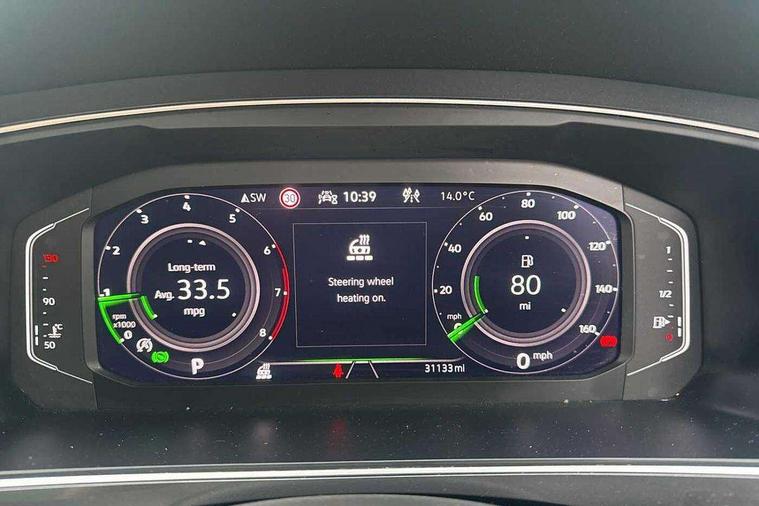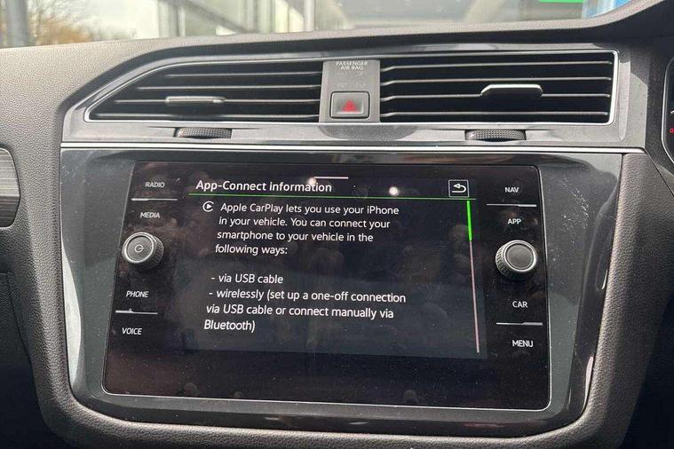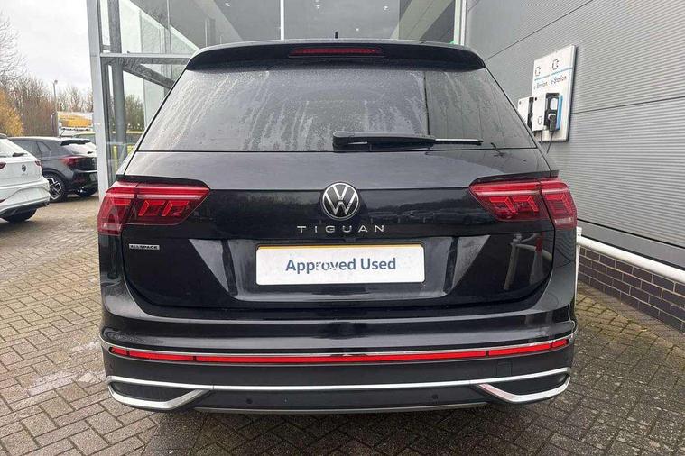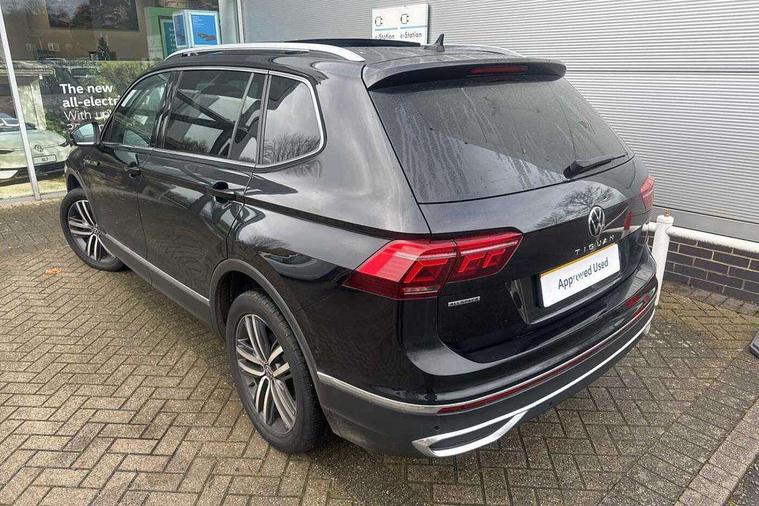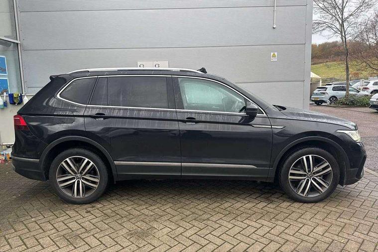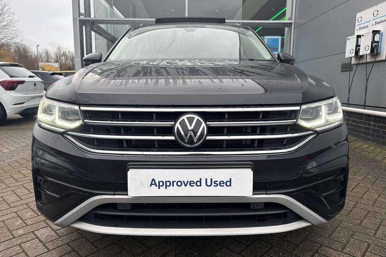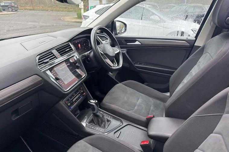 Adaptive cruise control, App-Connect, Digital cockpit pro, Driver alert system, Driver profile selection, Dynamic road sign display, eCall emergency call service, Electric boot lid, Lane change system side assist and rear traffic alert, Lane keeping system Lane Assist, Mobile phone interface comfort with inductive charging feature, Multifunction front facing camera, Power assisted speed sensitive steering, Speedo and rev counter, electronic odometer, trip, service interval display and exterior temperature gauge, Front wheel drive, Start-stop system with battery regeneration (recuperation - energy recovery during braking), 2 USB-C ports in the front, 1 USB-C charging socket on the center console in the rear, DAB Digital radio, Diversity antenna for FM reception, Radio, Auto dimming interior rear view mirror, Automatic headlight control system, Body coloured comfort bumpers, Chrome mouldings on side window, Coming/leaving home lighting function, Exterior badge deletion, Exterior mirror housings painted in silver, Heated windscreen washer jets, IQ light adv HBC, dyn light assist LED matrix headlamps, DH range, dark red LED rear combo light, poor weather, CL, LED headlamp with LED DRL and DCL - PXC, Privacy glass, Rain sensor, Rear fog light, Rear side wing doors, Rear wiper, Silver roof rails, Third brake light, Tilting and sliding panoramic sunroof, 12-volt outlet in centre console rear and luggage compartment, 12V socket in centre console, 3 head restraints in rear, 3 individual folding 2nd row seats, 3rd row 2 individual seats, Air Care Climatronic 3 zone automatic climate control with enhanced air filter and controls in the rear, Door and side trim panel, Drawers under front seats, Driver and front passenger seat height adjustment, Foldable front passenger seat backrest, Front + rear carpet mats, Front centre armrest, Front footwell illumination, Heated front seats, Illuminated scuff plates, ISOFIX anchorage points for mounting 2 child seats on rear seats and i-Size child seats, Leather gearshift handle, Leather-wrapped heated multi-function steering wheel with paddle shift, LED interior light with switch off delay/dimmer and 2 front/rear LED reading lights, Sun visors with illuminated vanity mirrors, Ambience pack - Tiguan Allspace, Easy open and close pack with safelock - Tiguan Allspace, Park assist pack - Tiguan Allspace, 3 point seat belt for centre rear seat, 3 rear three point seatbelts, ABS+EBD+Brake assist, Driver and front passenger safety-optimised head restraints, Driver's and front passenger's airbag with front passenger's airbag deactivation switch, Electronic parking brake, Electronic Stability Control (ESC) inc EDL (Electronic Differential Lock) and ASR (Traction Control), Height adjustable front 3 point seatbelts + pretensioners, Manual rear child locks, Pedestrian monitoring, PreCrash preventive occupant protection Front and rear, Rear disc brakes, Side airbag in front and rear with curtain airbag, Two tone horn, Warning buzzer for seatbelts if unfastened, Anti theft alarm system with interior monitoring, backup horn and towing protection, Anti-theft wheel bolts, Electronic steering lock, Remote central locking with 2 remote folding keys, Chequered flag tinanium decorative inserts,