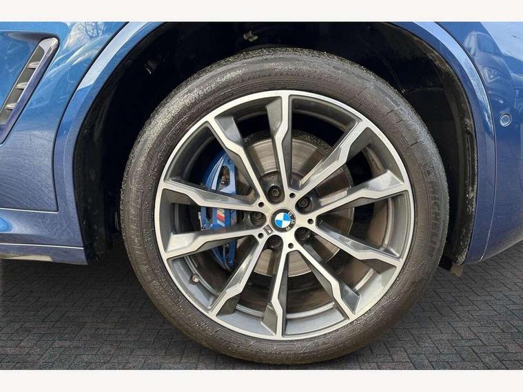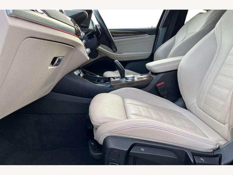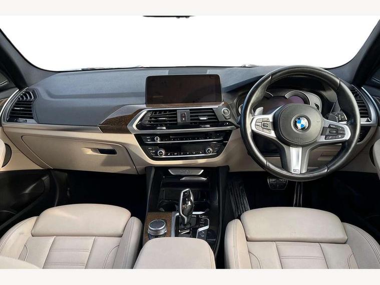 Active Guard incl speed limiting and lane departure functions with auto steering, and front collision warning with brake intervention, Attentiveness assist, Automatic tailgate operation, BMW Live Cockpit Professional sat nav system including 10.25" high resolution display and Intelligent Voice Assistant, BMW Online services, BMW Teleservices, Brake pad wear indicator in front and rear, Check Control warning system for monitoring of lights and door/luggage compartment open warning, Control display - 6.5" colour display screen, Electric Power Steering (EPS) with Servotronic, Front/rear Parking distance control, iDrive Controller with 8 favourite buttons, Lights on warning by audio warning signal when ignition is switched off, Navigation system - BMW Professional multimedia with Hard disc drive (HDD) and 10.25" touch display, Oil sensor for level and grade, warning by check control system, On board computer - average speed+fuel consumption, service interval, clock/date, odometer/trip meter, outside temperature display and ice warning, Optimum shift indicator, Personal Profile - automatic lock when driving away selectable, Real time traffic information, Semi digital instrument cluster, Stop/start system, Automatic transmission with gearshift paddles, Diesel particulate filter, Incorrect fuelling protection, Larger capacity fuel tank, Multi-link rear suspension, Performance Control, Auxiliary socket for external MP3 player, BMW professional radio/CD/MP3, DAB Digital radio, Acoustic glazing, Black finish on B pillars, Body colour door handles, Body colour electric adjust heated aspherical door mirrors, Body colour roof mouldings, Body coloured bumpers, Chrome kidney grille with high gloss black vertical slats, Direction indicator, side repeaters, integrated in exterior mirrors, Dual chrome exhaust, Dynamic brake lights, Exterior mirrors - electrically folding with anti-dazzle, Fingertip control / anti-trap function on electric window, Follow me home headlights, Front and rear bumper system with replaceable deformation elements, Front and rear electric windows, Green tinted heat insulating glass, Heated windscreen washer jets, Height adjustable headlamps, High gloss black door sill finishers, High gloss black shadow line roof rails, High gloss shadowline exterior trim in decorative moulding side frame/recess cover/guide rail/B, C pillars/mirror frame and triangle with mirror base, High level 3rd brake light incorporating LED Technology, Interior rear view electrochromatic mirror with automatic anti dazzle function, LED front fog lights, LED tail lights, Lightweight engineering, M aerodynamic bodystyling, Model designation, Rain sensor including auto headlights activation, Rear wiper, Shark fin antenna, Visible VIN plate, Welcome lighting, Windscreen wipers with adjustable interval, 12V socket in centre console and luggage area, 3 rear headrests, 3 zone automatic air conditioning, 4 lashing points to secure luggage, Ambient lighting, Anthracite headlining, Anthracite Velour floor mats, Driver/passenger sunvisors with ticket holders + illuminated vanity mirrors, Foldable boot floor with storage compartment, Four grab handles integrated in roof lining, Front and rear bottle holders integrated into door trim storage compartments, Front and rear side armrests integrated into door trim, Front centre armrest with storage compartment, Front footwell lights, Front sports seats, Front/rear courtesy lights with soft on/off dimming, Front/rear reading lights, Height adjustable front/rear head restraints, Isofix rear child seat preparation, Leather gear knob, Luggage area underfloor compartment, Luggage compartment lighting, M Sport multifunction leather steering wheel, Parcel shelf removeable and storable under boot floor, Reach and rake adjustable steering column, Rear centre armrest with 2 cupholders, Rear seat centre armrest with two cupholders, Removable / retractable luggage cover, Slope adjustable rear seats, Storage compartment in rear centre console and front/rear door trims, Through loading system with 40/20/40 split folding rear seat, Toolkit located in luggage compartment, Two front cupholders with removable oddments tray/lid, Vernasca leather upholstery, Connected pack professional - X3, ABS/EBD, ADB - Automatic Differential Brake, Automatic Stability Control (ASC), Battery safety cut-off, BMW emergency call, Brake assist, Brake assist function, Brake drying, Brake energy regeneration, Braking pre-tensioning, Child locks on rear doors, Cornering brake control (CBC), Crash Sensor - activation of central locking release, hazard warning light and interior lighting, Deactivation of fuel pump in the event of a crash, Driver and front passenger front and side airbags with passenger deactivation and ITS front and rear head airbags, DSC+, Dynamic brake control, Dynamic Traction Control - DTC, Electromechanical parking brake, Front seat belts warning, Hill descent control, Hill start assist, Seatbelt security check for front seats, Side impact protection, Three point seatbelts to all seats with front and outer rear pyrotechnic belt tensioners and seat belt force limiters, Two tone horn, Tyre pressure monitoring system, Ventilated front and rear disc brakes, Warning triangle and first aid kit, Central locking switch for all doors, fuel filler cap and luggage compartment, Electronic engine immobiliser, Locking wheel nuts, Remote control including two integrated key - one button for open/close all lockable content, windows and separate button for open luggage compartment, Remote control Thatcham category 1 alarm, Start/stop button with Comfort Go keyless engine start and auto Start/stop deactivation button, Low rolling resistance tyres,