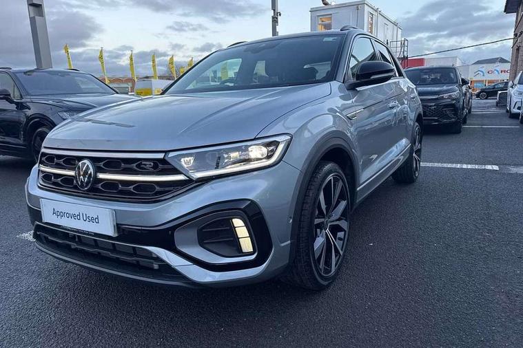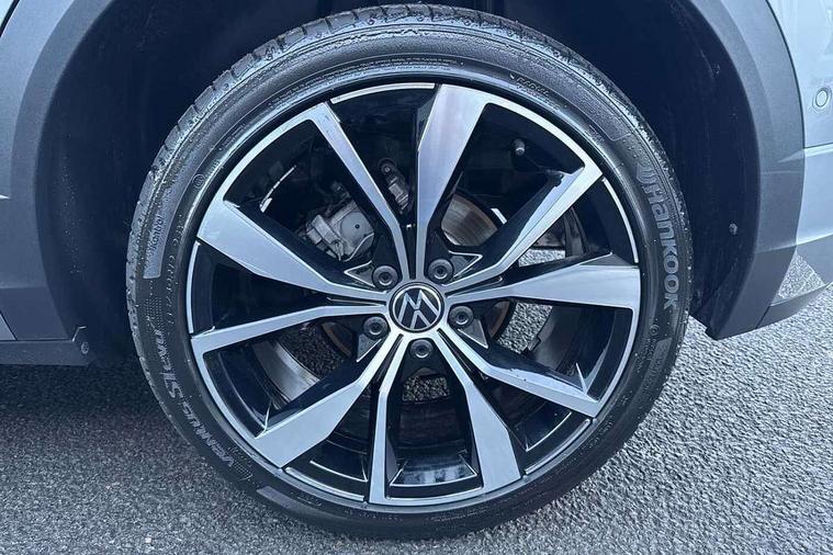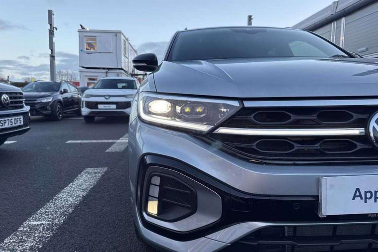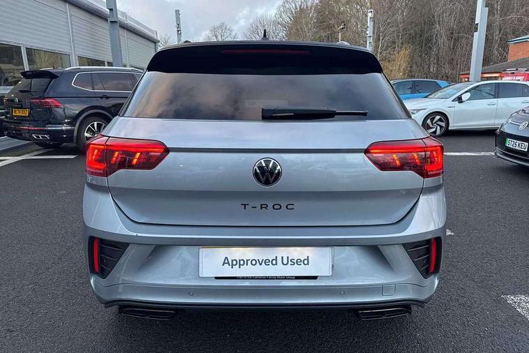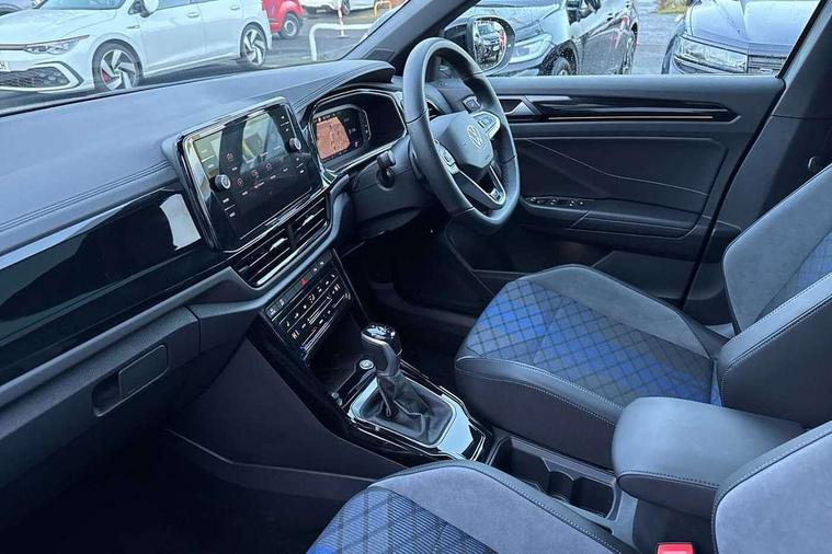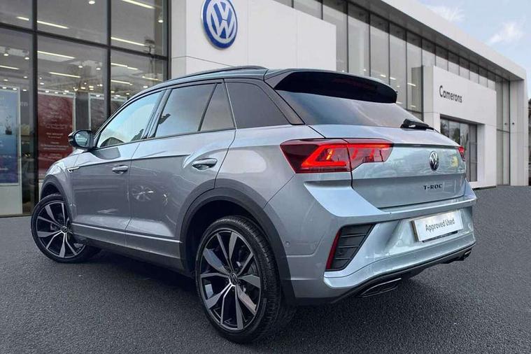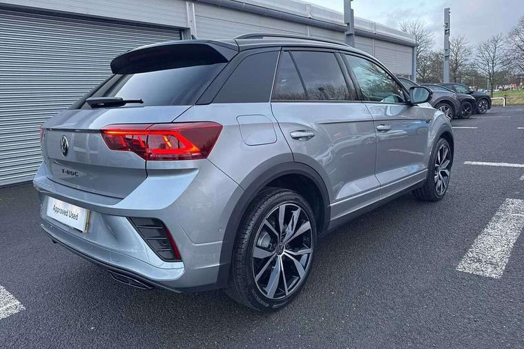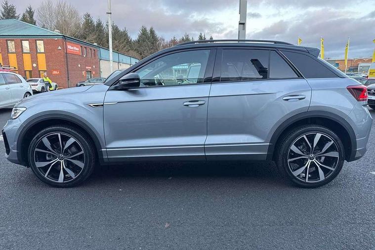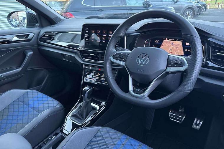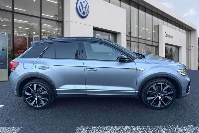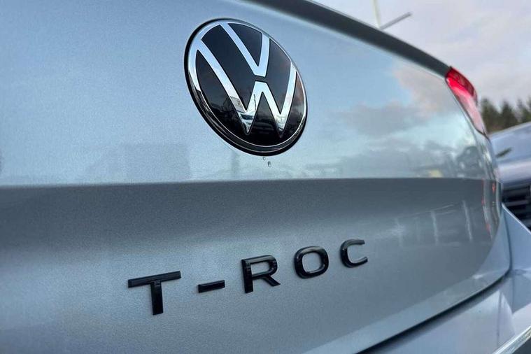 10.25" Digital cockpit pro, Advanced driver attention and drowsiness monitor, Emergency call service, Lane keeping system Lane Assist, Mobile phone interface, Modified key software - reduce switch off time for key status change to Long no motion, Online services, Park assist including front and rear parking sensors, Power assisted speed sensitive steering, Rear view camera, Service interval indicator, Tailgate/trunk lid release from outside, Think blue trainer driver tips and journey analysis, Warning sound and light for front seatbelts unfastened, Wireless app connect, Battery regeneration during braking, Start/stop function with battery regeneration, DAB Digital radio, Diversity antenna for FM reception, Music playback - MP3, WMA and AAC files, Premium USB cable in choice of either Apple or Android smartphone compatibility, SD card slot, Simultaneous pairing of 2 compatible mobile devices, Title and cover art display, We Connect and We Connect Plus functionality, Advanced dynamic light assist for LED matrix headlights, Auto dimming interior rear view mirror, Automatic hazard lights activation under emergency braking, Black roof rails, Dynamic cornering light, Dynamic headlight range control with self adjusting whilst driving, Electrically adjustable and heated door mirrors, Extended roof spoiler, Exterior ambient lighting, Exterior mirrors aspherical on driver side, convex on front passenger side, External USB type C socket and charging sockets, Front windscreen wiper with intermittent wipe and 4 position delay, Heated rear window, Illuminated front grille, IQ LED matrix headlights, LED 3rd brake light, LED rear number plate lights, LED rear tail lights with dynamic turn signal, LED separate daytime running light, Light mode for poor weather, rain, fog or snow, Power windows with comfort operation and circuit breaker, Privacy glass for rear side windows and rear window, R-Line design body coloured bumpers, Rain sensor, Rear exhaust tailpipe, Rear fog light on one side and reversing lights on both sides, Rear side wing doors, Rear wash/wipe with intermittent wipe setting, Remote electrically foldable door mirrors, puddle lights and reverse activated passenger's door mirror, Tilting and sliding panoramic sunroof with rear panoramic sunroof, 12V power socket in centre console, 3 rear head restraints, 3 seat bench in 2nd row, 4 load lashing points in luggage compartment, Air care climatronic air conditoning system with active combination filter and 2-zone temperature control, Chrome plated radiator grille inserts, air vent surrounds and light switch surrounds, Door and side trim panel with leatherette insert, Front + rear carpet mats, Front centre armrest, Front cupholders x 2, Front footwell illumination, Front reading light, Front scuff plates with R Line logo, Front seat back storage pockets, Glove compartment door with light, Instrument lighting, white adjustable panel illumination, Interior ambient lighting and surround lighting, Interior light delay, Isofix child seat preparation, Leather gearshift handle, Load-through provision with cup holder when folded down ('Unsplit rear seat bench, split folding backrest, with centre armrest), Luggage compartment lighting, Single front passenger seat, Stainless steel pedals, Storage compartment in left and right luggage area, Storage compartment in rear doors, Storage compartments in driver and front passenger doors, Sunvisors with illuminated vanity mirrors, Variable boot floor, height adjustable and removable, Black design pack - T-Roc black edition plus, Easy open package with safelock - T-Roc, 3 point height adj front seatbelts + pretensioners, 3 point seatbelts in outer rear with ECE label, ABS, Child locks on rear doors, City emergency braking and pedestrian monitoring, Driver and front passenger airbag with front passenger airbag deactivation, Driver and front passenger safety-optimised head restraints, Drivers seatbelt reminder, Electronic parking brake, Electronic Stability Control (ESC) inc EDL (Electronic Differential Lock) and ASR (Traction Control), Front and rear passengers curtain airbag system including front side airbags, Hill start assist, Predictive pedestrian protection, Rear disc brakes, Two tone horn, Tyre pressure loss indicator, Volkswagen roadside assistance, Keyless locking and starting system keyless access with safelock, Gloss deep iron dash trim, 19" Misano alloy wheels with low rolling resistance and anti theft wheel bolts, Tool kit, Trims for alloy wheels, Tyre mobility kit including compressor and sealing foam,