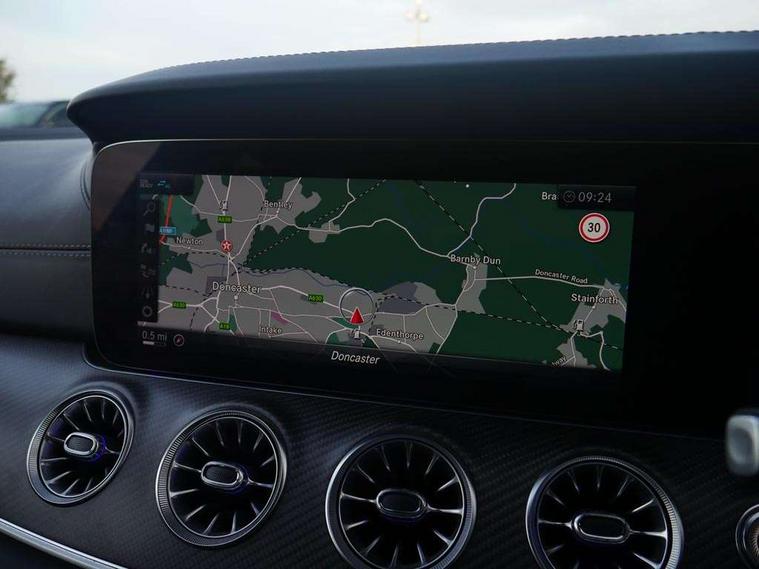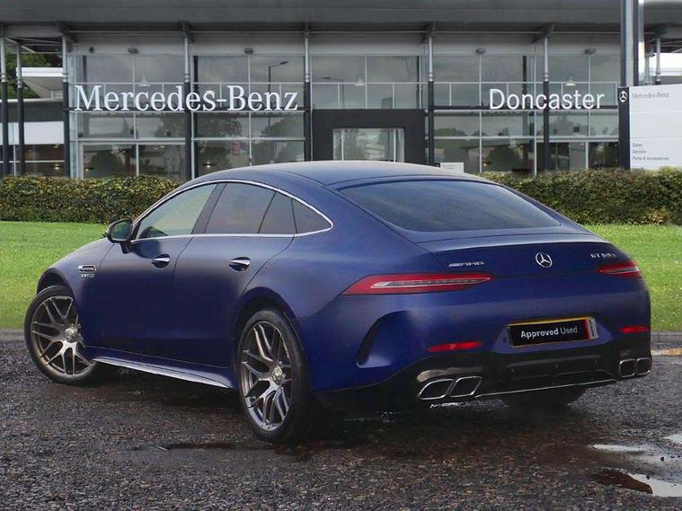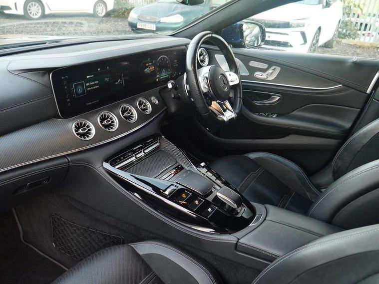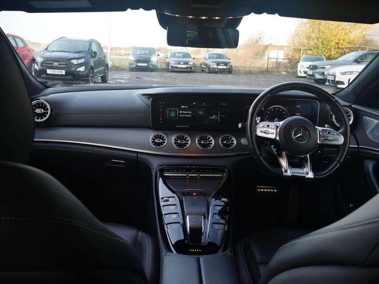 AMG drive unit, AMG track pace, Attention assist - Monitors steering behaviour and long journey fatigue, Blind spot assist, COMAND Online HDD nav, media interface, MP3/USB, 12.3" display, voice control, 10GB music, SD card, 3D map, Live traffic info, bluetooth, WLAN hotspot, Concierge service, Crosswind Assist, Digital operating instructions, Dual bonded widescreen cockpit consisting of an instrument and media display with AMG main menu and start up screen, Easy-pack tailgate, ECO start/stop function, Head up Display, Mercedes me connect including emergency call system, accident recovery, breakdown management and maintenance, PAS, Rear seat belt status indicator, Service indicator (ASSYST), Smartphone integration with Apple CarPlay, Touchpad integrated into the centre console with clear haptic feedback, Traffic sign assist, Wireless charging system for mobile devices, 80 litre fuel tank, AMG performance 4MATIC+, AMG rear axle steering, AMG Ride Control sports suspension with adjustable damping system, Lithium-ion battery, Petrol Particulate Filter, 2 USB ports in the rear, Burmester 14 speaker surround sound system, DAB digital radio tuner, Active aerodynamics with AIRPANEL in the front apron, Adaptive brake lights, AMG Performance exhaust, AMG specific radiator grille, Automatically dimming rear view mirror and driver's exterior mirror, Body colour bumpers, Bonnet with powerdomes, Electric windows with pre-safe closing function, Heated rear window with timer, LED tail lights with sequential turn signals, Model designation on the front wings and boot lid, Multibeam LED headlights with adaptive highbeam assist plus, Privacy glass, Rain sensor windscreen wipers, Solid roof, Specific side skirts painted in the vehicle colour with inserts in silver chrome, V8 BITURBO lettering on front wings, 12V socket in centre console and in boot, Ambient lighting with choice of 64 colour settings, AMG brushed stainless steel sports pedals with rubber studs, AMG floor mats with AMG lettering, AMG sports seats with embossed AMG emblem in the head restraints and bezel in silver chrome with AMG lettering, Automatic child seat recognition sensor, Comfort ventilated front seats, ENERGIZING comfort control, Flat bottom AMG lettering Performance steering wheel in black DINAMICA microfibre/silver chrome gearshift, touch control, 12 o'clock marking, Front and rear AMG brushed stainless steel illuminated door sill panels with AMG lettering, Front and rear cupholders, Front centre armrest with stowage, Front seats full electric adjustment fore/aft/height, inclination and seat cushion adjustment, four way electric lumbar/height adjust head restraint, Glasses stowage compartment, Glove compartment - lockable, air conditioned and illuminated, Heated front seats, Heated rear seats, ISOFIX child seat for two outer seats, Pull out sun visors with vanity mirror, illuminated and pivotable side window, Air balance pack - AMG GT, AMG Dynamic plus package - AMG GT, Anti theft protection pack - AMG GT, Front seat comfort package - AMG GT, Front seat memory pack - AMG GT, Keyless Go package - AMG GT, Mirror package - AMG GT, Parking package - AMG GT, 2 three point rear seatbelts, 3 stage electronic stability programme, Acceleration skid control, Airbags - driver and front passenger, Airbags - front sidebags, Airbags - kneebag for driver, Airbags - windowbags, Anti lock braking system (ABS) with brake assist, Automatic front passenger airbag deactivation, Black seat belts, Brake calipers with AMG lettering painted in yellow, Brake pad wear indicator front brakes, Electric parking brake, First aid kit, Front and outer rear seats seatbelt pre-tensioners with belt force limiters and automatic belt height adjustment, Predictive pedestrian protection, Tyre pressure monitoring system, Warning triangle, Alarm system with immobiliser and interior protection -Thatcham category 1, Keyless Go starting function, Remote central locking, Soft door close, Dashboard upper section in artico man-made leather, Summer tyres, TIREFIT with tyre inflation compressor,
