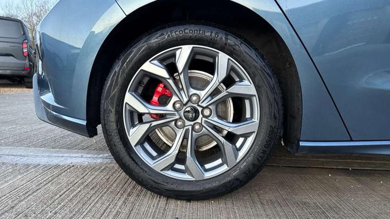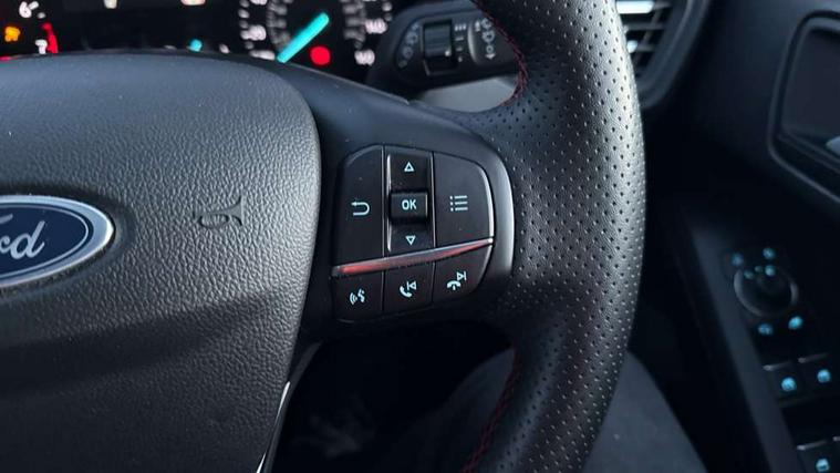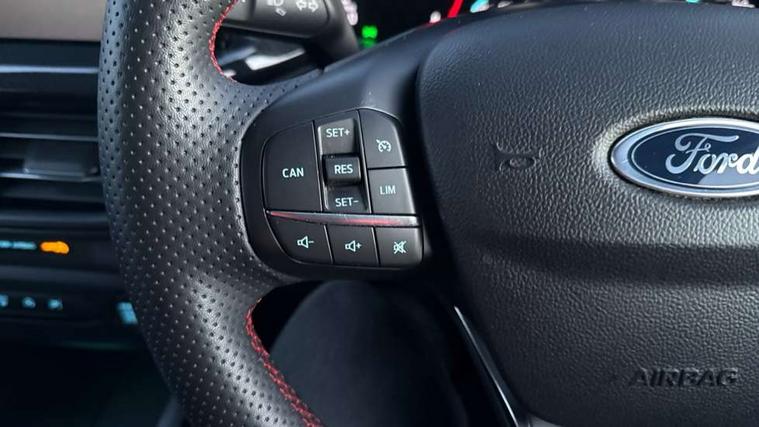 4.2" Colour TFT Ice blue illumination analogue cluster with trip computer, Bluetooth system, Digital clock, Easy fuel capless refuelling system, Eco mode, Ford SYNC 4 Navigation with 13.2'' touchscreen, DAB radio, Emergency Assistance, Apple Carplay & Android Auto, 6 speakers & FordPass Connect, Lane keeping system - lane keeping alert and lane keeping aid, PAS, Rev counter, Selectable drive mode, Service interval indicator, Sports tuned suspension, 2 USB ports, Auto headlamps (on/off), Body coloured door handles, Electrically operated front and rear windows with one touch opening and closing, Electrically operated heated power fold door mirrors with puddle lamp with side indicators, Front variable intermittent wipers with electric wash, Full fixed LED headlamps, Heated rear window, LED daytime running lamp, LED rear lamps, LED third brake light, Polished twin tailpipe, Privacy glass, Quickclear heated windscreen, Rain sensor, Rear side wing doors, Tailgate wash/wipe, Unique ST-Line grille, full bodystyling kit, and large body coloured rear spoiler, 3 rear headrests, 3 seat bench in 2nd row, Cloth upholstery, Dual zone electronic air temperature control, Height adjustable front headrests, Isofix child seat preparation, Reach + rake adjustable steering column, Single front passenger seat, 3x3 point rear seatbelts, ABS+Electronic Brake force Distribution, Auto hold function, Driver airbag, EDL traction control, Electronic parking brake, Electronic stability control, Front and rear seatbelt reminder, Front inertia reel height adjustable seatbelts with pre-tensioners, Front passenger airbag, Front side airbags, Passenger airbag deactivate switch, Post collision braking, Pre collision assist with autonomous emergency braking and pedestrian/cyclist detection, Remote/power child rear door locks, Side curtain airbags, Three rear inertia reel lap/diagonal seatbelts, Tyre pressure monitoring system, Keyless entry and keyless start, MyKey system, Remote central locking & engine immobiliser, Thatcham alarm with power door dead locks, 17" 5 spoke Rock mettalic finish alloy wheels with mini spare wheel,
