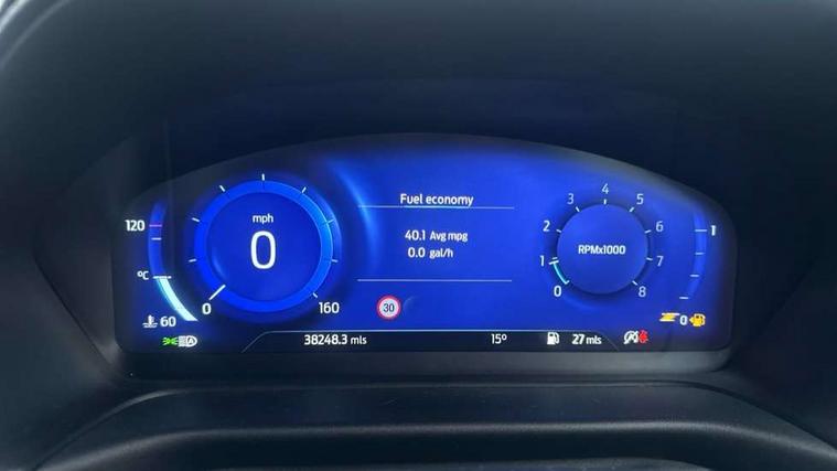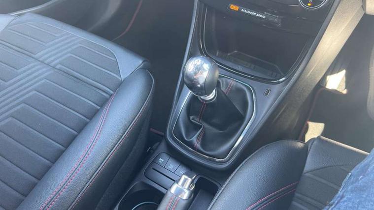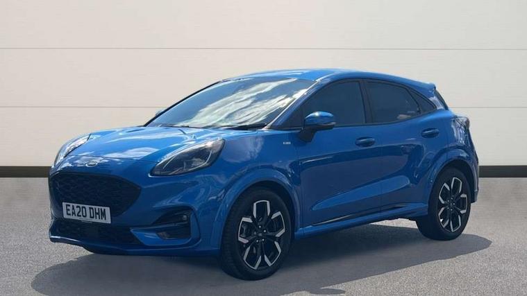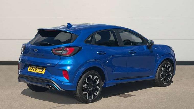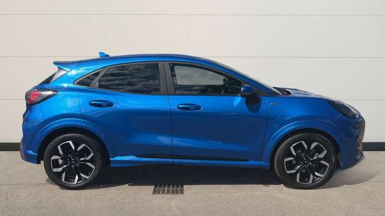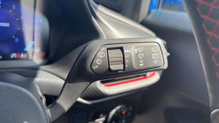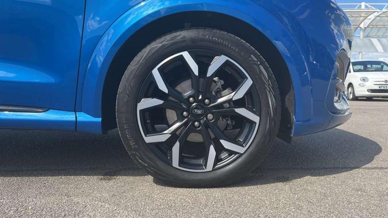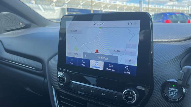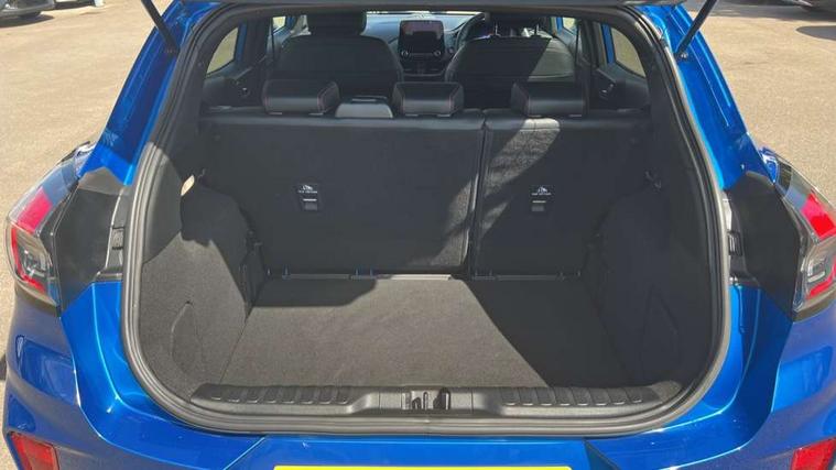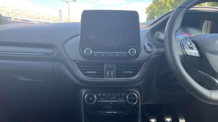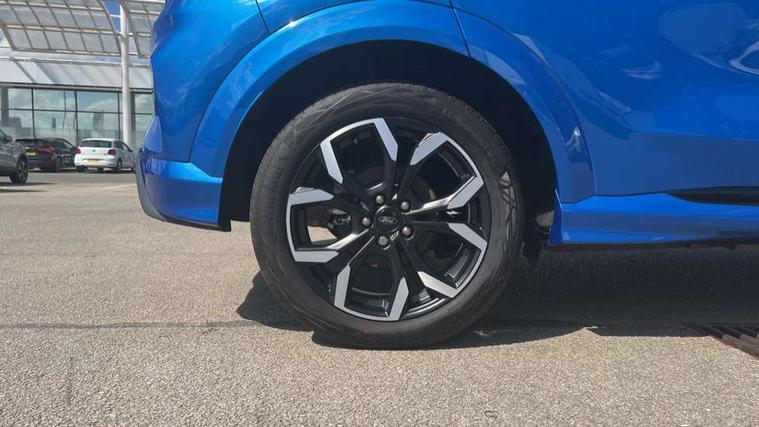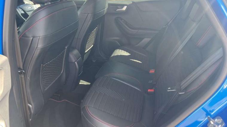 Carbon look interior deco spears, B&O Premium Audio system + Ford SYNC 3 navigation pack - Puma, Tyre inflation kit, Thatcham alarm, 3 rear seatbelts, Electronic stability control (ESC) and hill start assist, Pre-collision assist with autonomous emergency braking, pedestrian/cyclist detection & post-collision braking, Tyre pressure monitoring system (TPMS), Automatic headlights with rain sensing wipers and auto high beam, Body coloured door mirrors, Front fog lights with cornering lights and LED rear lamps, Power foldable heated door mirrors with puddle lamps, Privacy glass to side rear windows and tailgate glass, Quickclear heated windscreen, Rear wiper, ST-Line body kit with large rear spoiler wth sports suspension, Alloy sports pedals, Casual partial leather upholstery with salerno bolster, Centre console with armrest and stowage, Driver and passenger seat lumbar and height adjust, Ford megabox extended bootspace, Front and rear floor mats, Front and rear head restraints, Manual air conditioning, ST-Line flat bottomed sensico leather steering wheel with leather handbrake and aluminium gear knob, Ford easy fuel, Full digital 12.3" instrument cluster, Lane keeping aid with lane departure warning, Power assist steering, Rear parking sensor, Selectable drive modes(Normal, sport, Eco, trail, slippery), Wireless charging pad,