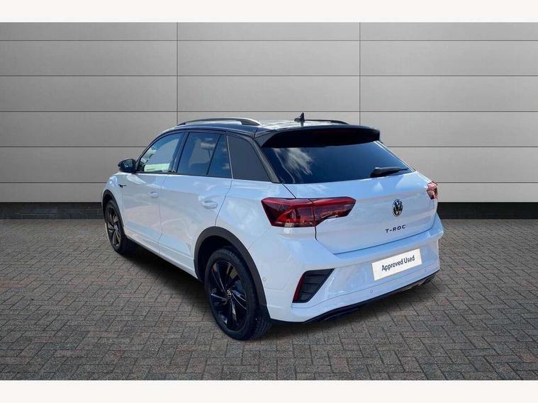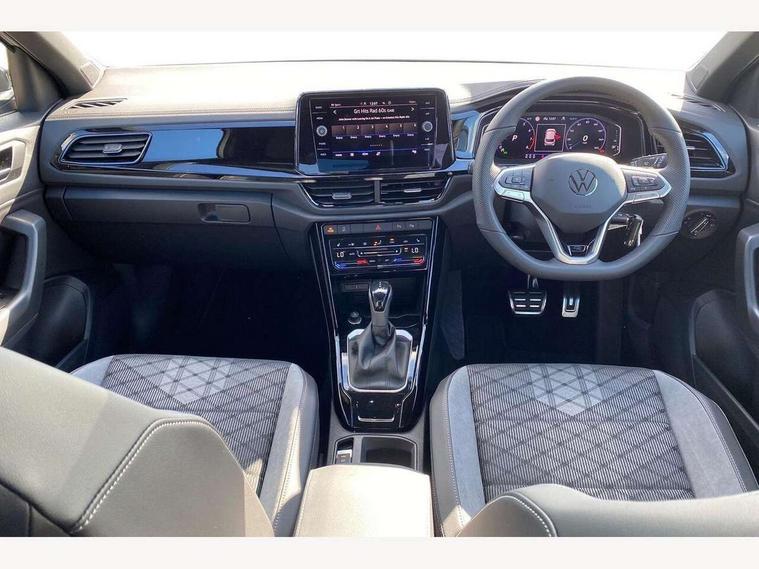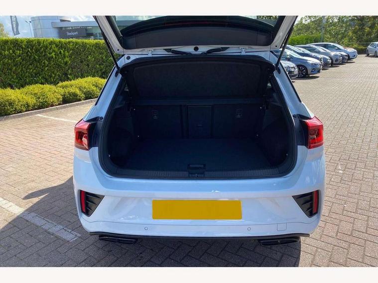 10.25" Digital cockpit pro, Advanced driver attention and drowsiness monitor, Emergency call service, Lane keeping system Lane Assist, Mobile phone interface, Modified key software - reduce switch off time for key status change to Long no motion, Online services, Park assist including front and rear parking sensors, Power assisted speed sensitive steering, Service interval indicator, Tailgate/trunk lid release from outside, Think blue trainer driver tips and journey analysis, Warning sound and light for front seatbelts unfastened, Wireless app connect, Battery regeneration during braking, Rear shock absorption chassis with increased ride height, Start/stop function with battery regeneration, DAB Digital radio, Diversity antenna for FM reception, Front and rear 6 speakers, Music playback - MP3, WMA and AAC files, Premium USB cable in choice of either Apple or Android smartphone compatibility, SD card slot, Simultaneous pairing of 2 compatible mobile devices, Title and cover art display, We Connect and We Connect Plus functionality, Auto dimming interior rear view mirror, Automatic hazard lights activation under emergency braking, Automatic headlight control with LED separate daytime running lights with coming/leaving home function, Dynamic cornering light, Electrically adjustable and heated door mirrors, Extended roof spoiler, Exterior mirrors aspherical on driver side, convex on front passenger side, External USB type C socket and charging sockets, Front windscreen wiper with intermittent wipe and 4 position delay, Heated rear window, Illuminated front grille, IQ LED matrix headlights, LED 3rd brake light, LED rear number plate lights, LED rear tail lights with dynamic turn signal, Light mode for poor weather, rain, fog or snow, Power windows with comfort operation and circuit breaker, R-Line design body coloured bumpers, Rain sensor, Rear exhaust tailpipe, Rear fog light on one side and reversing lights on both sides, Rear side wing doors, Rear wash/wipe with intermittent wipe setting, Remote electrically foldable door mirrors, puddle lights and reverse activated passenger's door mirror, 12V power socket in centre console, 3 rear head restraints, 3 seat bench in 2nd row, 4 load lashing points in luggage compartment, Air care climatronic air conditoning system with active combination filter and 2-zone temperature control, Artvelours cloth upholstery, Black roof lining, Chrome plated radiator grille inserts, air vent surrounds and light switch surrounds, Door and side trim panel with leatherette insert, Drawer under drivers seat, Driver seat height adjust, Driver's seat lumbar support, Front + rear carpet mats, Front centre armrest, Front comfort sports seats, Front cupholders x 2, Front footwell illumination, Front reading light, Front scuff plates with R Line logo, Front seat back storage pockets, Glove compartment door with light, Instrument lighting, white adjustable panel illumination, Interior ambient lighting and surround lighting, Interior light delay, Isofix child seat preparation, Leather gearshift handle, Leather wrapped multifunction steering wheel with paddle shift, Load-through provision with cup holder when folded down ('Unsplit rear seat bench, split folding backrest, with centre armrest), Luggage compartment lighting, Non-folding front passenger seat backrest, Passenger seat height adjuster, Passenger seat lumbar support, Single front passenger seat, Stainless steel pedals, Storage compartment in left and right luggage area, Storage compartment in rear doors, Storage compartments in driver and front passenger doors, Sunvisors with illuminated vanity mirrors, Variable boot floor, height adjustable and removable, Winter pack without heated windscreen washer jets - T-Roc, 3 point height adj front seatbelts + pretensioners, 3 point seatbelts in outer rear with ECE label, ABS, Child locks on rear doors, City emergency braking and pedestrian monitoring, Driver and front passenger airbag with front passenger airbag deactivation, Driver and front passenger safety-optimised head restraints, Drivers seatbelt reminder, Electronic parking brake, Electronic Stability Control (ESC) inc EDL (Electronic Differential Lock) and ASR (Traction Control), Front and rear passengers curtain airbag system including front side airbags, Front disc brakes, Hill start assist, Predictive pedestrian protection, Rear disc brakes, Two tone horn, Tyre pressure loss indicator, Volkswagen roadside assistance, Tool kit, Trims for alloy wheels, Tyre mobility kit including compressor and sealing foam,