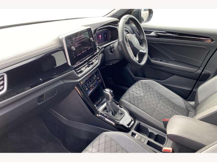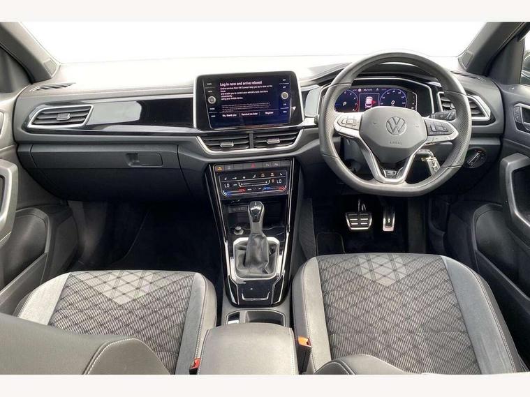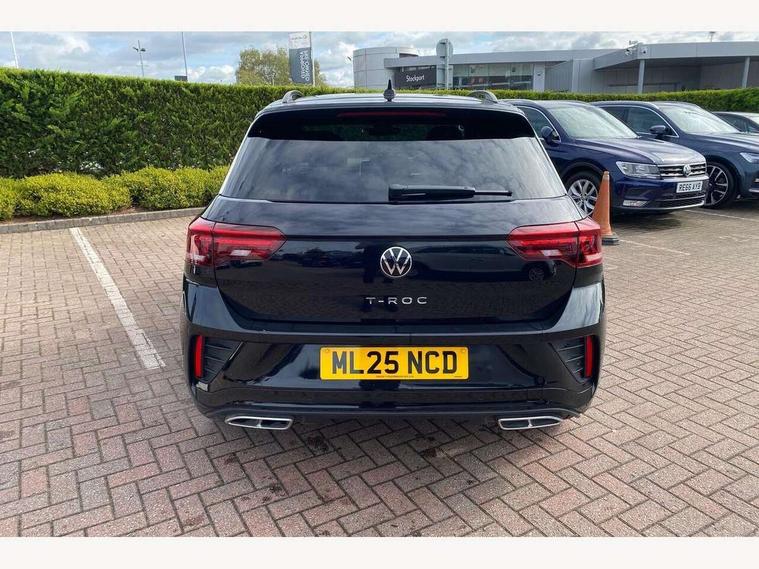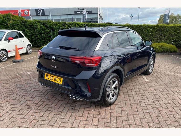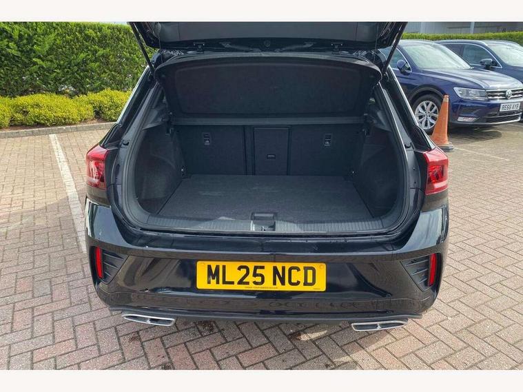 10.25" Digital cockpit pro, Advanced driver attention and drowsiness monitor, Emergency call service, Lane keeping system Lane Assist, Mobile phone interface, Modified key software - reduce switch off time for key status change to Long no motion, Online services, Park assist including front and rear parking sensors, Service interval indicator, Tailgate/trunk lid release from outside, Think blue trainer driver tips and journey analysis, Warning sound and light for front seatbelts unfastened, Wireless app connect, Battery regeneration during braking, Start/stop function with battery regeneration, DAB Digital radio, Diversity antenna for FM reception, Front and rear 6 speakers, Music playback - MP3, WMA and AAC files, Premium USB cable in choice of either Apple or Android smartphone compatibility, SD card slot, Simultaneous pairing of 2 compatible mobile devices, Title and cover art display, We Connect and We Connect Plus functionality, Auto dimming interior rear view mirror, Automatic hazard lights activation under emergency braking, Automatic headlight control with LED separate daytime running lights with coming/leaving home function, Body coloured exterior mirror housings and door handles, Electrically adjustable and heated door mirrors, Extended roof spoiler, Exterior mirrors aspherical on driver side, convex on front passenger side, External USB type C socket and charging sockets, Front windscreen wiper with intermittent wipe and 4 position delay, Heated rear window, LED 3rd brake light, LED rear combination lamps, LED rear number plate lights, Power windows with comfort operation and circuit breaker, Privacy glass for rear side windows and rear window, R-Line design body coloured bumpers, Rain sensor, Rear exhaust tailpipe, Rear fog light on one side and reversing lights on both sides, Rear side wing doors, Rear wash/wipe with intermittent wipe setting, Remote electrically foldable door mirrors, puddle lights and reverse activated passenger's door mirror, 12V power socket in centre console, 3 rear head restraints, 3 seat bench in 2nd row, 4 load lashing points in luggage compartment, Air care climatronic air conditoning system with active combination filter and 2-zone temperature control, Black roof lining, Chrome plated decorative trims, Chrome plated radiator grille inserts, air vent surrounds and light switch surrounds, Door and side trim panel with leatherette insert, Front + rear carpet mats, Front centre armrest, Front cupholders x 2, Front footwell illumination, Front reading light, Front scuff plates with R Line logo, Front seat back storage pockets, Glove compartment door with light, Instrument lighting, white adjustable panel illumination, Interior ambient lighting and surround lighting, Interior light delay, Isofix child seat preparation, Leather gearshift handle, Load-through provision with cup holder when folded down ('Unsplit rear seat bench, split folding backrest, with centre armrest), Luggage compartment lighting, Single front passenger seat, Stainless steel pedals, Storage compartment in left and right luggage area, Storage compartment in rear doors, Storage compartments in driver and front passenger doors, Sunvisors with illuminated vanity mirrors, Variable boot floor, height adjustable and removable, Driver assistance pack without proactive passenger protection - T-Roc, 3 point height adj front seatbelts + pretensioners, 3 point seatbelts in outer rear with ECE label, ABS, Child locks on rear doors, City emergency braking and pedestrian monitoring, Driver and front passenger airbag with front passenger airbag deactivation, Driver and front passenger safety-optimised head restraints, Drivers seatbelt reminder, Electronic parking brake, Electronic Stability Control (ESC) inc EDL (Electronic Differential Lock) and ASR (Traction Control), Front and rear passengers curtain airbag system including front side airbags, Hill start assist, Predictive pedestrian protection, Rear disc brakes, Two tone horn, Tyre pressure loss indicator, Volkswagen roadside assistance, Piano black decorative inserts in dashboard and front door trim panels, Trims for alloy wheels,