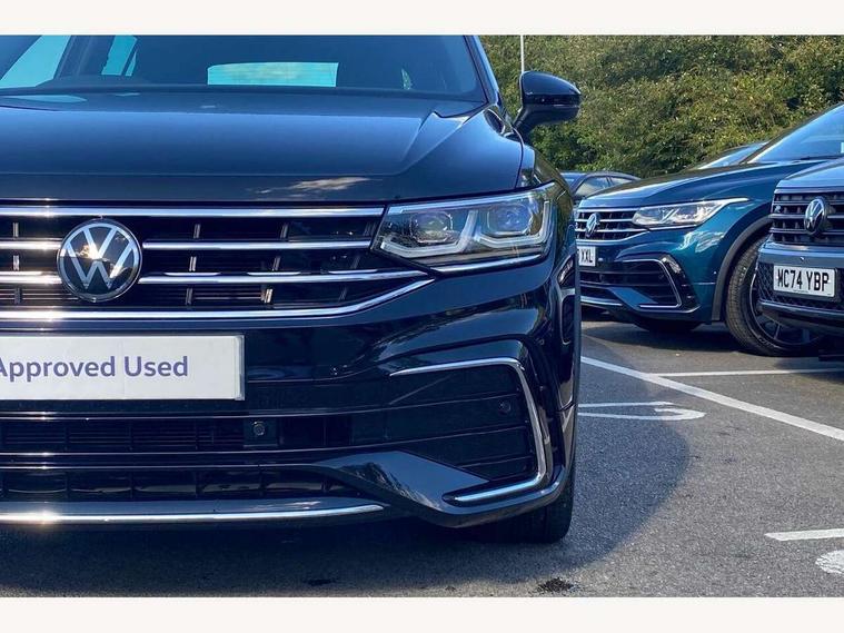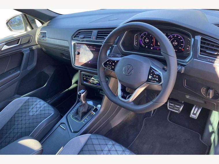 Adaptive cruise control ACC stop and go including speed limiter, App-Connect incl. App-Connect Wireless for Apple CarPlay and Android Auto, Bluetooth phone integration system, Digital Cockpit Pro - Active info display, Distance control assist, Driver alert system, Driver profile selection, Dynamic road sign display, eCall emergency call system, Electromechanical speed sensitive power steering, Engine start/stop button, Lane keeping system Lane Assist, Lights on warning, Multifunction front facing camera, Outside temperature display, Premium multifunction display with multi colour display, Remote control boot opening, Rev counter, Revision / skills operating concept travel assistant, Service interval indicator, Speed limit display, Start/stop system with regenerative braking, Trip computer, Warning sound and light for doors and tailgate open, Battery regeneration during braking, Diesel particulate filter, Misfuel prevention device for diesel engine, Selective Catalytic Reduction, XDS electronic differential lock for improved traction and handling, 2 USB-C ports in the front, 1 USB-C charging socket on the center console in the rear, 4 X 20 watt output, 8 Speakers, Diversity antenna for FM reception, Radio, SD card slot, Simultaneous pairing of 2 compatible mobile devices, SMS functionality - read, compose and send SMS messages using touch-screen display, Title and cover art display, Auto dimming interior rear view mirror, Automatic headlight control system, Black roof rails, Body colour door handles, Body coloured bumpers in R Line style, Body coloured door mirrors with integrated indicators, Chrome moldings on the side windows, Coming/leaving home lighting function, Dynamic headlight range control, Front and rear electric windows, Heated rear window, High level 3rd brake light, Laminated safety glass windshield, heat and sound insulating, LED headlamps with LED separate daytime running light and dynamic cornering light, LED rear combination lamps, LED rear number plate lights, License plate carrier in front and rear, Poor weather light and cornering light, Privacy glass for rear side windows and rear window, R Line body kit, R Line side sills, Rain sensor windscreen wipers, Rear exhaust tailpipe, Rear fog lamp, Rear side wing doors, Rear spoiler in R style, Rear windscreen washer and wiper with interval delay, Side and rear windows in heat insulating glass, Trailer Stability Programme, Unique R Line badging, Windscreen wipers/ intermittent wipe + 4 position delay, 12V outlet in center console rear and in luggage compartment, 12V outlet in front and tray, 2 cup holders in front, 2 LED front reading lights, 2 LED rear reading lights, 3 bench rear seats in 2nd row, 3 rear headrests, 4 load lashing points, 40:20:40 split folding rear seats, Air Care Climatronic 3 zone automatic climate control with enhanced air filter and controls in the rear, Backrest release for left front seat, Black headlining, Brushed stainless steel pedals and footrest, Carpet mats in front and rear with decorative stitching in Gray, Climate control unit rear with touch function, Door and side trim panel in foam film, insert in leatherette, Front centre armrest, Front footwell illumination, Front seats head restraints (x-adjustment), Height adjustable front seats, Height/reach adjust steering wheel, Instrument lighting white adjustable panel illumination, Interior light with delay, Isofix Preparation 2 Rear child seats, Leather gear knob, Lockable cooled glovebox, Luggage compartment lighting, Luggage net, Rear bench seat asymetrically split folding, longitudinally movable and folding with load-through hatch and center armrest, Remote unlocking for rear seat backrest, Removable luggage cover, Removable rear headrests, Safety optimised front head restraints, Single front passenger seat, Sliding/reclining rear seats, Standard rear seat release, Storage compartment in driver's door, Storage compartment in passenger's door, Storage compartment in rear doors, Storage compartments in luggage area left and right, Storage tray on dashboard, Sun visors with illuminated vanity mirrors, Top front comfort seats, Variable boot floor, height adjustable and removable, Ambience pack - Tiguan R Line, Driver assistance pack plus - Tiguan DSG, Park assist pack - Tiguan, 3 point seat belt for centre rear seats, 3 point seat belts with seat belt pretensioners for the outer rear seats, Active bonnet, Curtain airbags for front and rear passengers, Driver/Front Passenger airbags, Drivers knee airbag, Electronic parking brake with auto hold, Electronic Stability Control with driver steering recommendation, ABS, ASR, EDL, EDTC and trailer stabilization, Front assist with autonomous emergency braking (for Adaptive Cruise Control ACC up to 130 mph), Front disc brakes, Front passenger airbag deactivation, Front side airbags, Height adjustable front 3 point seatbelts + pretensioners, Hill hold control, Manual child proof rear door locks, Pedestrian monitoring system, Power assisted brakes, Proactive passenger protection system in combination with front assist, Rear disc brakes, Rigid safety cell with front and rear crumple zones, Two tone horn, Warning sound and light for front seat belts if unfastened, Anti theft alarm system with interior monitoring, backup horn and towing protection, Anti theft wheel bolts, Electronic engine immobiliser, 20" Misano black with diamond turned surface alloy wheels with Airstop tyres, Tool kit,