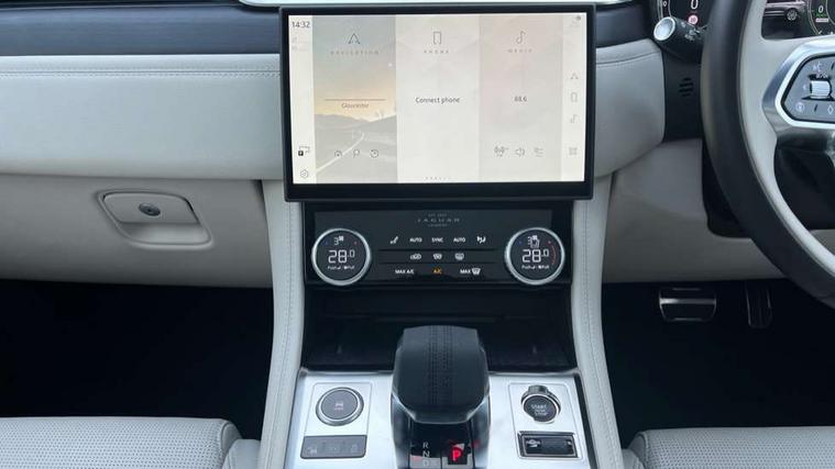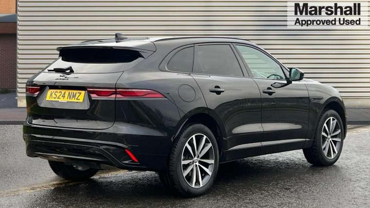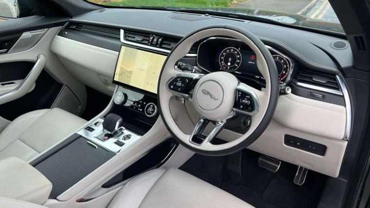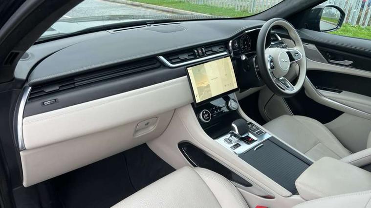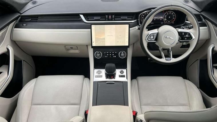 11.4" touchscreen, Adaptive cruise control with steering assist, Android Auto, Apple car play, Blind spot assist, Bluetooth connectivity, Clear exit monitor, Driver alert system, Driver condition monitor, eCall emergency call system, Eco driving style assistant, Electric power assisted steering, InControl remote, Interactive driver display digital with 12" TFT display, Jaguar Toggle shift selector, Lane departure warning system, Lane keep assist, Outside temperature gauge, Personalisation profile management, Pivi pro connected navigation system with app interface and media storage, Pro services and wifi hotspot, Push button starter, Rear collision monitor, Rear traffic monitor, Service interval indicator, Speed proportional steering, Start up sequence with movement in dials and lighting, Traffic sign recognition with adaptive speed limiter, Trip computer, Voice control system, Wireless device charging, 7 kW onboard charger, 8 speed automatic transmission, AC/DC charging, Adaptive dynamics, All terrain progress control, All Wheel Drive (AWD), Configurable dynamics, Home charging cable, Open differential with torque vectoring by braking, Public charging cable, AM/FM radio, Bluetooth streaming, DAB Radio (Digital Audio Broadcasting), Dynamic volume control, InControl apps, InControl protect, iPod integration, 3 flash lane change indicators, AHBA and animated directional indicators, Approach Illumination, Auto dimming rear view mirror, Automatic headlights, Electric heated/power fold memory door mirrors with approach lights and auto dimming driver side, Electric windows with one touch open/close and anti trap, F-Pace and R Dynamic badge, Green tinted glass, Heated front windscreen + heated washer jets, Heated rear window with timer, Illuminated metal tread plates with Jaguar script, Jaguar script and leaper, LED High level third brake light, LED tail lights, Metal load space scuff plates, Non acoustic front windscreen, P400e AWD badge, Privacy glass (rear side windows and rear screen), R Dynamic badge on side door, Rain sensor windscreen wipers, Rear fog lights, Rear metal tread plates, Rear side wing doors, Rear wiper, Trailer stability assist, Variable front intermittent wipers, 12V power point front, 3 rear headrests, 3 seat bench in 2nd row, Additional power sockets - Two additional USB sockets in rear centre console and one 12V socket in trunk, Air distribution speed, Bright metal foot pedals, Centre armrest console, Centre console with side storage, Configurable cabin lighting, Deletion loadspace storage rails, Door sill tread plates, Ebony suede cloth headlining, Electrically adjustable steering column, Fold flat front seats, Front centre armrest with storage compartment, Front door storage space, Glovebox finisher with jaguar script, Heated steering wheel, Hooks in loadspace, Illuminated glovebox, Interior front door handles with separate locking switches, ISOFIX on outer rear seats, Jaguar sense, Leather steering wheel, Luggage tie downs in loadspace, Mist sensing, Multifunction steering wheel, Overhead lighting console, Overhead stowage for sunglasses, Passive front head restraints, Premium carpet mats, Rear air vents, Rear armrest with twin cupholders, Rear centre headrest, Rear door storage space, Reversible boot floor, Satin chrome gearshift paddles, Shopping bag hook, Single front passenger seat, Sunvisors with illuminated vanity mirrors, Twin front cupholders with cover, Online Pack with data plan - F-Pace, 380mm front brakes and 325mm rear brakes, 3x3 point rear seatbelts, ABS, All surface progress control (ASPC), Brake pad warning light, DSC - Dynamic Stability Control, Electric parking brake (EPB), Emergency brake assist, Front airbags with passenger seat occupant detector, Front and rear seatbelt reminder, Front side airbags, Full length side window curtain airbag, Hill launch assist, Power operated child locks, Traction control, Tyre pressure monitoring system, Immobiliser, Keyless entry, Keyless Start, Locking wheel nuts, Perimeter alarm, Remote central locking, Valet mode,