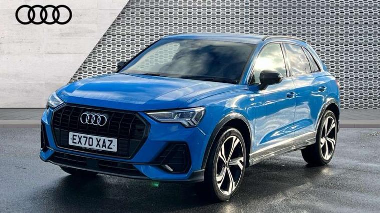 Audi connect safety and service (e-call), Audi drive select, Audi lane departure warning, Audi side assist, Audi smartphone interface includes wireless Apple carplay/Android Auto, Audi virtual cockpit plus, Bluetooth interface, Camera based traffic sign recognition, MMI Navigation Plus with high resolution 10.1 inch touchscreen colour display, Power operated tailgate, Progressive steering, Service interval indicator, Start stop system with recuperation, Voice control system with natural language interaction, 48V Mild hybrid technology, Sports suspension, 1 x USB type C and 1 USB type A charging points, 6 passive loudspeakers, DAB digital radio module, Acoustic windscreen, Audi Beam uses LEDs to project the Audi Sport logo, Auto dimming frameless rear view mirror, Black roof rails, Electrically folding, adjustable and heated door mirrors with integrated LED side indicators and kerb view function for passenger side, Front and rear electric windows, Front fog lights, Front spoiler blade in matt platinum grey, Grille vertical bars in aluminium silver/Matt, Headlight washers, High gloss black finish B and C pillars, Matrix LED headlights with LED rear lights and dynamic front and rear indicator, Privacy glass dark tinted rear and rear-side windows (from B-pillar backwards), Rain and light sensors, Rear diffuser strip in matt titanium black, S line bumpers in contrasting Manhattan grey, Side skirt insert in matt Platinium grey, Silver chrome grille surround, 12V socket in rear centre console, 3 spoke flat bottomed high multi-function leather sport steering wheel with gearshift paddles, 4 way electric lumbar support for driver and front passenger, 40:20:40 folding with manual adjustment for 60:40 forwards/backwards position and backrest angle, Adjustable rear seat bench/backrest with centre armrest and cupholder, Black cloth headlining, Dual zone electronic climate control, Electrically adjustable front seats, Front and rear black floor mats with contrast stitching in rock grey, Front and rear headrests, Front and rear roof module including reading lights, Front centre armrest, Glove compartment lighting, Heated front seats, Height and reach adjustable steering wheel, Illuminated door sill trims with S logo, ISOFIX child seat mounting for front passenger with airbag deactivation and outer rear seat including top tether attachment point for outer rear seats, Luggage compartment light, Perforated leather gearknob, Stainless steel luggage compartment sill finisher, Stainless steel pedals, Tool kit, Black styling pack - Q3, Multi coloured extended ambient interior lighting pack - Q3, Non smoking pack - Q3, 3x3 point rear seatbelts, 6 airbags - Driver, front passenger, curtain and side windows, Audi pre-sense front with pedestrain and cyclist recognition, Electrically operated child locks on rear doors, Electromechanical parking brake, Electronic stabilisation control including ABS, ASR and EDL, Hill descent control, Hill hold assist, Pre sense basic, Seatbelt monitoring, Tyre pressure warning, Warning triangle and first aid kit, Anti theft alarm, Anti theft wheel bolts, Remote central locking, Dark matt brushed aluminium inlay, Detail dashboard around MMI touch colour display in glass look, black with surround in aluminium look, Leatherette door armrest, Tyre repair kit,