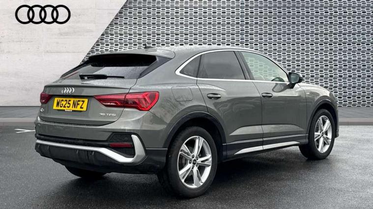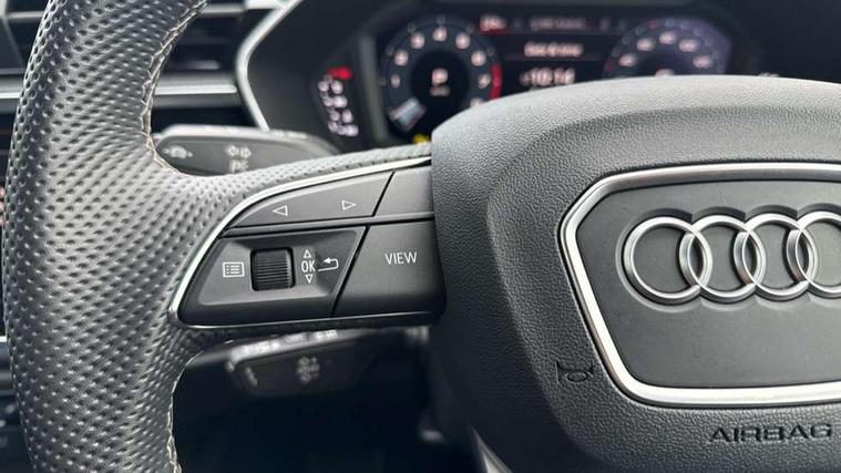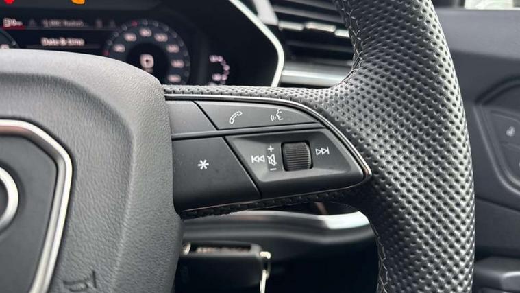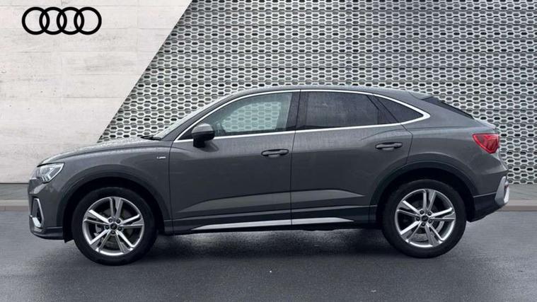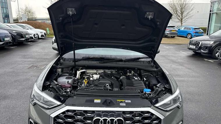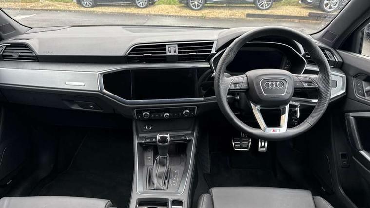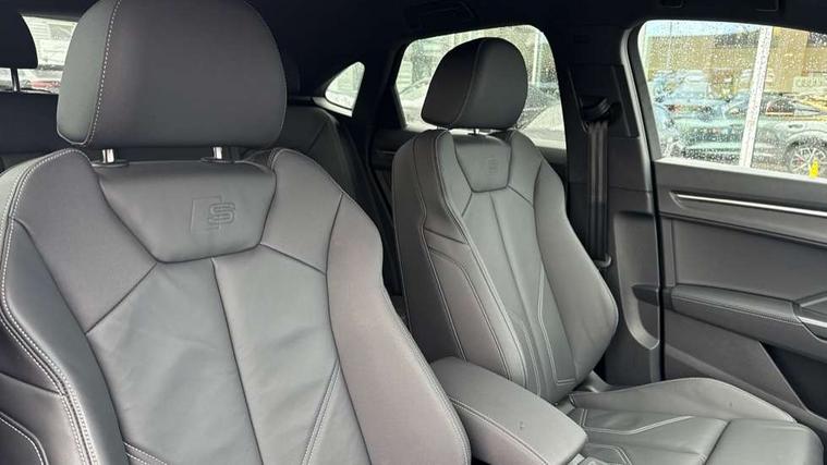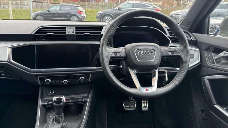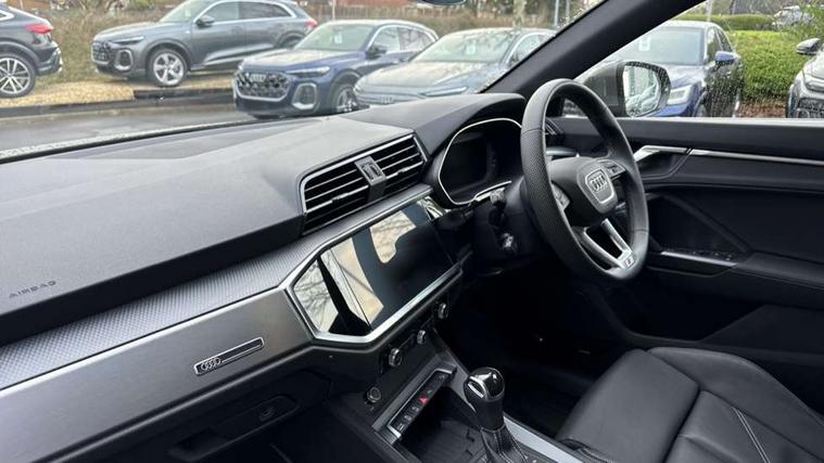 Audi connect safety and service, Audi drive select, Audi lane departure warning, Audi Virtual Cockpit - 10.25" display, Bluetooth interface, Camera based traffic sign recognition, Distraction and Fatigue warning, Legal emergency call, MMI Navigation Plus with high resolution 10.1 inch touchscreen colour display, Power operated tailgate, Progressive steering, Service interval indicator, Smartphone interface includes wireless Apple carplay/Android Auto, Start stop system with recuperation, Voice control system with natural language interaction, Sports suspension, 2 USB-C ports with charge and data functions, 6 passive loudspeakers, DAB digital radio module, Acoustic windscreen, Aluminium window trim, Auto dimming door mirrors, Auto dimming frameless rear view mirror, Diffuser grille in grained matt black, Diffuser trim in selenite silver, Electrically folding, adjustable and heated door mirrors with integrated LED side indicators and kerb view function for passenger side, Front and rear electric windows, Front fog lights, Front side air inlets in selenite silver, Front underbody protection in manhattan grey paint finish, Grille surround in aluminium silver matt, High gloss black finish B and C pillars, LED Dynamic rear indicators, LED headlights with LED daytime running lights, LED rear lights, LED third brake light, Privacy glass dark tinted rear and rear-side windows (from B-pillar backwards), Radiator grille in anthracite black with inlay in matt aluminium silver, Rain and light sensors, Rear side wing doors, Rear underbody protection in matt black, Rear wiper, S line badges on front wings, S line front and rear bumpers and side skirts in contrasting Manhattan grey paint finish, Side skirt insert in matt Platinium grey, Variable front intermittent wipers, 12V socket in rear centre console, 3 seat bench in 2nd row, 3 spoke leather multifunction steering wheel features S badging and grips in perforated leather with contrast stitching, 40:20:40 folding with manual adjustment for 60:40 forwards/backwards position and backrest angle, Adjustable rear seat bench/backrest with centre armrest and cupholder, Black cloth headlining, Dual zone electronic climate control, Electric lumbar support, Front and rear black floor mats with contrast stitching, Front and rear headrests, Front centre armrest, Height and reach adjustable steering wheel, Illuminated door sill trims with S logo, ISOFIX child seat mounting for front passenger with airbag deactivation and outer rear seat including top tether attachment point for outer rear seats, Luggage compartment sill protection in stainless steel, Manual front seats with height adjustment, Perforated leather gearknob, Single front passenger seat, Stainless steel pedals, Twin leather upholstery with front sport seats + S embossing, Non smoking pack - Q3, 3x3 point rear seatbelts, 6 airbags - Driver, front passenger, curtain and side windows, Audi pre-sense front with pedestrain and cyclist recognition, Electrically operated child locks on rear doors, Electromechanical parking brake, Electronic stabilisation control including ABS, ASR and EDL, Front seatbelt reminder, Hill descent control, Hill hold assist, Pre sense basic, Seatbelt monitoring, Tyre pressure warning, Warning triangle and first aid kit, Anti theft wheel bolts, Immobiliser, Remote central locking, Thatcham approved category 1 anti theft alarm, Aluminium look interior elements, Dark matt brushed aluminium inlay, Detail dashboard around MMI touch colour display in glass look, black with surround in aluminium look, Leatherette door armrest,