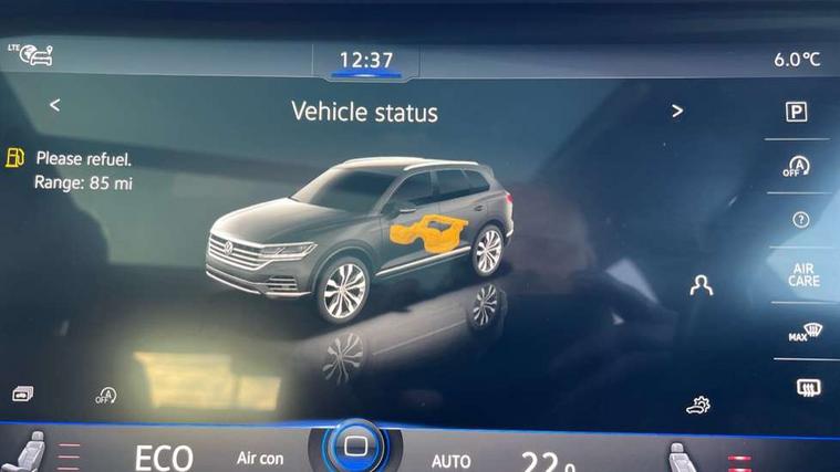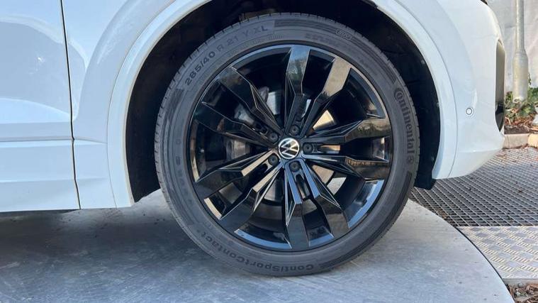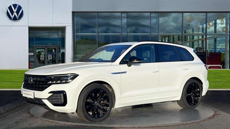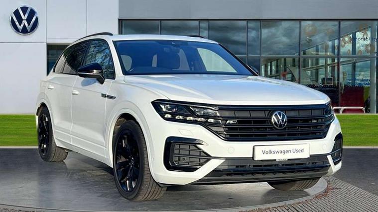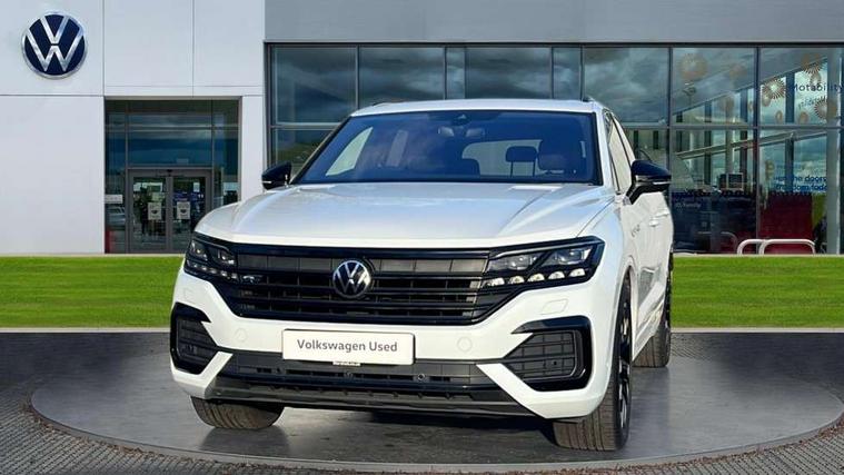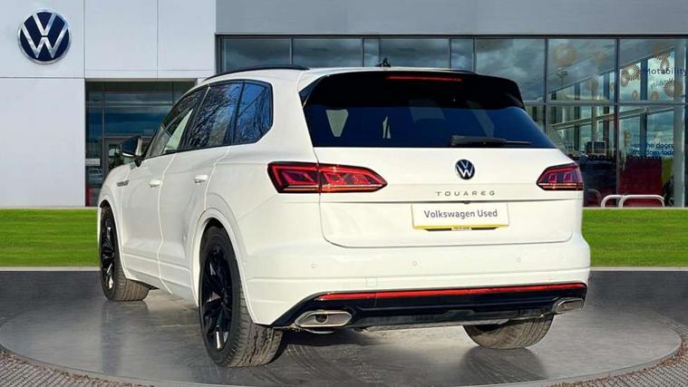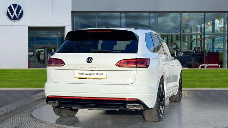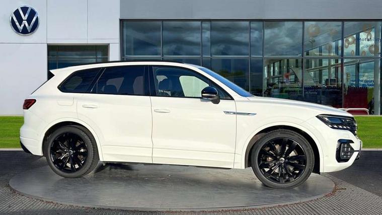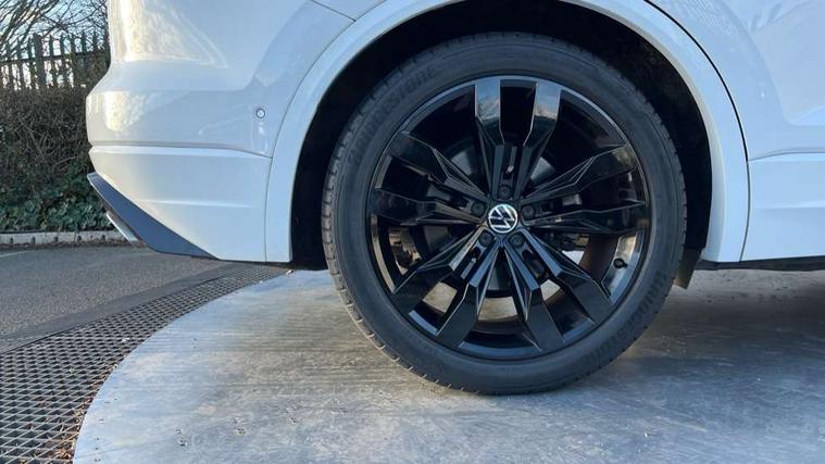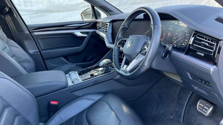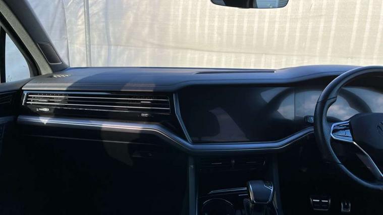 2D/3D map view, ACC - Adaptive cruise control with front assist, forward collision warning, distance monitoring, city emergency brake and speed limiter, Apple car play/Android Auto, Audible and visual fatigue detection system, Bluetooth hands free telephone connection, Car information display, Drive select with Damper control, Driver alert system, Dynamic road sign display camera controlled system with visual warning for traffic and road signs, eCall emergency system, Fully electric tailgate + keyless entry and start, Instrument cluster, MirrorLink, Multifunction camera with lane assist, Multifunction computer premium with 7" colour display, One touch indicators with repeat function, Service interval indicator, Speed sensitive power steering, Start/stop system with regenerative braking, Tailgate power latch, Think blue trainer driver tips and journey analysis, Traffic sign recognition, Voice control system, Wireless Smartphone charger, Torsen limited slip differential, DAB Digital radio, Dynamic navigation based on TMC+, Gesture control for infotainment system, Multi device interface (MDI) with illuminated USB-C connection, Music playback - MP3, WMA and AAC files, SD card slot, Simultaneous pairing of 2 compatible mobile devices, SMS functionality - read, compose and send SMS messages using touch-screen display, Title and cover art display, Volkswagen media control, Adaptive low beam for urban and motorway use, Auto dimming rear view mirror, Automatic coming/leaving home lighting function, Automatic headlights, Black anodised roof rails, Black door mirrors, Black rear diffuser, Black side window surrounds, Black upper and lower grille louvres extending into headlights and radiator grille, Body colour door handles, Body coloured wheel arches, C signature gloss black front air intake, Chromed tailpipe on the left and right integrated in the bumper with trapezoid design, Dusk sensor, Dynamic headlight range control, Electric front tilt/slide panoramic sunroof and fixed rear sunroof, Electrically power adjustable, heated, folding, auto dimming, front passenger exterior door mirror lowering function, Front and rear electric windows, Galvanised body, Gloss black finish B pillar, Gloss black rear diffuser, Headlight washers, Heat insulating darkened glass in side and rear windows, Heated windscreen washer jets, IQ.Light-LED matrix headlight, daytime running light with dynamic cornering light and indicator, LED rear fog light, LED rear number plate lights, Plastic scuff plates in door apertures, Poor weather light, Puddle lights, Rain sensor, Rear wiper, 12V socket in front and rear centre console and boot, 2 Coat hooks on B pillar, 3 rear head restraints, 3 spoke sport heated leather multi-function sports steering wheel with gear shift paddles - generation 2, 4 way adjustable front head restraints, 4 way electric lumbar support for driver and front passenger, 4 zone climate control, 40:20:40 split folding slide/recline rear seat, B pillar vents, Black lower edge of door extending sills, Branded points of interest, Double sun visor for drivier and passenger with LED illuminated vanity mirrors, Electric luggage compartment cover, Folding rear centre armrest with 2 cupholders, Front + rear carpet mats, Front centre armrest with storage box, Gear shift indicator, Height/reach adjust steering wheel, Illuminated air conditioned glovebox, Isofix preparation for 2 rear child seats, Jack and tool kit, Leather trimmed gear knob with gloss black inlay/aluminum trim, Leatherette door trim, LED luggage compartment lighting, Load through provision, Luggage compartment with load lashing rings, Plastic loading edge protection, Rear seat remote release levers, Soul black headlining, Stainless steel pedals, Innovision cockpit pack - Touareg, 3 point front seatbelts with pre-tensioners, ABS, Active bonnet, Automatic post collision braking system, Curtain airbags, Driver/Front Passenger airbags, EBD + Brake Assist, EDL, Electronic parking brake with auto hold, ESC with ASR, Front seat side impact airbags, Hill descent control, Hill start assist, Passenger airbag deactivate switch, Seatbelt warning lamp and buzzer, Three 3 point rear seatbelts, Two tone horn, Volkswagen roadside assistance, Warning triangle and first aid kit, Alarm with interior monitoring in cab, backup horn and towing protection, Child security locks for front and rear doors, Electronic engine immobiliser, Remote central locking, Black decorative trims on the side windows, High gloss black centre console,