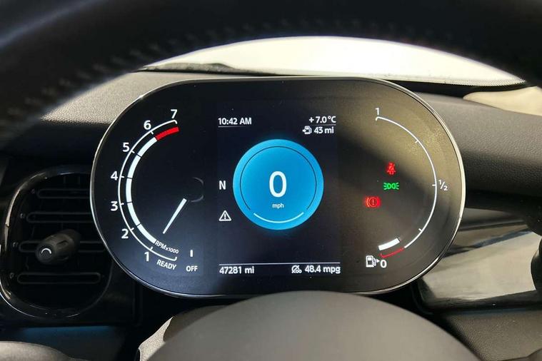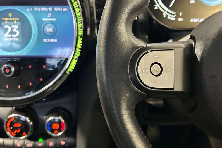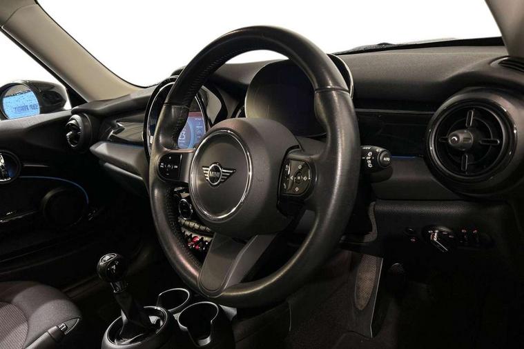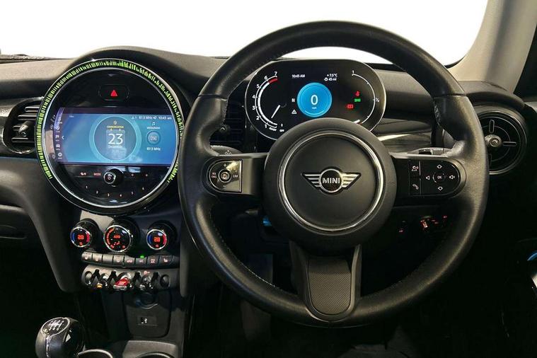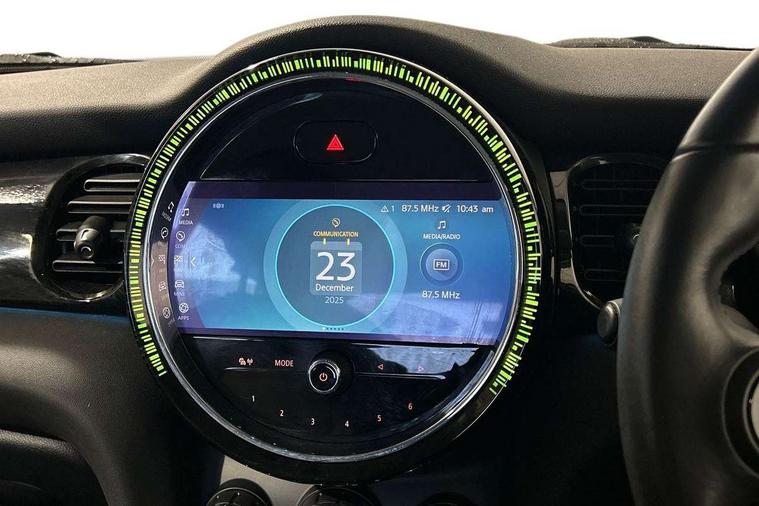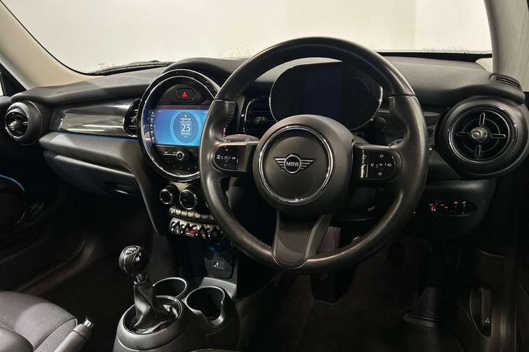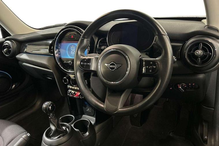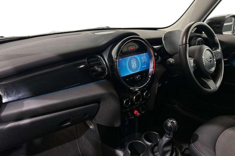 Automatic start/stop function with brake energy recuperation, Compatible mobile phone bluetooth with audio streaming, Cruise control with brake assist, Electro-mechanical speed dependant steering assistance, Flexible car sharing preparation, Instrument cluster, Mini E-call, MINI TeleServices, On board computer, Service interval indicator, 6 Speed manual transmission including gear change indicator display, Double Vanos system, Fully variable valve control, High precision injection, Performance Control, 4 speakers in front door trims and underneath front seats, 8.8" touchscreen with LED ring, FM tuner and DAB digital radio, Automatic headlight activation switch, Body colour fuel filler cap, Chrome border high gloss black slats radiator grille, Dynamic brake lights, Electric front windows, Exhaust tailpipe on left with chrome finisher, Heated rear window, Heated windscreen washer jets, LED headlight with closed ring and daytime driving lights, Metal door sill strips with MINI imprint, Model logo Cooper on right of tailgate, Rain sensor window wipers, Rear fog lights, Rear LED lights with union jack design, Rear window wiper, Side scuttle panel with integrated indicator, Sun/heat protection glass, White indicator lenses, 12V Accessory socket in centre console, 4 lashing eyes in luggage compartment, 60/40 split folding rear seat, Ambient lighting, Carbon black colour line - Knee roll and door armrest, Chrome interior highlights, Cupholders, Front and rear head restraints, Front and rear isofix with front passenger airbag deactivation, Glove compartment, Height and length steering column adjustment, Interior lighting with 12 different colours across the dashboard, underneath door bezel with illuminated laser-engraved design on central display, Leatherette gearshift lever and handbrake gaiters, LED reading lights, vanity mirror lights, front foot well light and spotlight on front seats, Manual air conditioning, Mechanical seat adjustment - forward/back & backrest for front seats and driver seat height adjust, Multifunction steering wheel, Passenger seat height adjuster, Satellite grey headlining including grab handles and clothes hooks, Sport leather steering wheel with speed limiter and audio/communication controls, Storage compartments in doors, Sunvisors with vanity mirrors, Velour floor mats, 3 point seatbelts on all four seats, 6 Airbags - front, side, head and seat belt tensioners, Anti-lock braking system (ABS), DSC - Dynamic Stability Control, Front and rear disc brakes, Single tone fanfare horn, Tyre pressure monitoring system, Alarm system with tilt sensor, monitoring doors, bonnet interior and tailgate, Electronic vehicle immobiliser, Start/stop toggle with keyless go, Piano black interior trim, Tool kit, Tyre repair kit,
