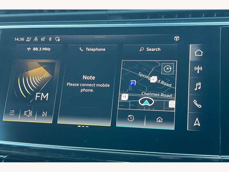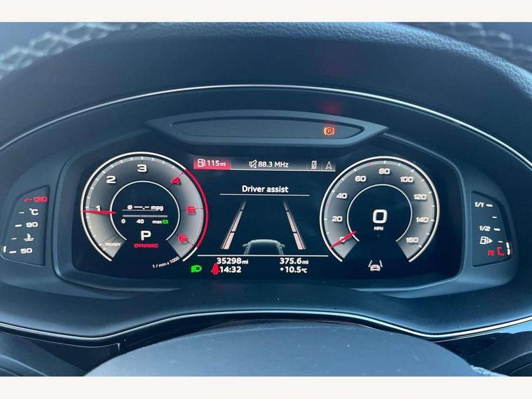 10.1" and 8.6" Dual colour touchscreens, Audi connect safety and service (e-call), Audi connect with Amazon Alexa Integration, Audi drive select, Audi parking system plus includes 360 degree display with front and rear sensors, Audi phone box light with wireless charging, Audi virtual cockpit - 12.3" high resolution LCD display with fully customisable instrument cluster, Automatic start/stop system, Electro-mechanical PAS, Low washer fluid indicator, MMI - Multi Media Interface control system, MMI navigation plus with MMI touch, Natural voice recognition, On board computer, Operating buttons in black, glass look with haptic feedback, Power operated tailgate, Rear view camera, Service interval indicator, Smartphone interface includes wireless Apple carplay/Android Auto, 48V Mild hybrid technology, Adaptive sport air suspension, Diesel particulate filter, Quattro all wheel drive with self locking centre differential, Audi music interface with 2 USB ports with charge and data functions, Audi sound system with 6 channel amplifier, 180 watt amplifying capacity and 10 loudspeakers including subwoofer, Aux-in socket, DAB Digital radio, 3rd brake light, Acoustic windscreen, Aluminium window trim, Audi beam, Audi HD Matrix LED headlights with dynamic front and rear indicators, Auto dimming frameless rear view mirror, Black Audi rings and black badging, Coming/leaving home lighting function, Electric front+rear windows, Electrically folding auto dimming/adjustable/heated door mirrors with memory function, LED side indicators and kerb view function for passenger side, Headlight washers, Heat insulating glass in windshield, LED signature daytime running lights, Platinum grey front spoiler lip and diffuser insert with honeycomb grille in black, Privacy glass - dark tinted rear and rear side windows from B-pillar backwards, Rain and light sensors, Rear side wing doors, Rear wiper, 2 zone automatic climate control, 3 bench rear seats in 2nd row, 4-way lumbar support for front seats, 40:20:40 split folding rear bench seat, Audi phone box light, Black cloth headlining, Comfort front centre armrest, Driver seat memory function, Electrically adjustable front seats, Front head restraints, Front/rear floor mats, Heated front seats, ISOFIX child seat mounting for front passenger seat and 2 outer rear seats with top tether child seat mounting for all 3 rear seats, LED interior ambient lighting, Luggage compartment sill protection in stainless steel, Rear centre armrest with 2 cupholders, Rear headrests, Seat cushion displaceable by 100mm in the ratio 60:40, Single front passenger seat, Stainless steel pedals, Sunvisors with illuminated vanity mirrors, 3 point seatbelts on all seats, Audi pre sense front, Child locks on rear doors, Driver and front passenger, front side and curtain airbags, Electromechanical parking brake, Electronic Stability Control (ESC) including ABS, ASR and EDL, Front passenger airbag deactivation, Hill descent control, Hill hold assist, Predictive pedestrian protection, Seatbelt monitoring, Traction control, Tyre pressure loss indicator, Warning triangle and first aid kit, Anti theft alarm with tow away protection, Anti-theft wheel bolts and wheel loosening detection, Immobiliser, Keyless go with remote central locking, Polished oak trim with grey finish inlay, Tool kit, Tyre repair kit,