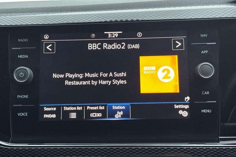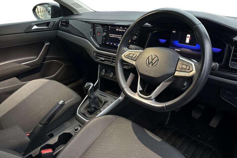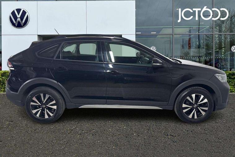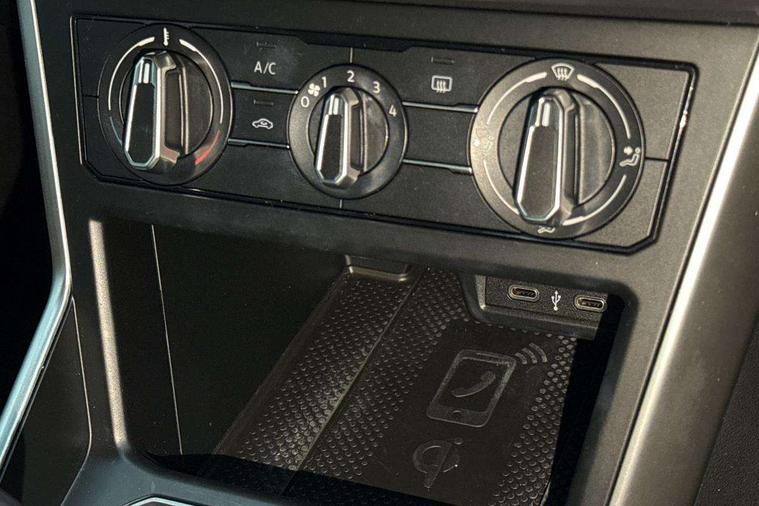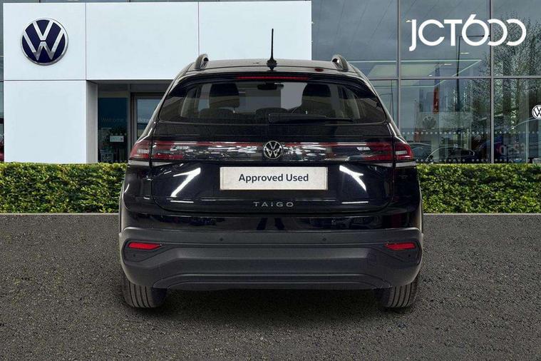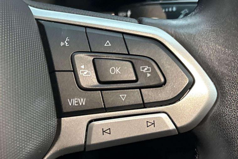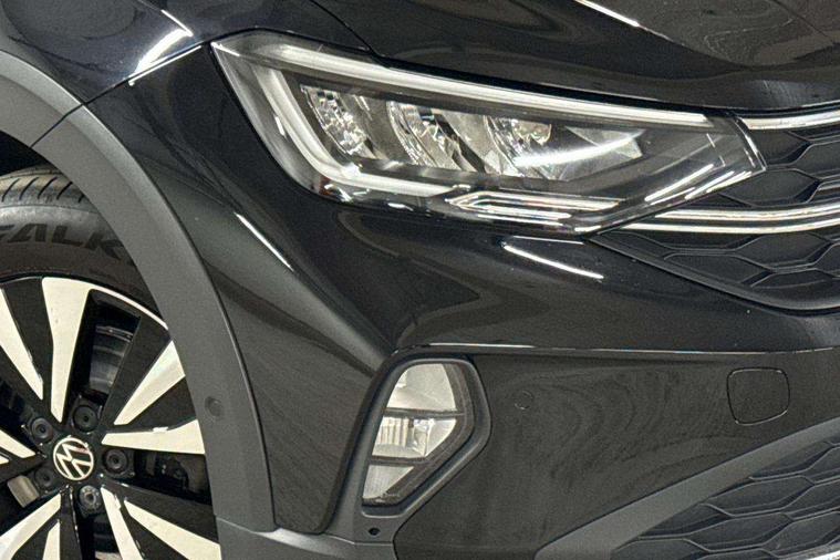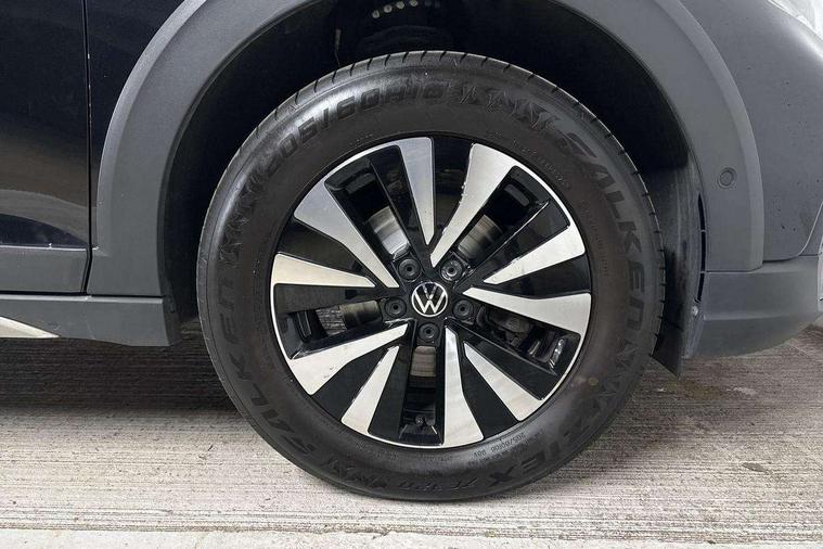App-Connect including App-Connect Wireless, Driver alert system, e-Call (emergency call), Power Steering, Travel assist including emergency assist, Washer fluid level indicator, Wireless Charging including Bluetooth, Start-stop system with battery regeneration (recuperation - energy recovery during braking), Digital radio reception (DAB+), Diversity antenna for FM reception, WeConnect plus, Ambient lighting with logo projection, Aspherical driver's exterior mirror, Auto headlights, Body coloured bumpers, Body coloured exterior mirror housings and door handles, Electric windows, External USB type C socket and charging sockets, Front fog lamps with cornering function, Headlight range control, Heat insulating glass windscreen, LED headlamps, LED rear combination lamp, LED third brake light, Left convex exterior mirror, Power folding adjustable/heated exterior mirrors and front passenger exterior mirror lowering function, Rear fog light on one side, reversing light on both sides, Rear side wing doors, Rear wash/wipe with intermittent wipe setting, 'Slash/ Austin' Cloth upholstery, 12V socket in centre console, 2 front reading lights, 3 rear head restraints, 3 seat bench in 2nd row, Black carpets, Child seat anchor for child seat system i-Size, 2x top tether and child seat anchor in front on front passenger side, Door and side trim panels in titan black, Driver and front passenger seat height adjustment, Front centre armrest, Handbrake lever handle in leather, Height and reach adjustable steering wheel, Leather trimmed gear knob, Leather wrapped multifunction steering wheel, Luggage compartment floor, Luggage compartment light, Lumbar support for driver's and front passengers seat, Seat covers in titanium black, Single front passenger seat, Split folding backrest with centre armrest and unsplit rear seat bench, Storage compartment under front seats, Sun visors with illuminated vanity mirrors, Chrome Package - Taigo, Drivers assistance pack - Taigo, Light and Sight pack including High beam assist - Taigo, 2 x 3-point seatbelts/outer rear seats with ECE label, 3-point seat belts in front with pretensioner and height adjustment, 3-point seatbelt for centre rear seat, Driver and front passenger airbags with front passenger airbag de-activation, front side and curtain airbags, Driver and front passenger safety-optimised head restraints, Electronic stability control, Extended and predictive pedestrian/ cyclist protection, Front and rear disc brakes, Front curtain and side airbags with center airbag, Hill start assist, Manual rear child locks, Single tone horn, Tyre pressure loss indicator, Anti-theft alarm system with interior monitoring, backup horn, and towing protection, Anti-theft wheel bolts, Lava stone black gloss/matt decorative inserts in dash and front door panels, Low rolling resistance tyres,