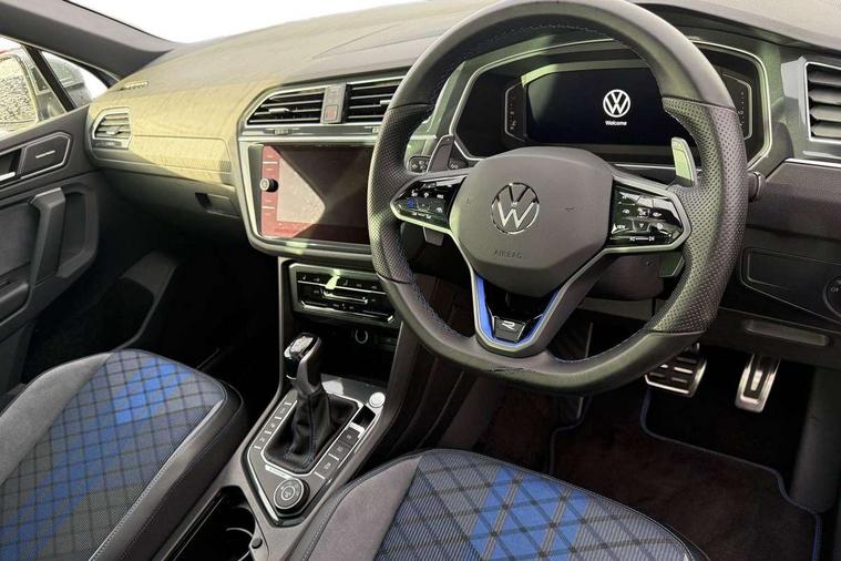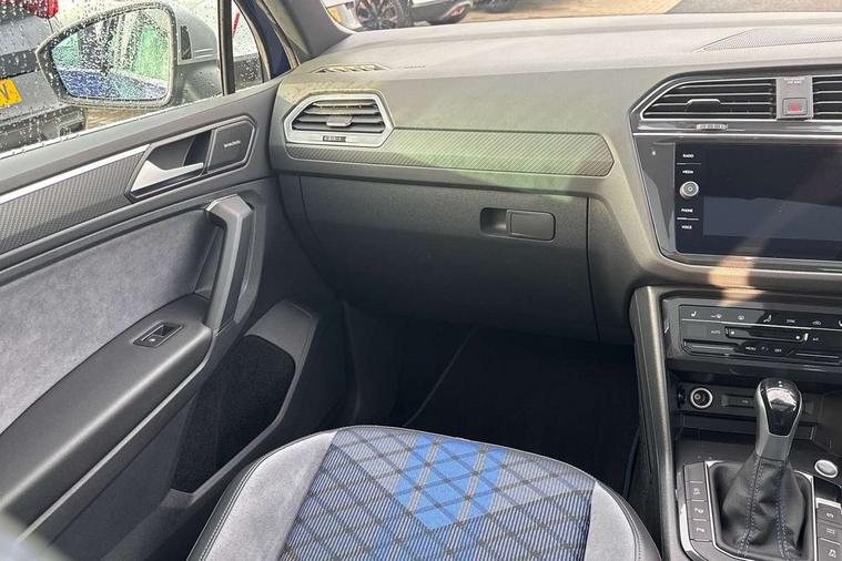 Adaptive cruise control ACC stop and go including speed limiter, App-Connect incl. App-Connect Wireless for Apple CarPlay and Android Auto, Bluetooth phone integration system, Distance control assist, Driver alert system, Driver profile selection, Dynamic road sign display, eCall emergency call system, Electromechanical speed sensitive power steering, Engine start/stop button, Instrument cluster mph speedometer Great Britain, Lane keeping system Lane Assist, Lights on warning, Motorised electric tailgate operated via key fob, drivers door and foot movement under tailgate, Multifunction front facing camera, Outside temperature display, Premium multifunction display with multi colour display, Rev counter, Revision / skills operating concept travel assistant, Service interval indicator, Speed limit display, Start/stop system with regenerative braking, Tailgate/trunk lid unlocking from outside, Trip computer, Warning sound and light for doors and tailgate open, ACC - Adaptive chassis contol with adaptive dampers, All wheel drive - 4Motion, Battery regeneration during braking, XDS electronic differential lock for improved traction and handling, 4 X 20 watt output, 8 speakers, Diversity antenna for FM reception, SD card slot, Simultaneous pairing of 2 compatible mobile devices, SMS functionality - read, compose and send SMS messages using touch-screen display, Title and cover art display, USB C ports, Auto dimming interior rear view mirror, Automatic headlight control system, Body colour door handles, Body coloured door mirrors with integrated indicators, Chrome matt mirror covers, Chrome moldings on the side windows, Coming/leaving home lighting function, Dynamic headlight range control, Front and rear electric windows, Front illuminated door sills with R logo, Heated rear window, High level 3rd brake light, IQ light-Adv high beam, Dynamic light assist for LED matrix headlamp+LED separate DRL+DCL, dark red rear LED tech, Poor weather light+ cornering light, Laminated safety glass windshield, heat and sound insulating, LED rear number plate lights, License plate carrier in front and rear, Poor weather light and cornering light, Privacy glass for rear side windows and rear window, R-Logo light projection, R-Logo on radiator grille with side panels and rear, R-specific diffuser, painted black with cut out for trailer hitch, R-Specific front and rear bumpers, Rain sensor windscreen wipers, Rear fog lamp, Rear side wing doors, Rear spoiler in R style, Rear windscreen washer and wiper with interval delay, Side and rear windows in heat insulating glass, Silver anodised roof rails, Trailer Stability Programme, Windscreen wipers/ intermittent wipe + 4 position delay, 12V outlet in center console rear and in luggage compartment, 12V outlet in front and tray, 2 cup holders in front, 2 LED front reading lights, 2 LED rear reading lights, 3 bench rear seats in 2nd row, 3 rear headrests, 4 load lashing points, 40:20:40 split folding rear seats, Air Care Climatronic 3 zone automatic climate control with enhanced air filter and controls in the rear, Backrest release for left front seat, Black headlining, Climate control unit rear with touch function, Door and side trim panel in foam film, insert in leatherette, Floor mats with R-Logo and stitching, Front centre armrest, Front footwell illumination, Front seats head restraints (x-adjustment), Height adjustable front seats, Height/reach adjust steering wheel, Instrument lighting white adjustable panel illumination, Interior light with delay, Isofix Preparation 2 Rear child seats, Leather gear knob, Lighting door sill trim at front with R Logo, Lockable cooled glovebox, Luggage compartment lighting, Luggage net, Pedals and footrest in stainless steel, R Specific key caps, R-specific sport skin with R Logo in active Info dsiplay, R-taster (direct selection of race mode/ flap control), Rear bench seat asymetrically split folding, longitudinally movable and folding with load-through hatch and center armrest, Remote unlocking for rear seat backrest, Removable luggage cover, Removable rear headrests, Safety optimised front head restraints, Single front passenger seat, Sliding/reclining rear seats, Standard rear seat release, Storage compartment in driver's door, Storage compartment in passenger's door, Storage compartment in rear doors, Storage compartments in luggage area left and right, Storage tray on dashboard, Sun visors with illuminated vanity mirrors, Tool kit, Top sports seats integrated headrest, blue R-Logo in front seats, seat centre panels and outer rear seats in fabric inner side bolster art Velors, Variable boot floor, height adjustable and removable, Easy open and close pack with safelock - Tiguan, 3 point seat belt for centre rear seats, 3 point seat belts with seat belt pretensioners for the outer rear seats, Active bonnet, Curtain airbags for front and rear passengers, Driver/Front Passenger airbags, Drivers knee airbag, Electronic parking brake with auto hold, Electronic Stability Control with driver steering recommendation, ABS, ASR, EDL, EDTC and trailer stabilization, Front assist with autonomous emergency braking (for Adaptive Cruise Control ACC up to 130 mph), Front disc brakes, Front passenger airbag deactivation, Front side airbags, Height adjustable front 3 point seatbelts + pretensioners, Hill hold control, Manual child proof rear door locks, Pedestrian monitoring system, Power assisted brakes, Proactive passenger protection system in combination with front assist, Rear disc brakes, Rigid safety cell with front and rear crumple zones, Two tone horn, Tyre pressure monitoring system, Warning sound and light for front seat belts if unfastened, Anti theft alarm system with interior monitoring, backup horn and towing protection, Anti theft wheel bolts, Central locking system with safelock radio remote control and 2 remote control folding keys, Electronic engine immobiliser, Tyre mobility kit Includes 12V compressor and tyre sealant,