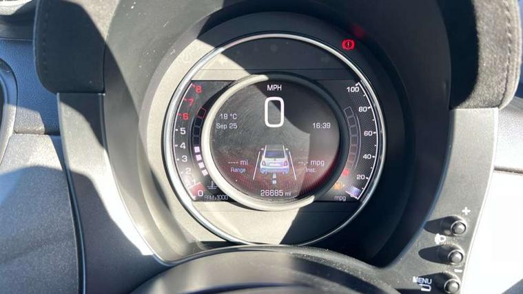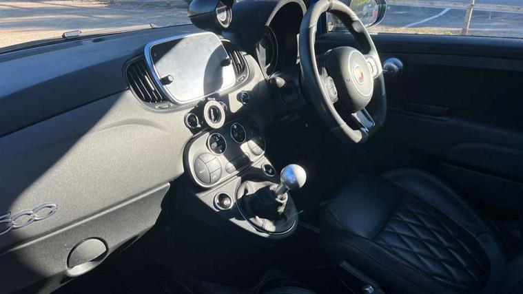 7" TFT instrument display with sports mode, 7" Touchscreen radio with navigation, Bluetooth, audio streaming, USB, Aux-in and DAB, Apple car play/Android Auto, Dualdrive PAS, eCall emergency call system, Rear parking sensors, Sports button, Trip computer, U-connect access via mobile, Uconnect live service, Wakeup screen for 7" radio, Koni front and rear suspension with Frequency Selective Damping technology, Torque transfer control (TTC), Dark tinted rear windows, Dual mode record monza exhaust system with four tailpipes, Electric adjustable door mirrors, Electric front windows, Electrically operated soft top, Front fog lights, LED daytime running lights, Rear boot, Third brake light, 12V socket, 2 seat bench in 2nd row, Abarth corsa racing seat by sabelt, Aluminium sports pedals, Auto climate control, Front head restraints, Glovebox, Height adjustable steering wheel, High performance BMC air filter, Interior stowage net, Rear headrests, Single front passenger seat, Sports alcantara leather multifunction steering wheel with carbon fibre detailing, 2 x 3-point rear seatbelts, 240x11 mm Drilled rear brake discs, 305x28 mm Drilled and ventilated front brake discs, ABS, Driver and passenger airbags, Drivers knee airbag, ESP + ASR/MSR + HBA + Hill holder, Tyre pressure monitoring system, Window airbags, Alarm, Central locking, Immobiliser, Remote central locking, Alcantara wrapped binnacle, Fix and go kit,