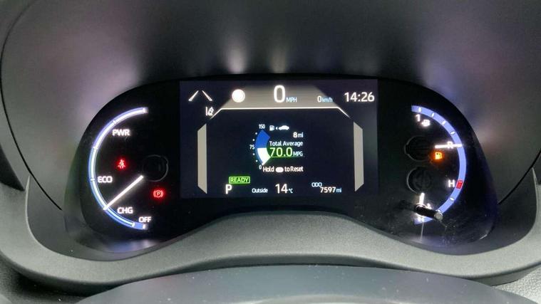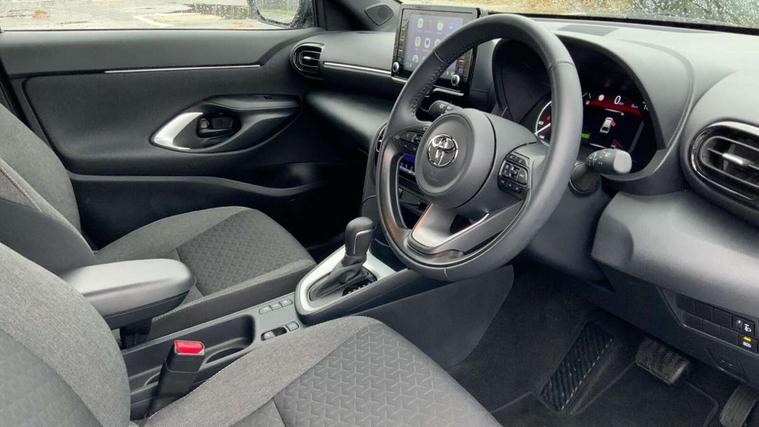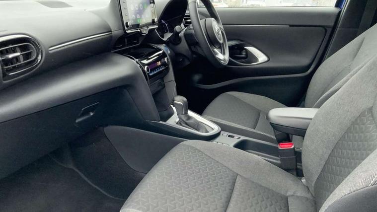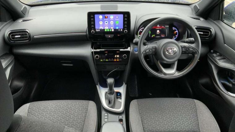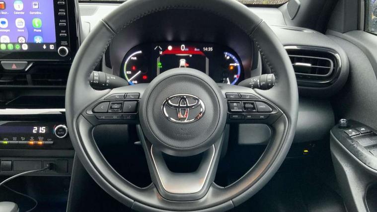 7" Multi information display screen, 8" Toyota touch 2 multimedia system with Smartphone integration with Apple CarPlay and Android auto, Adjustable speed limiter, Bluetooth connectivity, Driver attention alert system, eCall emergency system, Electric power steering, Full range intelligent adaptive cruise control, Hybrid system indicator, Key reminder warning, Lane trace assist, Multimedia, audio, telephone and voice recognition switches on steering wheel, My T Connected services, Pre-collision system enhanced with emergency steering assist, Reversing camera, Road sign assist - RSA, Steering assisted vehicle stability control, 6 speakers, DAB Digital radio, USB connection, 3rd brake light, Acoustic windscreen glass, Aluminium roof rails, Anti-jam protection on power windows, Auto high beam [AHB] with on/off switch, Automatic headlights, Black lower front grille, Black Shark-fin antenna, Black upper front grille, Black wheel arch mouldings, Body colour door handles, Body colour front bumper, Body colour rear bumper, Electric adjustable heated door mirrors, Follow me home headlights, Front and rear electric windows with auto up/down function, Front intermittent wipers, Headlight cut off reminder, Indicators integrated on door mirrors, Intermittent rear wiper, LED daytime running lights guide, LED front fog lights, LED front light guide, LED Indicators, LED projector headlights, LED rear light guide, Manual headlight levelling, Manually retractable door mirrors, Noise reduction layer on windscreen, Privacy glass, Rain sensor, Rear LED lights with sequential indicators, Rear side wing doors, Rear spoiler, Rear window defogger, 12v power outlet - front, 2x Rear coat hooks, 3 seat bench in 2nd row, 3 spoke leather steering wheel, 40:20:40 split folding rear bench seat, Adjustable speed limiter switch on steering wheel, Auto air conditioning, Black roof lining, Boot light, Central armrest, Centre console in light blue ambent lighting, Driver and front passenger personal lights, Fabric door trim, Fabric upholstery, Footwell in light blue ambient lighting, Front console box, Front cup holders, Front head restraints, Glovebox, Height adjustable driver's seat, Height adjustable front passenger seat, Hooks for luggage holding belts, ISOFIX child restraint system, Lane departure alert switch on steering control, Leather gearshift, Light blue ambient lighting on front doors, Manual telescopic and tilting steering wheel, Mirror on driver and passenger sun visor, Pollen air filter, Rear cup holders, Rear head restraints, Single front passenger seat, Soft tonneau cover, 3x3 point rear seat belts, ABS+EBD+Brake assist, Driver and passenger central airbags, Driver and passenger front airbags, Driver and passenger side airbags, Electronic parking brake, Emergency brake light system (EBS), Front seat belt reminder, Hill start assist control (HAC), Passenger airbag on/off switch, Pre-collision system with pedestrian and cyclist detection, Rear door child safety locks, Rear passenger side airbags, Rear seat belt reminder, Traction control, Tyre pressure warning system, Immobiliser, Intrusion alarm, Keyless smart entry with push button start, Power door locks, Power passenger window lock, Remote door lock, Tyre repair kit,