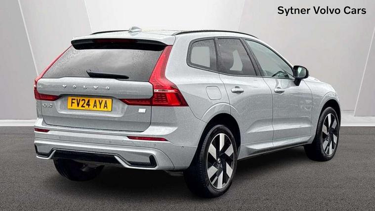 12.3" Progressive Driver Display, 360 degree surround view parking camera with side proximity sensors, 9" centre console touch screen, Adjustable steering wheel force, Apple carplay (wired), Bluetooth handsfree system, Drive mode settings, Driver alert control with lane keeping aid, Driver assistance (pilot assist and adaptive cruise control), Driver awareness - Blind spot information system with steer assist, cross traffic alert with autobrake and rear collision warning and mitigation, Emergency services call system, Front and rear park assist, Google Automotive Services, Head up display in windscreen includes road sign information, distance alert, set speed and navigation, Oncoming Lane Mitigation, Service interval indicator, Speed limiter, Speed sensitive steering, Trip computer, Volvo on call with App, Wireless/Inductive Mobile Phone Charging, 3.7 kW monophase on board charger, 7m 10amp charge cable with 3 pin plug and 6m 3 phase 16amp type 2/mode 3 charge cable, 8 speed automatic transmission with start/stop + manual change functions, Active four-C chassis + four corner adaptive damper with electronic rear air suspension, Electric rear axle drive, Recharging port located in nearside front wing, DAB Digital radio, Low speed exterior sound speaker, Premium Sound by Bowers and Wilkins, dirac live, dolby pro logic II surround sound, 14 speakers/1100W output and subwoofer, Steering wheel remote infotainment controls, Active bending headlights with adaptive shadow technology, Adaptive brake lights with high level LED brake lights, Auto dimming interior + exterior mirrors, Automatic headlight levelling system, Automatic LED Headlights + Active high beam incorporating daytime running lights, Dark tinted windows for rear side windows and cargo area, Electric adjustable/heated/auto power folding door mirrors, Electric front+rear windows, Headlight cleaning system, Heated front windscreen, High gloss black door mirrors and window surround, High gloss black front and rear bumper decoratives, High gloss black mesh front grille with high gloss black surround, Home safe and approach lighting, Integrated roof rails in high gloss black, Power glass tilt and slide panoramic sunroof with sun curtain, Puddle lights, Rain sensor with automatic windscreen wiper activation, Rear side wing doors, Rear wiper, Roof antenna, Roof spoiler, Tinted windscreen, Visible VIN plate, 12V socket in front tunnel console and cargo compartment, 2 zone electronic climate control with Clean zone air quality system and pollen filter, 3 seat bench in 2nd row, 3 Spoke tailored steering wheel with chrome trim, A-pillar parking ticket holder, Air purifier particulate matter (PM) filter, B Pillar ventilation, Bright metal luggage threshold, Centre console cupholders and storage, Charcoal floor mats, Front and rear courtesy lights, Front and rear door pocket illumination, Front cupholder illumination, Front footwell illumination, Front reading lights, Front seat cushion extensions, Glovebox compartment with illumination, Head restraints for all seats, Heated front seats, Heated steering wheel, Height/reach adjustable steering column, Illuminated luggage compartment, Illuminated vanity mirrors + ticket holder, ISOFIX attachment on outer rear seats, Load cover, Load protection net, Multi directional lumbar support, Power driver seat with memory + exterior mirrors memory, Power folding rear headrests, Power passenger seat with memory, Rear armrest with cupholder, Rear footwell and front and rear side step illumination, Rear seat concealed storage, Recharge aluminium tread plates, Single front passenger seat, Tailgate illumination and ambient door lighting, Underfloor stowage compartment, Versatile split folding rear seat - 60/40, 5 three point seatbelts, City safety with steering support with Pedestrian + cyclist + front collision warning with full auto brake and rear auto brake, Drivers knee airbag, Dual stage driver/passenger airbags, Electronic parking brake with auto hold, First aid kit, Front seats SIPS airbags, Hill descent control - Off-road drive mode, Hill start assist, IC (Inflatable Curtains) - Full Length, Passenger airbag cut-off device, Power child locks on rear doors, Run off Road Mitigation, Run off Road Protection, Seatbelt reminder and pretensioners, SIPS (Side Impact Protection System), Slippery road and hazard light alert, Stability and Traction Control with Spin control, Engine Drag Control and Corner Traction Control, Tyre pressure monitoring system, Vehicle deceleration control with Anti-lock Brake System, Electronic Brake Distribution and Emergency Brake Assist, Warning triangle, WHIPS whiplash protection system - front, Anti-theft alarm including immobiliser/volume sensor + level sensor, Care key with user defined top speed, Key integrated remote control central locking + fuel flap with deadlocking system and auto open/close power windows, Keyless Drive (includes Keyless Entry and Keyless Start) with Handsfree Tailgate Opening/Closing, Locking wheel nuts, Private locking for tailgate, Tailored instrument panel with contrast stitching, Tyre sealant kit + 12v compressor,
