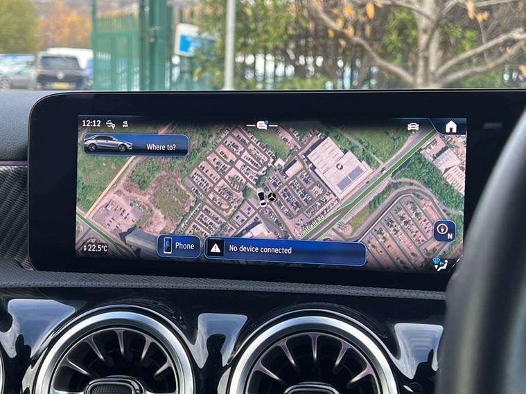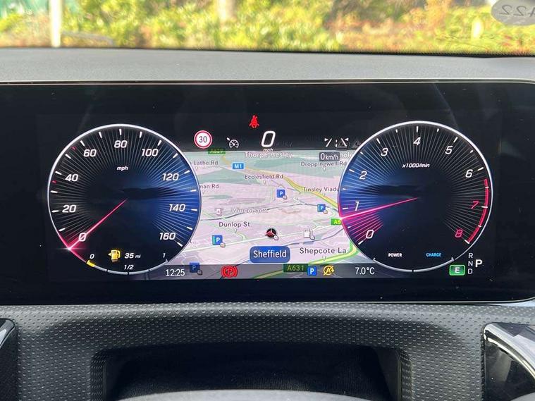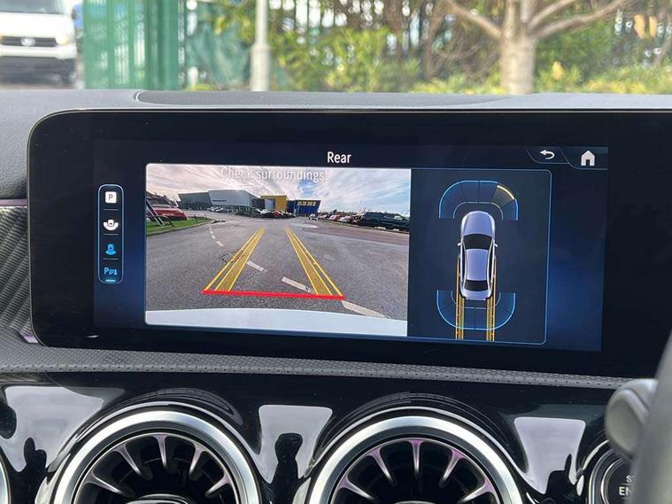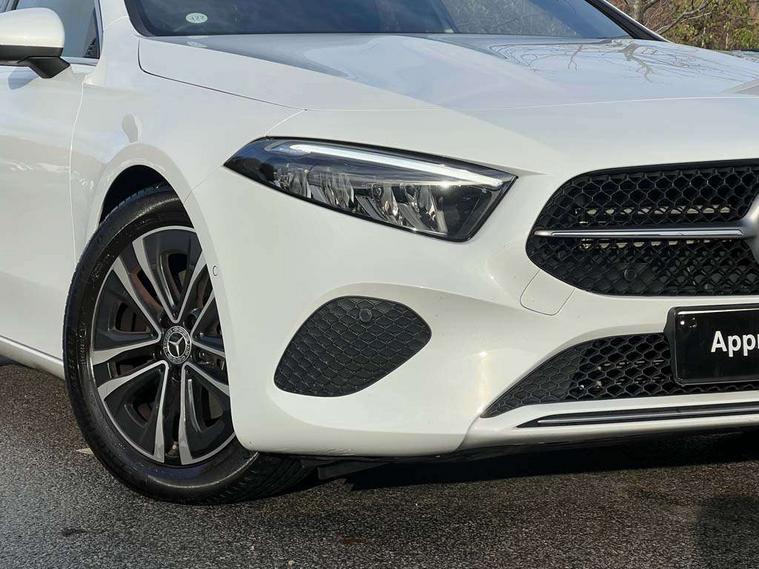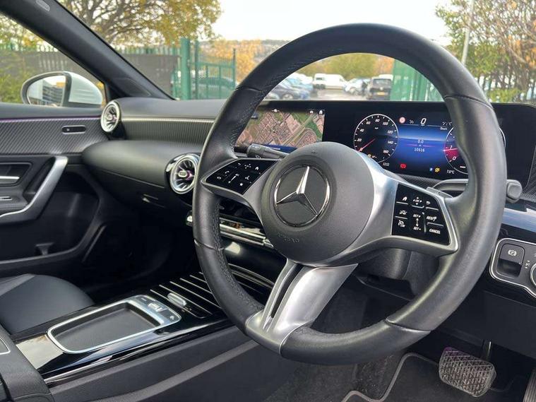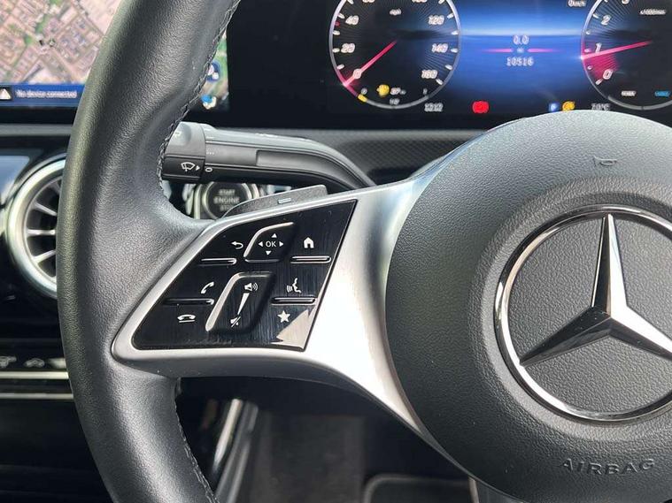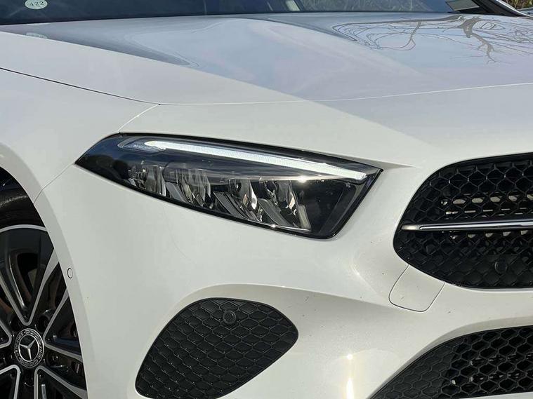 10.25 inch touchscreen central media display, 10.25" Digital instrument cluster display screen, Attention assist, Brake pad wear indicator warning light, Car wash mode, Cruise control + speed limiter, Direct steering, Direction indicators with lane change function, Dual bluetooth interfaces, DYNAMIC SELECT with a choice of driving modes (ECO, Comfort, Sport and Individual), ECO start/stop function, Engine start/stop button, Fluid level warning indicator for fuel, oil, coolant and washer fluid, Fluorescent jacket for driver, Hard-disk navigation, Hey Mercedes Voice activation, Lamp failure indicator, Lane keeping system, Mercedes me connect including emergency call system, accident recovery, breakdown management and maintenance, Mercedes me remote services, Outside temperature gauge, Owners manual in English, Pre-installation of private car share, Preinstallation for Mercedes Benz link, Remote boot closing, Service indicator (ASSYST), Smartphone integration with Apple CarPlay and Android auto, Speed limit assist, Speed sensitive power steering, Trip computer in multifunction display with current consumption indicator, Wireless charging, Lowered comfort suspension, DAB Digital radio, MBUX multimedia system, Mercedes Benz sound system (100 W) with 6 speakers, 4 Electric Front and Rear windows, Adaptive brake lights, Body colour bumpers, Body colour door handles with chrome inserts, Body colour side skirt, Body coloured door mirrors, Chrome beltline strips, Diamond radiator grille with pins in fine star pattern, Electric adjustable and heated door mirrors with integrated LED side indicators, Exhaust system with 2 visible tailpipe trim elements and rear apron, Headlamp assist automatic headlamp activation, Heat insulating dark tinted rear and rear side windows, Heated glass rear windscreen + timer control, LED High Performance headlamps including integral LED daytime running lamps and adaptive highbeam assist, LED tail lamp, Privacy glass, Radio aerial, Rain sensing windscreen wipers with two sensitivity settings, Rear boot, Rear fog lights, Rear side wing doors, Third brake light featuring LED technology, Window line trim strip in chrome, 3 seat bench in 2nd row, 3 spoke ARTICO man-made leather multifunction sports steering wheel, 4 way lumbar support, 40:20:40 split folding rear seats, Air conditioning - One zone thermatic automatic climate control with automatically controlled air distribution, Artico man-made leather upholstery, Automatic child seat recognition sensor, Black air vents with surround in silver chrome, Black roof lining, Front centre armrest with stowage, Front comfort seats with adjustable head restraints, Front door sills with Mercedes Benz lettering, Front seat backs luggage nets, Gearshift paddles on steering wheel, Heated front seats, Height/reach adjustable steering column, Interior lighting - 64 colour Ambient lighting, Interior mirror with reading lamps in black and frameless, ISOFIX and top tether child seat fixing points in two outer rear seats, Rear armrest with 2 cupholders, Rear head restraints, Seat occupancy sensor for front passenger seat, Single front passenger seat, Stowage compartment in centre console with retractable cover, Sunvisors with illuminated vanity mirrors, Twin front cupholders, Velour floor mats, Keyless go comfort pack - A Class, Light and sight pack - A Class, Mirror package - A Class, Parking pack - A Class, Seat comfort pack - A Class, USB pack plus - A Class, 3 rear 3 point seatbelts, ABS with Brake Assist, Active bonnet, Active brake assist includes forward collision warning system with autonomous braking, Adaptive brake assist with hold function and hill start assist, Black seatbelts, Bonnet with power domes, Childproof locks manually operated for rear doors and electrically operated for rear power windows, Crash responsive emergency lighting, Driver and passenger head and side airbags, Drivers knee airbag, Dual stage driver/passenger airbags, Electronic parking brake, ESP curve dynamic assist, ESP with ASR, Front and rear seatbelt reminder, Tyre pressure monitoring system, Warning triangle and first aid kit, Window airbags, Alarm system/interior protection/immobiliser, Guard 360 degree vehicle protection, Remote central locking and crash sensor with emergency opening function, Dark carbon fibre interior trim, 17" 5 spoke light alloy wheels, aerodynamically optimised, painted in black with high sheen finish, Summer tyres, Tirefit sealant kit,