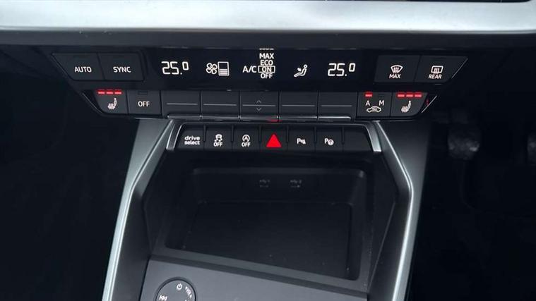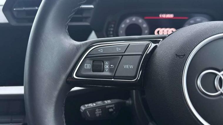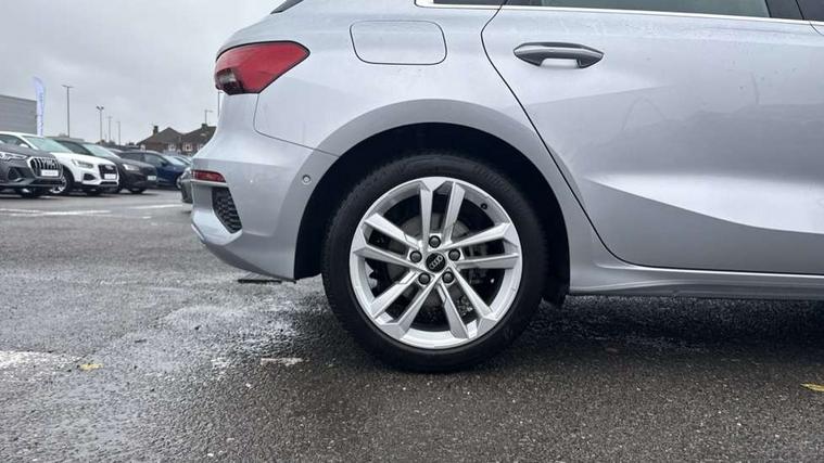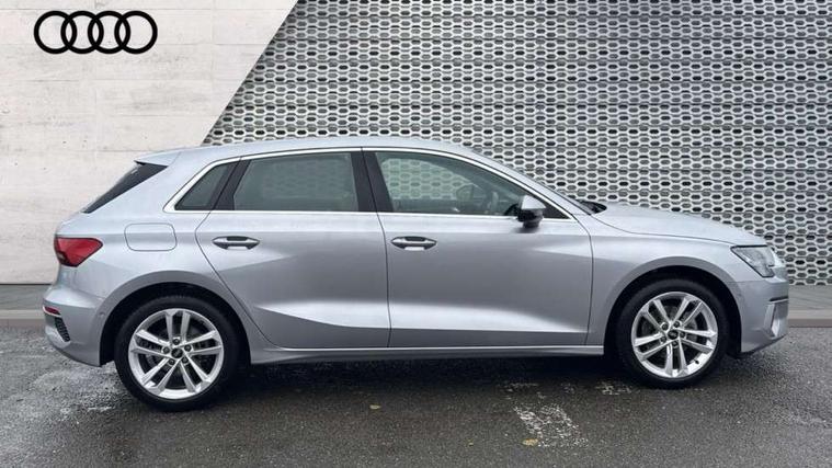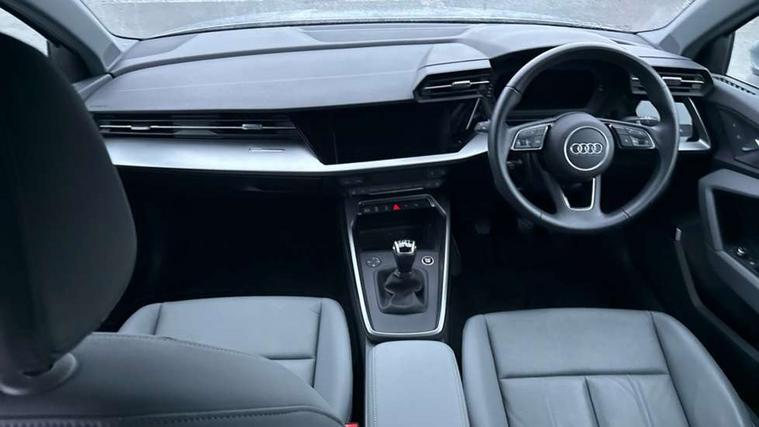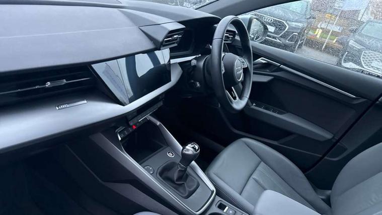 Audi connect emergency call and service, Audi drive select (Auto, Comfort, Dynamic, Efficiency and Individual), Audi smartphone interface, Audi Virtual Cockpit - 10.25" digital and colour instrument cluster, Automatic start/stop system with recuperation, Bluetooth interface, Collision avoidance assistant, Electromechanical power speed sensitive steering, Lane departure warning system, MMI Navigation Plus with high resolution 10.1" colour touch screen display, Service indicator, Trip computer, Voice control system with natural language interaction, Standard suspension, 2xUSB-C connection with data and charging functions, 6 passive loudspeakers, DAB Digital radio, 3rd brake light, Acoustic glass windscreen, Aluminium window trim, Auto dimming frameless rear view mirror, Body colour exterior mirrors, Body colour roof spoiler, Electrically adjustable/heated/folding/auto dimming door mirrors with integrated LED indications + kerb view function for passenger side, Front electric windows, LED daytime running lights, LED headlights and halogen rear lights, Light and rain sensors, Rear electric windows, Rear side wing doors, Rear window, rear door windows and rear side windows in clear glass, Rear wiper, 12V socket and storage compartment in front centre console, 3 seat bench in 2nd row, 40/20/40 split folding rear seat bench with cupholder, Dual zone electronic climate control, Front and rear centre armrest, Front and rear headrests, Front door sill trims with aluminium inlay, Front/rear floor mats, Height and reach adjustable steering wheel, Interior lighting - Front and rear roof module including reading lights, glove compartment light and right hand side, Luggage compartment floor covering, Manual boot compartment lid, Manually adjustable front seats, Seat side bolsters, Single front passenger seat, Steel grey cloth headlining, Twin leather upholstery, Aluminium interior elements pack - A3 Sportback, Sport styling pack - A3 Sportback, 3x3 point rear seat belts, Driver and front passenger airbag with passenger airbag deactivation, Electronic Stabilisation Control (ESC) including ABS, ASR and EDL, First aid kit with warning triangle and 2 safety vests, Front side airbags with head airbags and interaction airbag, Pre-sense front with pedestrian and cyclist detection, Seatbelt monitoring, Tyre pressure loss indicator, Anti theft alarm, Anti-theft wheel bolts, Immobiliser, Manual child locks, Remote control central locking, Inlays with silk effect paint in platinum grey,