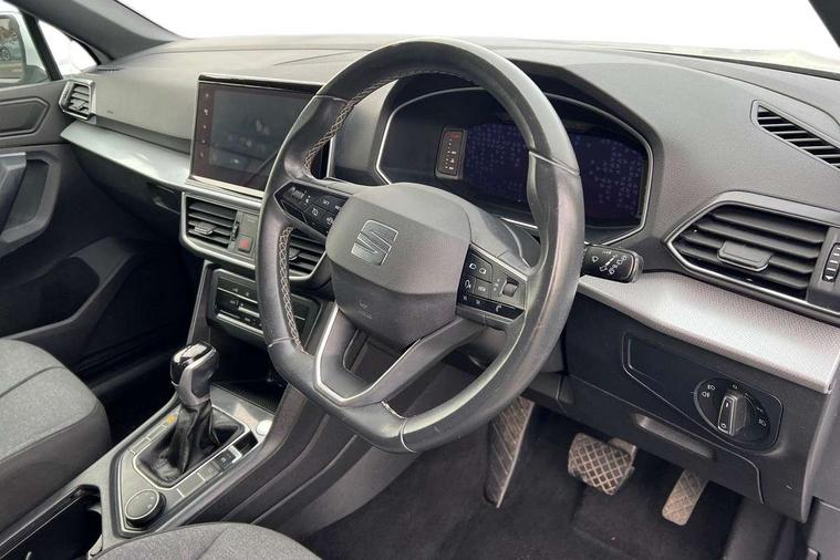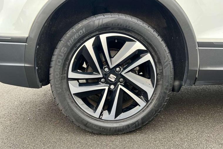 'Lights On' Reminder warning buzzer, 10.25" digital cockpit, Bluetooth audio streaming with handsfree system, Cruise control with speed limiter, Digital clock, Digital cockpit, e-Call (emergency call), Front assist city emergency braking and pedestrian protection, Full Link Wireless Smartphone Integration with Mirror Link, Apple Car Play, Lane assist, Low fuel warning light, Outside temperature gauge, Power assist steering, Rear parking sensor, RPM counter, Seat connect with safety, service, remote and online, SEAT Drive profile-4 different modes, progressive steering, 4Drive versions with off-road/snow, steering response, throttle response, gear shifts mode, Trip computer, Wash water level indicator, Comfort suspension, XDS electronic differential lock, Navigation system with 9.2" colour touchscreen with proximity sensor, 3D Map display, DAB, AM/FM Radio, 3 USB (type C), Aux-in, 8 speakers, SD card, Steering wheel mounted audio/telephone controls, USB (type C) cable for Apple and Android compatibility, Auto dimming rear view mirror, Auto headlights with automatic coming and leaving home function, Automatic headlight adjustment, Black bumpers, Black roof rails, Black window trims, Body colour door mirrors and handles, Chrome front grille frame, Coast to coast lighting, Dark tinted rear windows, Electric front/rear windows, Electrically adjustable and folding door mirrors, Exterior black mouldings, Front halogen fog lights with cornering function, Fuel door linked to central locking, Full LED headlights with LED rear lights, Heated door mirrors, Hidden exhaust pipe, LED daytime running lights, LED licence plate lighting, Rain sensing wipers, Rear fog lights, Rear wash/wipe, Welcome lighting, 3 zone climate control, Ambient spot lighting and front footwell illumination, Black interior roof, Centre armrest in front with air outlet in rear, Comfort front seats, Driver and passenger sunvisor with covered and illuminated mirror, Driver/passenger lumbar adjustment, Easy fold rear seat system - second and third row, Folding table on front seat backrests, Forward and backward adjustable seats 2nd row, Four cargo rings in the boot, Front cupholders, Front seat back storage pockets, Gear shift indicator, Height adjustable driver's seat, Height adjustable front headrests, Height adjustable passenger seat, Illuminated boot, Illuminated glovebox, Instrument lighting with brightness control, ISOFIX points in outer 2nd row seats and front passenger seat with top tether anchorage points, Leather gear knob, Leather wrapped multifunction steering wheel, Luggage compartment floor with split function, Olot cloth upholstery, Rear armrest and easy back seat release mechanism from boot, Rear head restraints, Sliding boot cover, Storage compartment in roof console for sunglasses, Storage draw under front passenger seat, Three 12V sockets, White ambient lighting in front and rear door panels + LED lights in interior door handles, 3x3 point rear seatbelts, ABS, Active front head restraints, Driver/front passenger airbag, Drivers knee airbag, Electronic parking brake with auto hold, Electronic stability control, Front passenger airbag deactivation, Front side airbags, Hill hold control, Seatbelt reminders for all seats, Tiredness recognition system, Traction control, Two curtain airbags, Tyre pressure monitoring system, Alarm, Central locking, Keyless entry and go, Locking wheel bolts, Power locking and remote control with two foldable keys and opening boot selector, Chrome interior detailing - door and dashboard decorative inserts, 18" Performance machined alloy wheels 37/1, Tool kit,