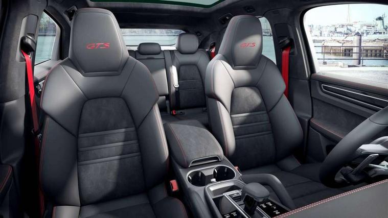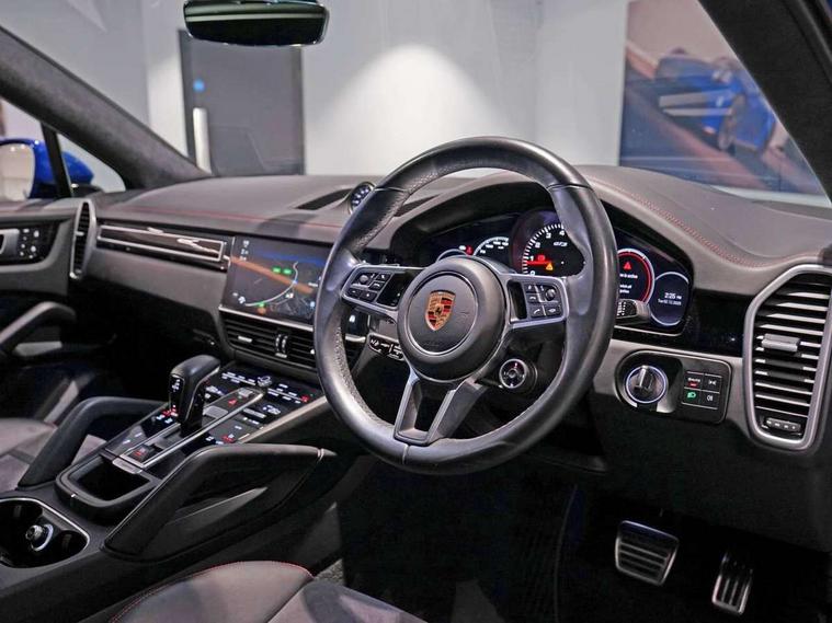 Android Auto, Apple car play, Auto start/stop function and coasting, Brake pad wear indicator, Central analogue rev counter with black dial face and GTS logo, Driver personalisation for climate, audio and communication, assistance systems and other customisable car systems, E-call, High resolution 12.3-inch touchscreen display in full HD resolution, Individual mode for individual selection of vehicle drive settings, Instrument cluster with two high-resolution displays, Mobile phone preparation with Bluetooth interface for telephone and music, Porsche Communication Management (PCM) including online navigation module, mobile phone preparation, audio interfaces and voice control system, Power steering plus, Power tailgate, Vehicle electrical system recuperation, Warn and brake assist including pedestrian protection, 8 Speed Tiptronic S transmission with auto Start-Stop and coasting function, 90 litre fuel tank, Adaptive cylinder control, Aluminium cylinder heads and engine block, Direct fuel injection (DFI) with central injector position, Front and rear aluminium multi link axles, Gasoline particulate filter, Panoramic roof with fixed glass panel, Porsche Torque Vectoring Plus (PTV Plus), Sport mode, Turbocharger with twin scroll turbine, VarioCam, Water cooled with thermal management, AM radio, Digital radio, Two USB charge ports in rear compartment, Two USB charging and connectivity ports in the front centre console storage compartment, Active air intake flaps, Automatic headlight activation including welcome home functionality, Bumper system with high strength cross members and two deformation elements + Two receptacles with screw threads towing lug + onboard tool kit, Door lower cladding trim in exterior colour, Electric windows + anti trap protection + one touch open/close drivers side, Electrically adjustable, folding and heated exterior mirrors, aspherical on drivers side including courtesy lights, Exclusive tinted LED tail lights with three dimensional lighting graphic including light strip and integrated four point brake lights, Extensive aerodynamic underbody protection, Exterior colour door side trim, Four point signature LED daytime running lights, Front end with integrated air intakes and airblades for the side air intakes, Front light modules including position lights and direction indicators in LED light guide technology, Front windscreen wipers with two speeds, intermittent wipe and rain sensor, Gloss black side window trims, Heated rear window with automatic switch off, LED High level third brake light integrated into roof spoiler, Porsche active aerodynamics (PAA) with adaptive roof spoiler, Porsche logo and cayenne GTS model designation on tailgate in matt black, Porsche logo integrated into rear taillight strip, PORSCHE' lettering integrated in tailgate strip, Preparation for the roof transport system, Rear apron lower cladding painted in exterior colour, Rear side wing doors, Rear window wiper with intermittent function and washer jet, 2 seat bench in 2nd row, Alcantara roof lining, B-pillar clothes hooks on driver and passenger's side, Charge air cooling, Double sun visors for driver and front passenger, Driver/passenger sunvisors and vanity mirrors, Elevated centre console with handles, Front and rear bottle holders in door panels, Front head restraints, GTS logo on door sills front, left and right in black, GTS logo on front door lower trim in black, GTS model logo on headrests front and rear in conjuction with GTS sports seat interior, GTS sports design in bench rear seat with 2 comfort outer seat, third centre seat + 2 way headrest on outer seat, manual fore/aft, backrest angle adj, Height adjustable rear headrests, Isofix fastening system for child seats on outer rear seats, LED interior light with switchoff delay function, footwell + glove compartment light, ashtray + ignition lock illumination, front + rear reading light, Manual height adjust for driver and front passenger seat belt, Particle/pollen filter with active carbon filter, Rear seat split folding design 40:20:40, Fold out centre armrest with integrated cup holder, manual fore/after adjust and backrest angle adjust, Rigid integrated and removable parcel shelf, Sideskirts in black plastic, Single front passenger seat, Stainless steel pedals, Storage compartments - Cooled glove compartment, front centre console, door and map pockets on front seat backrests + side luggage compartment, Three 12V power sockets - front below the glove compartment, centre console and at side of luggage compartment, Two integrated cup holders in front and rear with variable diameter, Sport design package - Cayenne, 3 point automatic seatbelts with front and outer rear seats pretensioners and front force limiter, 4 piston aluminium monobloc fixed caliper brakes at rear and internally vented brake discs, 6-piston aluminium monobloc fixed caliper brakes at front, internally vented brake discs, Active bonnet, Auto hold function, Brake discs with diameter 390mm at front 358mm at rear, Curtain airbags along roof frame and side glazing from the A-pillar to the C-pillar, Distance warning, Electronic parking brake, Front passenger airbag deactivation function for front seat mounting of child seat, Front side airbags integrated into seat, Full size driver and front passenger airbags, Knee driver and passenger airbags, Manual child lock in rear doors, Mounting points on passenger seat for ISOFIX child seat mounting system, Multi-Collision braking, Porsche hill control (PHC), PTM Porsche Traction Management active all-wheel drive with an electronically variable, map-controlled multi-plate clutch, ABD and anti-slip regulation, Rollover detection for activation of curtain airbags and seat belt pretensioners, Seat belt warning system for driver and front passenger and rear seat system, Side impact protection in doors, Tyre pressure monitoring system, Vehicle stability system, Porsche stability management (PSM) including ABS, ASR, ABD, MSR and