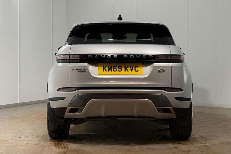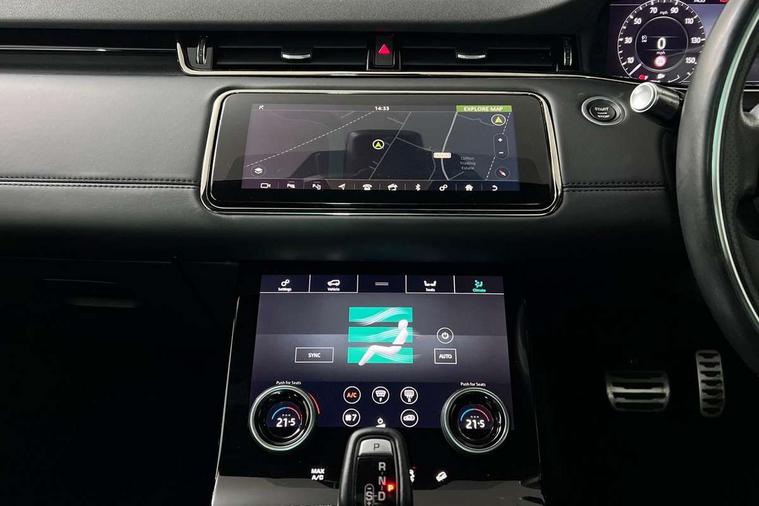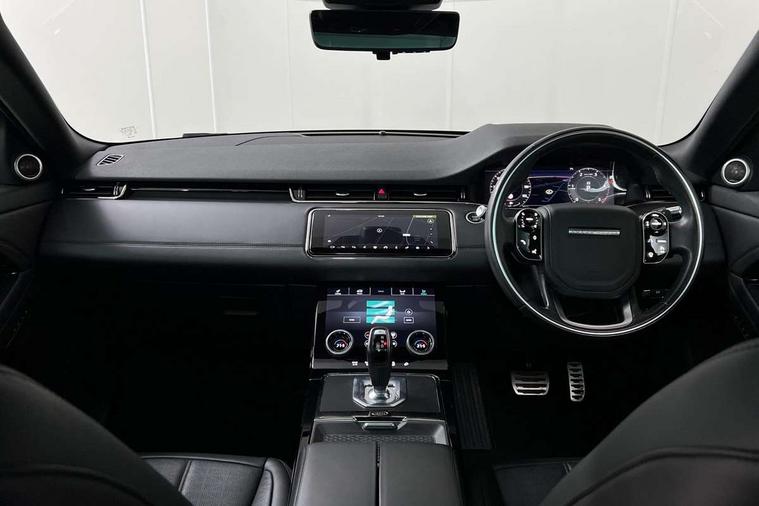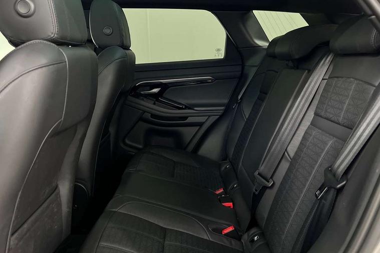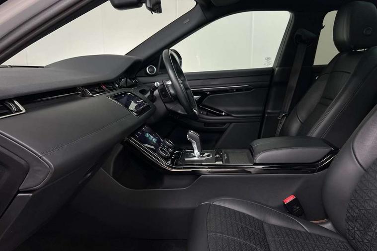 360 degree parking aid, Adaptive cruise control, Android Auto, Apple car play, Blind spot assist, Bluetooth connectivity, Brake pad wear indicator warning light, Clear exit monitor, Driver condition monitor, Duo touch pro, Electronic power assisted steering (EPAS), InControl remote, Interactive Driver display instrument cluster, Land Rover InControl apps, Lane keep assist, Navigation pro system, Park assist - Parallel, perpendicular and parking exit, Powered gesture tailgate/boot lid, Pro services and wifi hotspot, Push button starter, Rear traffic monitor, Smart settings, Traffic sign recognition with adaptive speed limiter, Voice control system, All terrain progress control, Efficient Driveline, Passive suspension, Terrain Response 2 Auto, Digital Audio Broadcast radio-DAB, Steering wheel mounted controls, Automatic headlight levelling, ClearSight interior rear view mirror, Electric windows with one touch open/close and anti trap, Evoque and R-Dynamic badge, Flush deployable exterior door handles, Heated rear window with timer, Heated washer jets, Heated windscreen, Power fold, auto-dimming, heated door mirrors with memory and approach lights, Rain sensing windscreen wipers, Rear fog lights, Shadow atlas bonnet and tailgate script, Tailgate spoiler, 40:20:40 split folding rear seats, Black gearshift paddles, Bright metal pedals, Isofix system on outer rear seats, Overhead lighting console, Overhead stowage for sunglasses, Passive front head restraints, Rear air vents, Rear centre headrest, Sunvisors with illuminated vanity mirrors, Twin front cupholders with cover, Twin sliding front centre armrest, Two zone climate control, Anti-lock braking system (ABS), Customer configurable autolock, DSC - Dynamic Stability Control, Electronic brake force distribution, Electronic parking brake, Electronic traction control, Front and rear seatbelt reminder, High speed emergency braking, Hill descent control, Hill launch assist, Low traction launch, Power operated child locks, Roll stability control, Six airbags - Driver and passenger airbags/driver knee airbag/front side airbag and curtain airbags, Torque vectoring brake, Tyre pressure monitoring system, Alarm, Immobiliser, Intrusion sensor, Keyless entry, Locking wheel nuts,