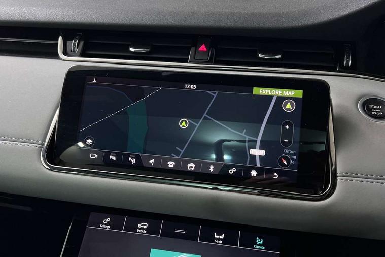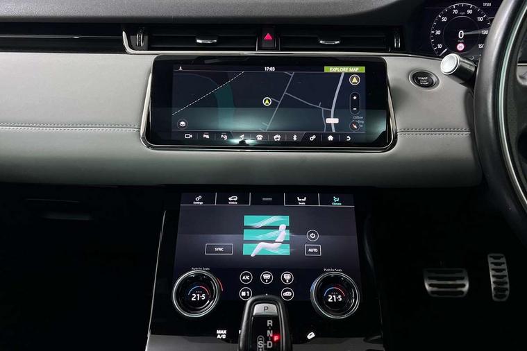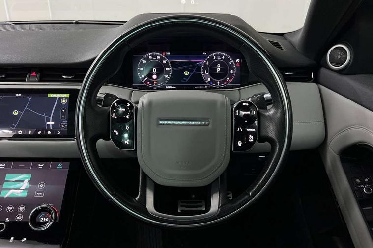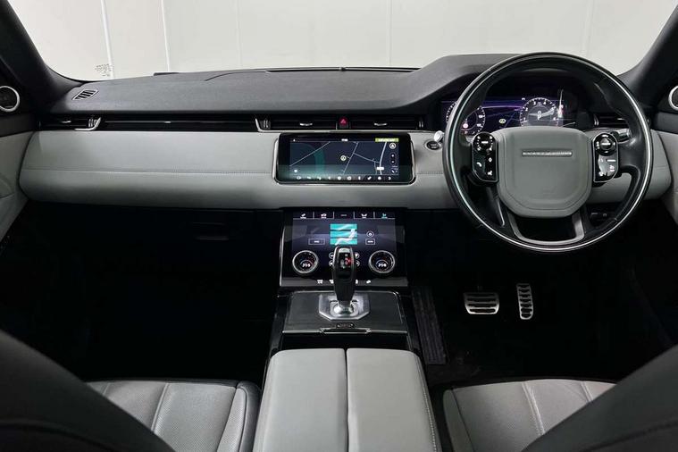 360 degree parking aid, Adaptive cruise control, Android Auto, Apple car play, Blind spot assist, Bluetooth connectivity, Brake pad wear indicator warning light, Clear exit monitor, Driver condition monitor, Duo touch pro, Electronic power assisted steering (EPAS), Head up Display, InControl remote, Interactive Driver display instrument cluster, Land Rover InControl apps, Lane keep assist, Navigation pro system, Park assist - Parallel, perpendicular and parking exit, Powered tailgate/boot lid, Pro services and wifi hotspot, Push button starter, Rear traffic monitor, Rear view camera, Smart settings, Traffic sign recognition with adaptive speed limiter, Voice control system, All terrain progress control, Efficient Driveline, Large fuel tank, Passive suspension, Terrain Response 2 Auto, Digital Audio Broadcast radio-DAB, Meridian sound system with 380W subwoofer and 10 speakers, Steering wheel mounted controls, Automatic headlight levelling, ClearSight interior rear view mirror, Electric windows with one touch open/close and anti trap, Evoque and R-Dynamic badge, Fixed panoramic sunroof with powered sunblind, Flush deployable exterior door handles, Front fog lights, Headlight power wash, Heated rear window with timer, Heated washer jets, Heated windscreen, Illuminated metal treadplates in loadspace and row 1 with First Edition script and non illuminated metal in row 2, Matrix LED headlights with signature DRL, intelligent high beam assist, signature Hi-Line tail lights and animated directional indicators, Metallic paint, Narvik black contrast roof with exterior mirror caps, No badge - Removes powertrain badge and specification pack badge, Power fold, auto-dimming, heated door mirrors with memory and approach lights, Privacy glass, Rain sensing windscreen wipers, Rear fog lights, Tailgate spoiler, 14 way electric heated front seats with memory, fore/aft, recline/height/tilt, 4way lumbar + manual headrest adj with rear centre armrest, 40:20:40 split folding rear seats, Black gearshift paddles, Bright metal pedals, Configurable Ambient interior lighting, Ebony morzine headlining, Electrically adjustable steering column, Extended leather upgrade, First Edition carpet mats, Heated steering wheel, Isofix system on outer rear seats, Overhead lighting console, Overhead stowage for sunglasses, Passive front head restraints, Perforated Duo-tone grained leather upholstery, Perforated soft grain leather steering wheel with Atlas bezel, Rear air vents, Rear centre headrest, Sunvisors with illuminated vanity mirrors, Twin front cupholders with cover, Twin sliding front centre armrest, Two zone climate control, Power socket pack 1 - Evoque, Anti-lock braking system (ABS), Customer configurable autolock, DSC - Dynamic Stability Control, Electronic brake force distribution, Electronic parking brake, Electronic traction control, Front and rear seatbelt reminder, High speed emergency braking, Hill descent control, Hill launch assist, Low traction launch, Power operated child locks, Roll stability control, Six airbags - Driver and passenger airbags/driver knee airbag/front side airbag and curtain airbags, Torque vectoring brake, Tyre pressure monitoring system, Alarm, Immobiliser, Intrusion sensor, Keyless entry, Locking wheel nuts, Gradated linear dark aluminium trim finisher with First Edition script, All season tyres, Tyre repair kit,