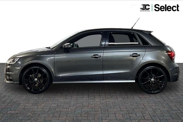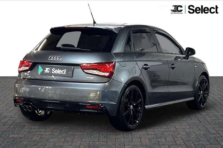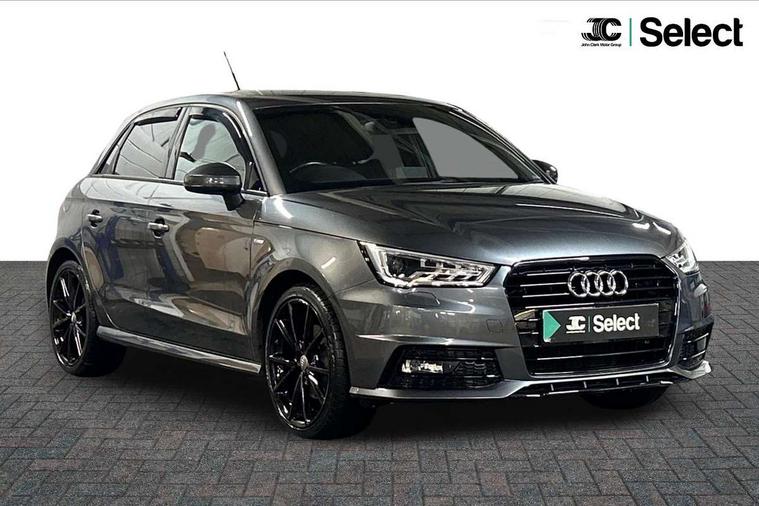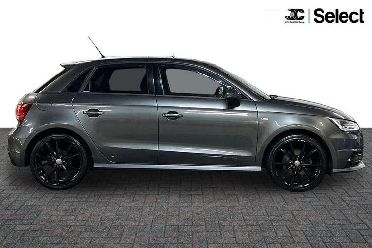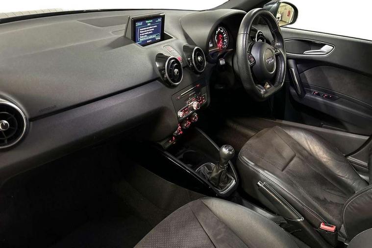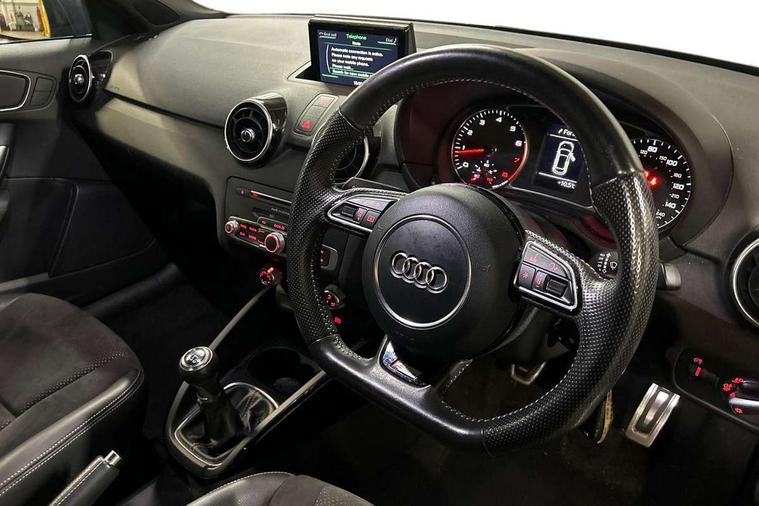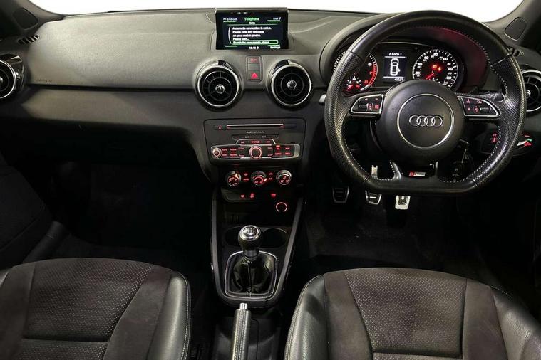Audi drive select, Electro-mechanical PAS, Low washer fluid indicator, Service interval indicator, Voice control system, Additional SD card reader, Audi music interface, Bluetooth audio streaming, DAB Digital radio, Adaptive brake lights, Body coloured bumpers, Body coloured door mirrors, Electric adjustable door mirrors, Electric front windows, Electric rear windows, Front fog lights, Heat insulating glass, Heated door mirrors, Heated rear windscreen, Privacy glass, Rain and light sensors, Rear diffuser, Rear wiper, Roof spoiler, S Line body styling, Xenon plus headlights including automatic headlights, LED daytime running lights, LED rear lights, dynamic range control and headlight washers, 12V Accessory socket in centre console, 3 spoke flat bottomed multi-function leather steering wheel, Adjustable rear head restraints, Black cloth headlining, Cupholders in centre console, Door sills trims with aluminium inlays, Electronic climate control (ECC), Front floor mats, Front head restraints, Height adjustable front seats, Illuminated glovebox, Isofix attachments on outer rear seats, Jack and tool kit, Leather handbrake, Lumbar adjustment for front seats, Rake/reach adjustable steering wheel, Split folding rear seats, Stainless steel pedals, High-gloss black styling pack - A1, ABS/EBD, Brake assist function, Driver and passenger side airbags, Driver/Front Passenger airbags, EDL, ESP with ASR, First aid kit, Front and rear seatbelt reminder, Front passenger airbag deactivation, Head airbags, Height adjustable front seatbelts, Tyre pressure monitor, Warning triangle, Locking wheel bolts, Remote control central locking, Thatcham category 1 alarm + immobiliser, Aluminium trim, High gloss black air vent sleeves, Tyre repair kit,