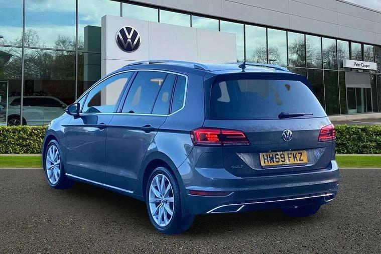 'Lights On' Reminder warning buzzer, ACC - Adaptive cruise control with front assist, forward collision warning, distance monitoring, city emergency brake and speed limiter, App-Connect, Bluetooth Telephone preparation, Brake pad wear indicator warning light, Drive mode selector, Driver alert system, Driver profile selection, Exterior temperature gauge, Misfuelling protection device, PAS - speed related, Push tank flap, Rev counter, Speedometer, electronic odometer and fuel gauge, Stop/start system, Trip and service interval display, Warning buzzer and light for front seatbelts unfastened, White instrument cluster lighting, Battery regeneration during braking, Diesel particulate filter, Lowered sports suspension, XDS electronic differential lock, Composition media system, DAB Digital radio, Dynamic navigation based on TMC+, Personalisation 1.1 profile for media, SD card slot, SMS functionality - read, compose and send SMS messages using touch-screen display, USB and auxiliary socket, Auto dimming rear view mirror, Automatic coming/leaving home lighting function, Black front air intake and radiator grilles with chrome inserts and roundel surround, Body colour bumpers, Body colour door handles, Body colour door mirrors with integral indicators, Chrome louvres in grille, Chrome side window surrounds, Chrome trimmed front air intake surrounds, Dusk sensor + auto driving lights, Electric front windows, Electric rear windows, Electrically adjustable and heated door mirrors, Front fog lights with static cornering function, Galvanised body, Heat insulated tinted glass 65% light absorbing from B pillar back, Heated rear windscreen, Integral rear window aerial, LED 3rd brake lamp, LED daytime running lights, LED rear lights, Rain sensor, Range adjustable headlights, Rear diffuser, Rear roof spoiler, Rear window antenna, Rear windscreen washer and wiper with interval delay, Silver roof rails, Twin exhaust tailpipe, Windscreen wipers/ intermittent wipe + 4 position delay, 12v socket in front centre armrest storage compartment, 12V socket in luggage compartment, 2 LED front and rear reading lights, 3 rear headrests, 3 spoke steering wheel, 60/40 split folding rear seat, Ambient lighting, Auto fold down lever in rear seat backrest, Centre console storage box, Chrome-plated electric mirror adjustment switch surround, Chrome-plated electric window button surround, Cooled glovebox, Courtesy light delay, Dashboard storage compartments, Driver and front passenger under seat drawer, Driver/front passenger seat height adjustment, Dust/pollen filter, Folding tables on front seatbacks, Front + rear carpet mats, Front centre armrest with storage box and two rear air vents, Front door armrest light, Front footwell illumination, Front seat back storage pockets, Grab handles x 2 with integrated coat hooks, Height/reach adjust steering wheel, Interior lighting with switch off delay and contact switches on all doors, Isofix preparation for 2 rear child seats, Load lashing points x 4 in luggage compartment, Load through provision, Luggage compartment cover, Luggage compartment lighting, Overhead storage box, Pearl grey headlining, Rear centre armrest with 2 cup holders, forms a table when folded down, Storage box in luggage compartment, Storage boxes under front seats, Storage compartments in doors, Sunvisors with illuminated vanity mirrors, Variable boot floor, height adjustable and removable, White adjustable panel illumination, Mirror pack - Golf, 3 point height adj front seatbelts + pretensioners, 3 rear 3 point seatbelts, ABS, Active pedestrian safety system, Automatic post collision braking, Child locks on rear doors, Door open warning reflectors, Driver/Front Passenger airbags, Driver/Passenger whiplash optimised head restraints, Drivers knee airbag, Electronic parking brake with auto hold, Electronic tyre pressure monitoring, ESP with EDL + ASR, Front and rear curtain airbags, Front passenger airbag deactivation, Front side airbags, Hydraulic Brake Assist (HBA), Pre crash system, Predictive pedestrian protection, Ventilated front disc brakes, Alarm with interior protection, Electronic engine immobiliser, Remote central locking with 2 remote folding keys, Chrome-plated light switch surround, Decor strip on dashboard and door side trim, Piano black centre console, Tumbler decorative inserts, Steel space saver spare wheel,