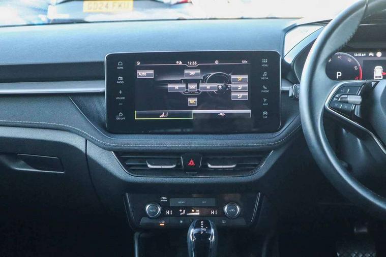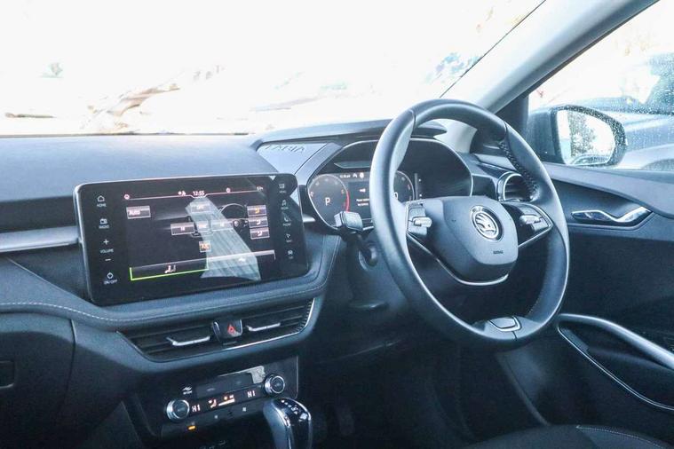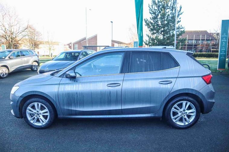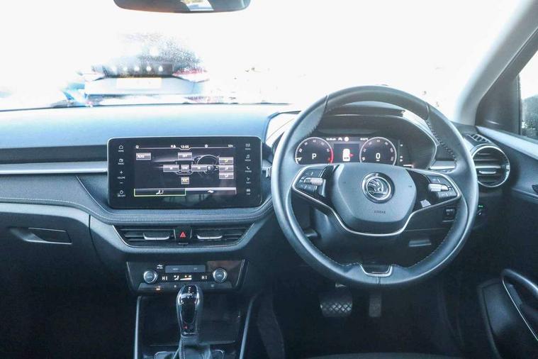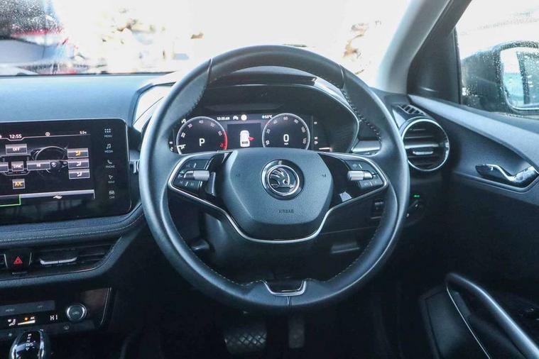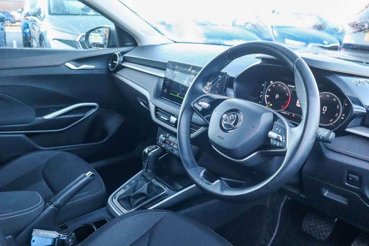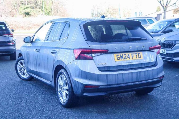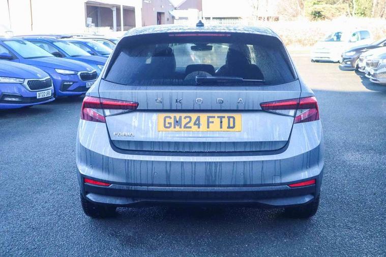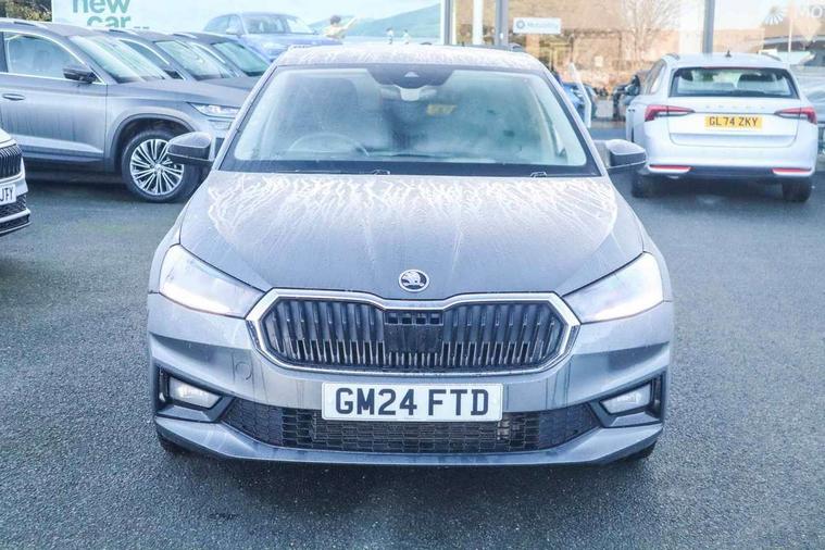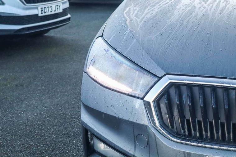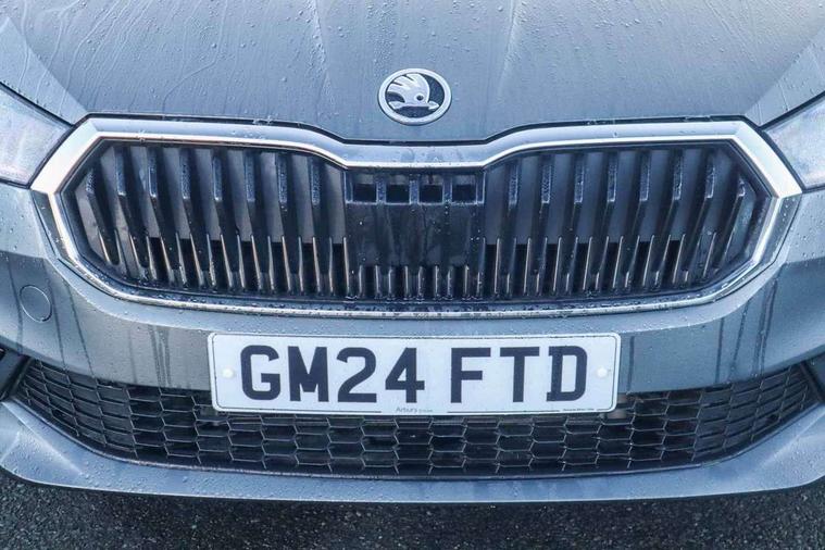Advanced driver attention and drowsiness monitor, Bluetooth connection, Electromechanical power steering, Exterior temperature gauge, Service interval indicator, Traffic sign recognition, Virtual cockpit with 10.25" colour display, Wireless SmartLink for Apple CarPlay and Android Auto, 6 Speakers (4 in front and 2 in rear), 9.2" colour display skoda navigation system with voice control and web radio, Auxiliary socket for external MP3 player, DAB digital radio reception, Auto dimming rear view mirror, Body colour door mirrors, Body coloured bumpers, Chrome window surround, Door mirror integrated indicators, Front and rear electric windows, Front window wiper intermittent control, Headlight range control - Automatic, Ice scraper in fuel cap, LED daytime running lights with coming and leaving home feature, LED rear lights, Privacy glass, Rear LED fog light, Rear side wing doors, Rear window wiper with washing nozzles, Roof mounted spoiler, SKODA tailgate lettering in chrome, Third brake light, 2 reading lights in front and 2 reading lights in rear, 3 rear headrests, Backrest split and folding, Central console with removable cup holder and storage box, Chrome handbrake release button, Comfort seats, Door sills with fabia badging, Dual zone air conditioning with climatronic electronic control, Fabric upholstery, Front centre armrest, Gearshift knob/handle in leather, Hand brake lever handle in leather, Height adjustable front headrests, Height adjustable front seats, Height adjustable steering wheel, ISOFIX and TopTether anchorage points to the outer rear seats, ISOFIX and TopTether on the front passenger seat, Luggage compartment lighting, Manually adjustable lumbar support in front seats, Metallic grey interior door handles, Pollen filter, Rear seat bench unsplit, Single front passenger seat, Storm grey headlining, Sun visors with mirror and airbag label on passenger side, Textile floor mats, Ticket holder, Umbrella in drivers door, 3-point height adjustable front seats belts with pretensioner and force limiter, Automatic warning lights in case of crash, Driver and passengers airbag with switch off function, e-Call+, ESC including ABS, MSR, ASR, EDS, HBA and XDS, Front and rear seat belt warning, FRONT ASSIST (AEB City and AEB Inter Urban), Front side airbags, Head airbags, Hill hold control, One tone horn, Pedestrian protection, Three rear 3-points safety seat belts with pretensioner and force limiter including stop function for outer rear seat belts, Tyre pressure monitoring system, Anti-theft alarm system including immobiliser, interior monitoring, backup horn, and towing protection, Central locking with radio remote control, interior controls, SAFE function and 2 foldable keys, Chrome edged air vents, Metallic grey central console cover, Metallic grey upper decorative trim, Satin black door and side trim panel in front, Textile microsuede grey lower decorative trim with art grey stitching, Anti-theft wheel bolts protection, Super-low rolling resistance tyres,
