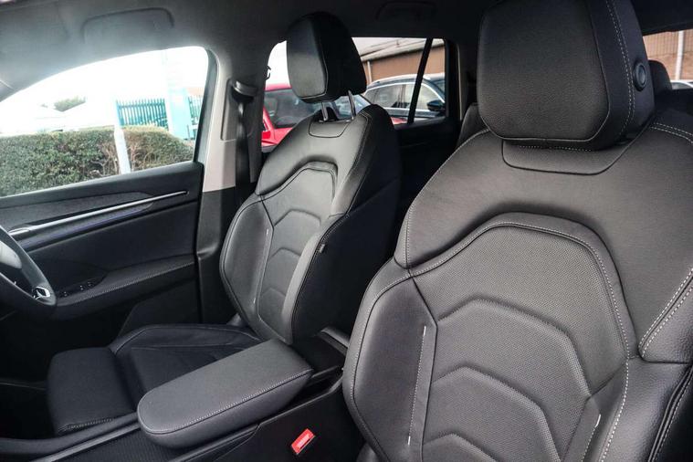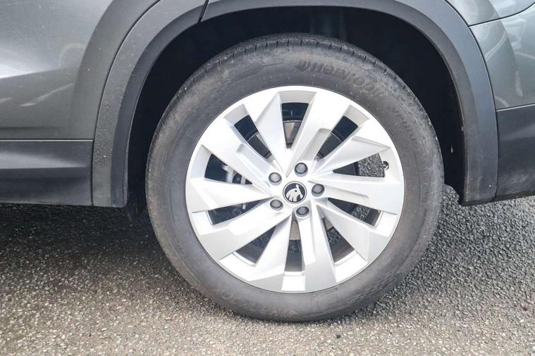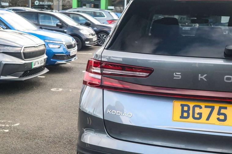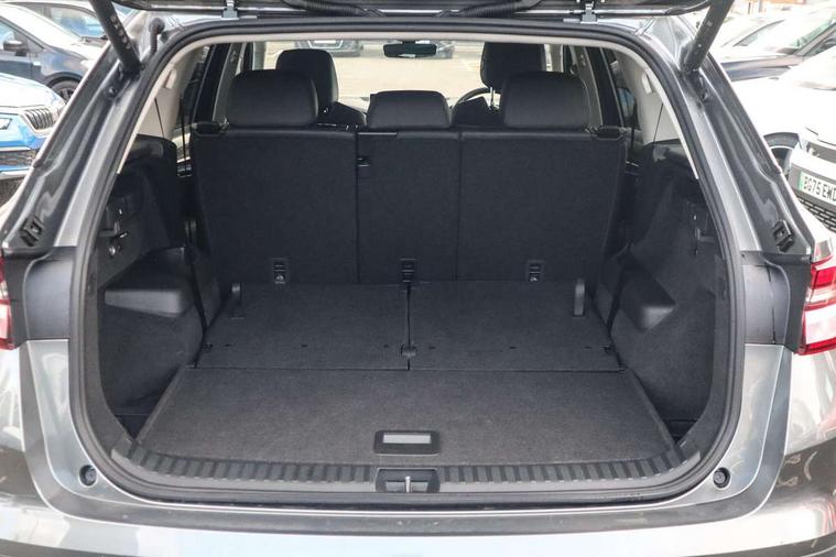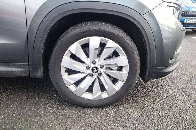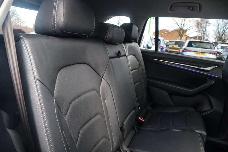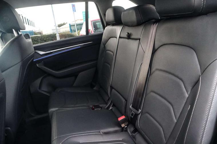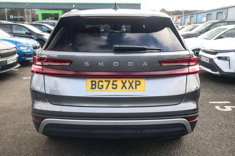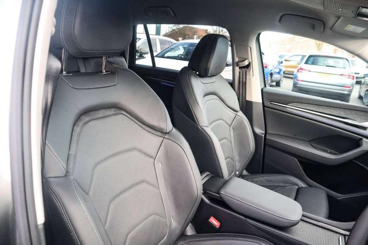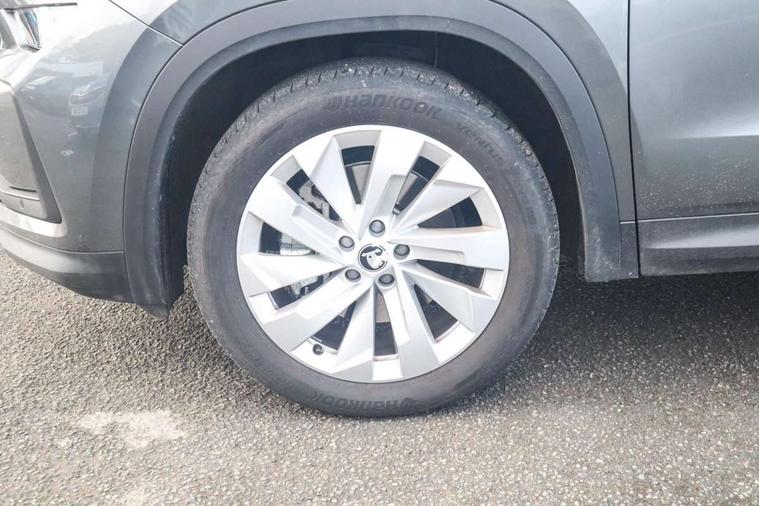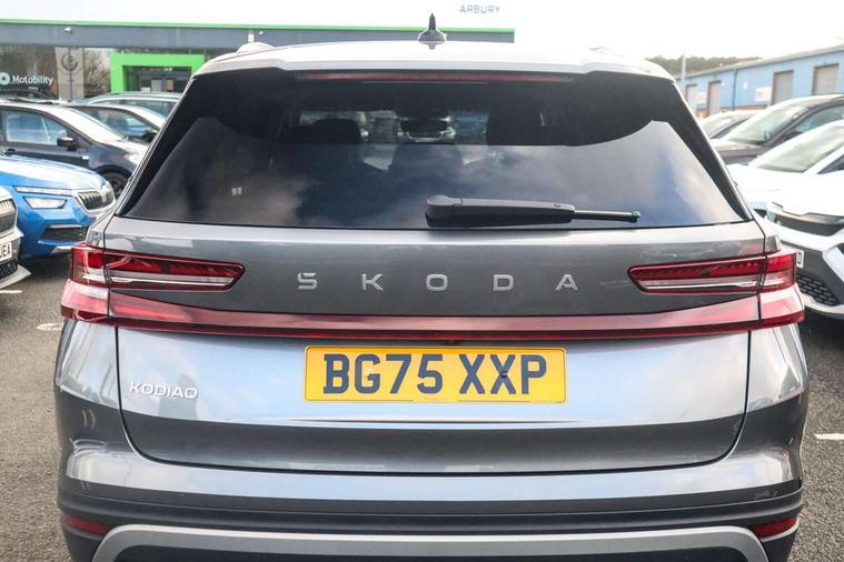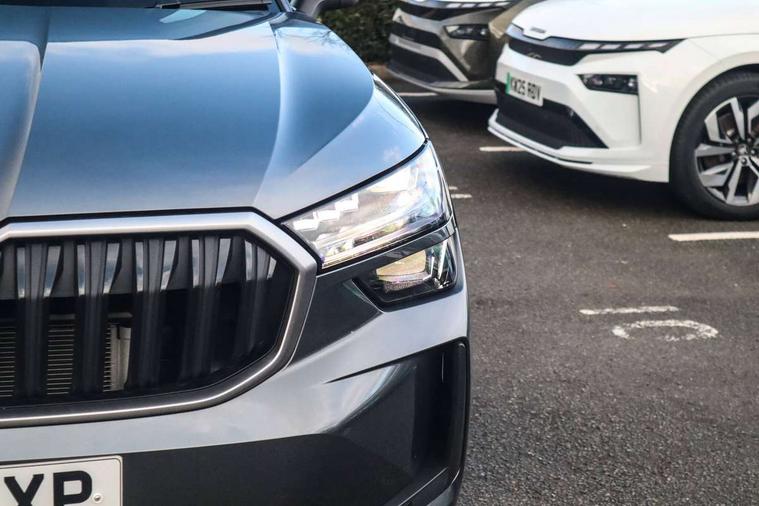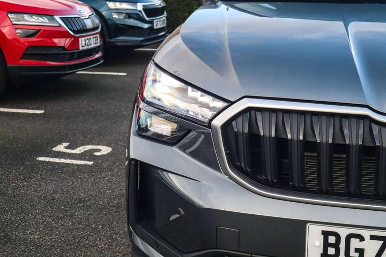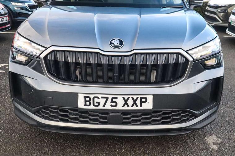 13" satellite navigation touchscreen display, Blind spot detection with door exit warning, Bluetooth system, ChatGPT functionality, Driver alert - Fatigue and drowsiness monitor, Dry display cleaner, Emergency call, Front and rear parking sensors, Front cross traffic assist, Lane assist, PAS, Rear traffic assist, Tailgate unlocking from outside, Traffic sign recognition, USB C Port x 2 in front centre console, Virtual Cockpit - 10.25" digital display, Voice control system, Wireless charging for two smartphones (15W) with cooling function, Wireless SmartLink for Apple CarPlay and Android Auto, Stop/start function, 2x USB-C in the rear, DAB Digital radio, Aero front windscreen wipers with intermittent function, Auto dimming rear view mirror, AWL (all weather lighting) and all weather light with cornering function, Black wheel arch surrounds, Body colour bumpers, Body colour door mirrors and handles, Cornering light and poor weather light, Electric folding /adjustable/separted heated/folding door mirrors, auto dimming with boarding sports and memory function, Electric front and rear windows, Exterior black decorative trims, Front grille with horizontal light strip, Heat insulating glass in windshield, Heated rear window, Ice scraper in fuel tank cap, Invisible tailpipe, LED daytime running lights, LED matrix headlights with AFS and LED fog lights, LED rear light with welcome effect and dynamic turn signals, LED third brake light in rear spoiler, Light assistant with automatic headlight control and coming home feature, Logo projection in door mirrors, Multiple matrix beam, Privacy glass, Rear roof spoiler, Rear side wing doors, Rear window wiper, Red decorative strip between rear LED lights, Safety reflectors on front and rear doors, Unique dark chrome design logo on alloy wheels, Window control switches with black trim, Windscreen wipers with rain sensor, Without engine designation, 1.5l bottle holder points in all door, 1x centre rear reading light, 2 seat bench in 3rd row, 2 spoke multi-function leather heated steering wheel with paddle shift, 3 configurable smart dials with 32mm coloured display, 3 seat bench in 2nd row, 4 foldable roof handles with rear coat hooks, Ambient interior lighting - Dashboard, front-door stowage compartments, front and rear door panels and footwell lighting, Automatic gear selector on steering column, Chrome interior door handles, Driver/front passenger reading lights, Fabric headlining, Fixed bench 40:60:40 split folding backrests, Front and rear floor mats, Front centre armrest with jumbo box storage compartment, cup holder and 12V socket, Height adjustable front headrests, Isofix child seat fittings in outer middle row rear seats and front passenger with top tether, Manually adjustable steering column, Pollen filter, Rear centre armrest with cupholders, Rear seat boot backrest release, Single front passenger seat, Skoda lettering on steering wheel, Storage pocket including mobile phone pockets on the backs of the front seats, Sunvisors with illuminated vanity mirrors, Three rear height adjustable headrests, Ticket holder on A Pillar, Tri zone climate control, Umbrella in door panel x1 made from sustainable materials, Upper and lower glovebox with card holder and coin compartment, USB C port by rear view mirror for charging only (15W), Exterior styling pack - Kodiaq, Auto door release and activation of warning lights in the event of an accident, Driver and front passenger airbag with knee airbag and front passenger airbag deactivation, Electric child locks, Electronic parking brake, ESC (incl. ABS+EMD+MSR+ASR+EDL+HBA+DSR+RBS+ESBS+MCB+TSA+XDS), Front assist with braking reaction to vehicles, pedestrians and cyclists, Front disc brakes, Fuel cut off safety device, Height adjustable front 3 point seatbelts + pretensioners, Hill hold assist, Junction assist with automatic emergency braking, Rear disc brakes, Safety vest holder in door, Seat belt reminder for all seats, Three point rear seat belts, Two tone horn, Tyre pressure monitor, Anti-theft wheel bolts, Immobiliser, Remote central locking with 2 keys,