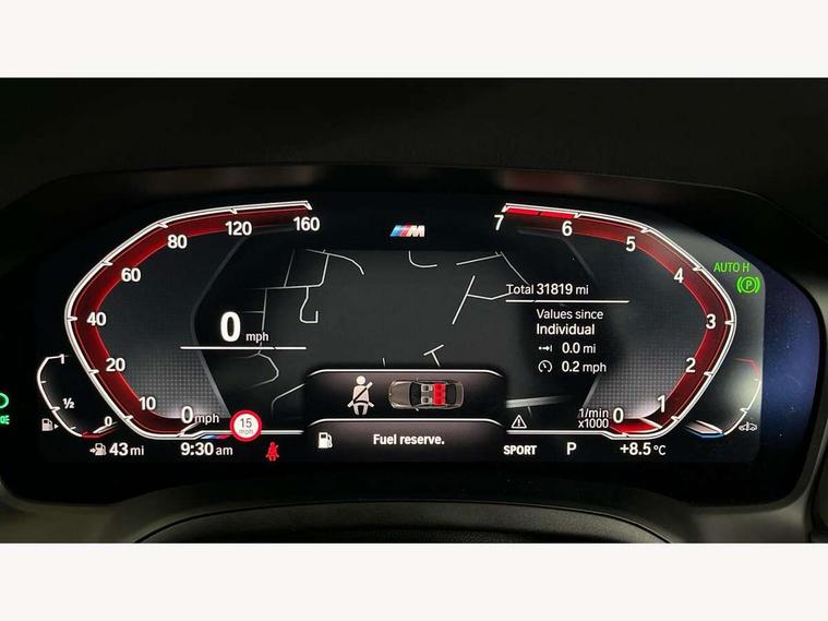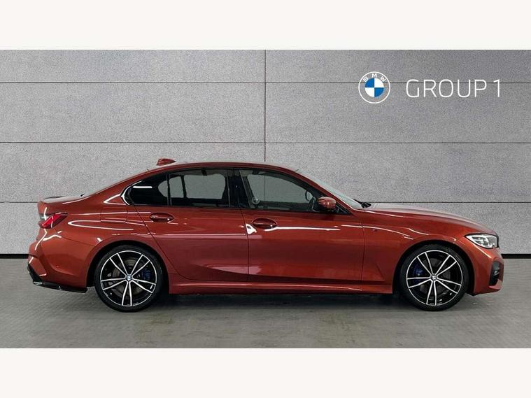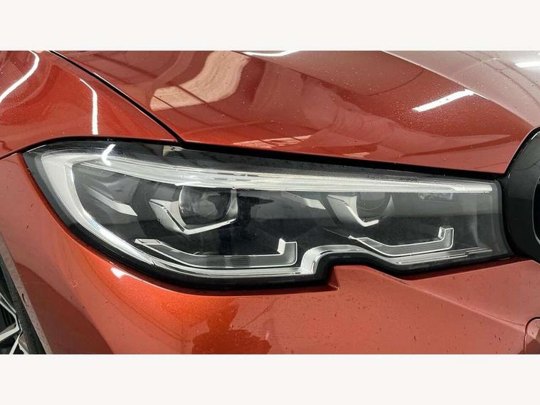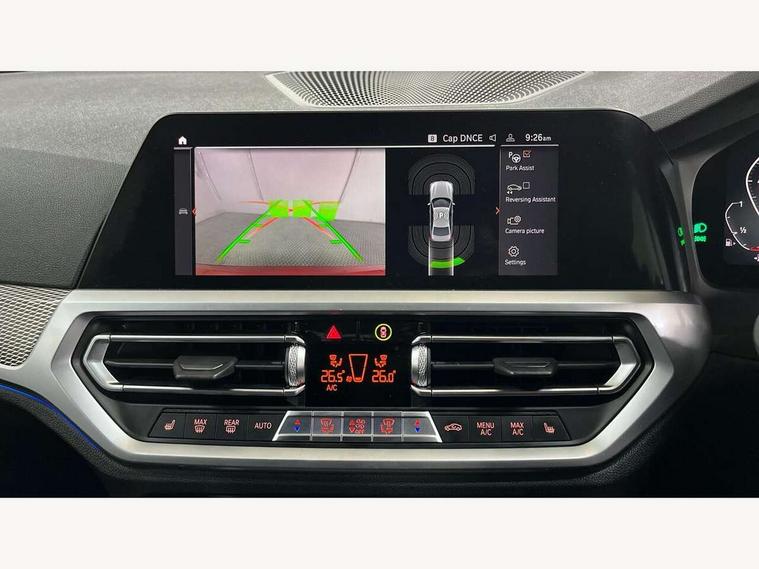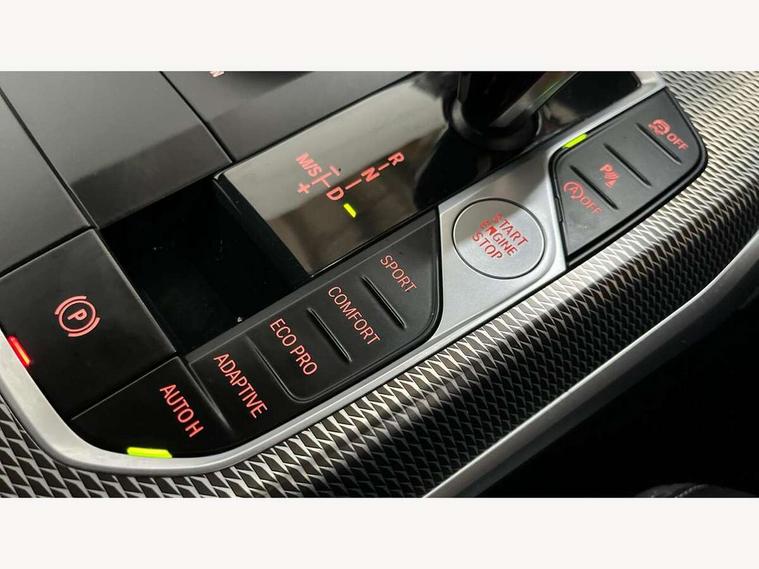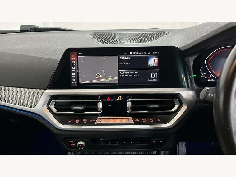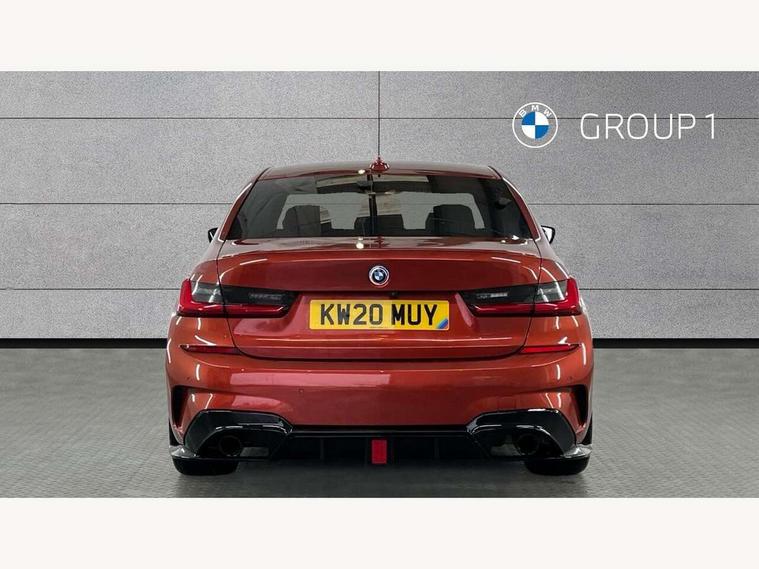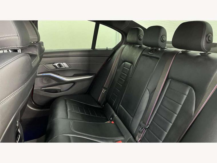 Active guard plus, Attentiveness assist, Auto start-stop, BMW iDrive controller on centre console, BMW Live Cockpit Professional Nav with 12.3" instrument display + 10.25" display, Intelligent Voice Assist, BMW OS 7, HDD, 2USB, 4G LTE connect, BMW service history, BMW Teleservices, Brake pad wear indicator in front and rear, Check Control warning system for monitoring of lights and door/luggage compartment open warning, Condition based service, Electric power steering with Servotronic steering optimised at all speed ranges, Instrument cluster with speedometer with mph readout, tachometer, fuel gauge and oil temperature gauge, Integrated owners handbook, Oil sensor for level and grade, warning by check control system, On board computer - average speed+fuel consumption, service interval, clock/date, odometer/trip meter, outside temperature display and ice warning, Optimum shift indicator, Personal Profile - automatic lock when driving away selectable, Variable sport steering, Balanced 50/50 weight distribution, Battery cut-out switch, Drive performance control - ECO PRO, comfort and sport modes, Larger capacity fuel tank, M sport suspension, Petrol Particulate Filter, Sport automatic transmission with steering-wheel mounted gearshift paddles and launch control, Stroke dependent dampers, DAB tuner, Electronic service booklet, Acoustic glazing, Automatic headlight beam throw control with load dependent regulating reaction, dynamic compensation of braking dive and acceleration squat, Black roof mouldings, Body colour door handles, Body colour fuel filler flap, Body colour mirror caps, Dynamic brake lights, Electric windows - front and rear, with open/close fingertip control, anti-trap facility and comfort closing, Exhaust tailpipe - split left and right, Exterior mirrors - electrically folding with anti-dazzle, Fading support, Front and rear bumper system with replaceable deformation elements, Front black door sill finishers with BMW designation, Green tinted heat protection glazing, High gloss shadow line exterior trim, Interior rear view electrochromatic mirror with automatic anti dazzle function, LED daytime running lights, LED front fog lights, Lightweight engineering, M designation on front side panels, left and right, Matt black exterior B pillar, Model designation on right side of tailgate, Rain sensor with automatic headlight activation, Shark fin antenna, Two part LED tailights in L-shape with components in smoked glass, brake light, LED turn indicator and rear fog light, Visible VIN plate, Welcome lights in interior and door handle area, Windscreen wipers with integrated washing jets, 12V power socket in front storage compartment, 2 front cupholder in centre console with clamping elements and matt black inlay, 3 rear seats with non folding headrests with 3 point seat belts, 3 zone automatic air conditioning, 4 pieces lashing eyelets in luggage compartment, 40:20:40 split folding rear seat with loading system, Ambient lighting with welcome carpet light, Anthracite headlining, Armrest integrated in front and rear door trim + front centre console armrest, Centred top Luggage compartment lights, Four grab handles integrated in roof lining, Front and rear door exit lighting (left / right), Front and rear door pockets, Front and rear reading lights, Front and rear velour floor mats, Front head restraints, Front sport seats, Heated driver and front passenger seats, Height adjustable mechanically and infinitely variable steering column, Illuminated armrest storage compartment, Illuminated glove compartment with separate small compartment, Interior lighting - front centre over interior mirror with soft light, rear centre and front and rear footwell lighting, M Sport multifunction leather steering wheel, Make-up mirror lights, Rear centre armrest with 2 cupholders, Rear centre console with storage compartment and ventilation grille, Sunvisors with vanity mirrors and ticket pocket, Toolkit located in luggage compartment, Connected pack professional - 3 Series Saloon/Touring, M Aerodynamics pack - 3 Series Saloon/Touring, 2 tone horn, BMW emergency call, Brake energy regeneration, Braking pre-tensioning, Child proof locking system in rear door, Child seat ISOFIX attachment rear outer seats, Coasting in idle in ECO PRO mode, Crash sensor activating of airbags, Unlocking doors, hazard warning lights, interior light, safety battery terminal, Driver and front passenger side airbags, integrated in the door side seat backrest bolsters for all seat variants, Driver/Front Passenger airbags, Dry braking, Dynamic brake control, Dynamic stability control + (DSC+) - Anti-lock Braking System (ABS) with brake assist and cornering brake control + Automatic Stability Control (ASC), Dynamic Traction Control - DTC, Electric parking brake including automatic hold function and automatic release of the parking brake when driving off, Electronic differential lock control (EDLC), Front passenger manual airbag deactivation, Head airbags for all 4 outer seats, Hill start assist, Seat belt security check for driver and front passenger, Side impact protection, Three 3 point seat belts on all seats including front belt stopper, pyrotechnic belt tensioners and belt force limiters, Tyre pressure monitoring with three level warning strategy, Ventilated front and rear disc brakes, Warning triangle and first aid kit, Alarm system (Thatcham 1) with remote control and electronic engine immobiliser, Central locking switch for all doors, fuel filler cap and luggage compartment, Remote control with integrated key one button open/close vehicle and windows, sole opening of the luggage compartment lid and panic mode, Start/stop button with Comfort Go keyless engine start and auto Start/stop deactivation button, Vehicle key with M specific designation, Reduced rolling resistance tyres,
