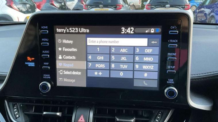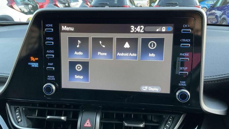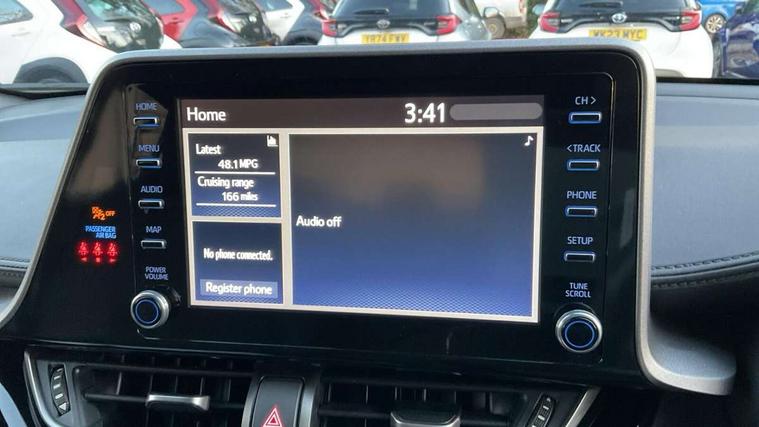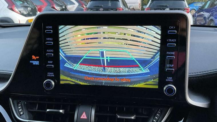4.2" coloured TFT screen for multi-information display, Adaptive cruise control, Bluetooth connectivity, E-call, Electric power steering, Hybrid system indicator, Lane departure alert with steering control, Lane trace assist, Push button start, Push button tailgate release, Remote boot door release in cabin, Remote boot door release in key, Reversing camera, Road sign assist - RSA, Smart voice assist, Trip computer, Voice recognition, Vehicle Stability Control (VSC), 6 speakers, AM/FM radio, DAB Radio (Digital Audio Broadcasting), Toyota touch 2 multimedia system with 8" display, USB connector, Wi-fi connectivity, Anti-jam protection on power windows, Auto high beam, Auto up and down function on all power windows, Automatic headlights, Automatic headlights cut-off, Black and body coloured rear bumper, Black lower front grille, Black upper front grille, Body colour door handles, Body colour door mirrors, Body colour front spoiler lip, Body coloured front bumper, Boot door release with push button, Electric heated door mirrors, Follow me home headlights, Front and rear power windows, Front fog lights, Headlight cut off reminder, Honeycomb lower front grille, LED daytime running lights, LED High mounted stop light, LED rear brake lights, LED rear combination lights, Manual headlight levelling, Manually retractable door mirrors, Noise reduction layer on front windows and windscreen, Power adjustable door mirrors, Rear side wing doors, Rear spoiler, Rear tailgate, Rear window defogger, Rear window wiper, Reflective LED headlights, Shark fin antenna, UV-filter on driver and passenger windows, UV-filter on rear windows, 12v power outlet - front, 3 rear headrests, 3 seat bench in 2nd row, 3 spoke leather steering wheel, 60/40 split folding rear seat, Adjustable rear headrests, Adjustable speed limiter switch on steering wheel, Assist grips front and centre pillar, Audio and telephone switches on steering wheel, Black front door assist grips, Boot light, Chrome interior door handles, Cloth upholstery, Driver and front passenger personal light, Driver and front passenger Whiplash Injury Lessening seats, Dual zone automatic air conditioning, Floor mats, Front cupholders, Front head restraints, Front sports seats, Glovebox with internal light, Hard tonneau cover, Hooks for luggage holding net, Humidifying Nanoe air purifier, Illuminated entry system, Isofix attachments on outer rear seats, Leather gearshift, Light on driver sun visor, Light on passenger sun visor, Manual telescopic steering wheel, Manual tilt steering wheel, Manually adjustable lumbar support on driver seat, Manually height adjustable driver seat, Manually height adjustable front passenger seat, Manually reclining driver seat, Manually reclining front passenger seat, Manually sliding driver seat, Manually sliding front passenger seat, Microphone on front personal light, Mirror on driver sun visor, Mirror on passenger sun visor, Multimedia switches on steering wheel, Pollen filter, Shopping bag hooks, Single front passenger seat, Slow opening on lower glovebox, Voice recognition switch on steering wheel, 16 Disk front wheel brake, 3x3 point rear seatbelts, ABS+EBD+Brake assist, Electronic parking brake, Front and rear seatbelt reminder, Front passenger airbag on/off switch, Hill start assist control (HAC), Pre collision system with pedestrian detection, Pre-tensioners and force limiters, Rear door child safety locks, SRS Airbags - Driver + Front passenger, front side, front and rear curtain and driver's knee airbags, Toyota safety sense, Tyre pressure monitoring system, Tyre pressure warning system, Acoustic vehicle alert system (AVAS), Glass-breaking alarm sensors, Immobiliser, Intrusion alarm, Intrusion sensor, Motion sensor alarm, Power door locks, Power passenger window lock, Remote central locking, Black lower dashboard, Black upper dashboard, Grey deco line on upper dashboard, Matte black centre console, Tyre repair kit,