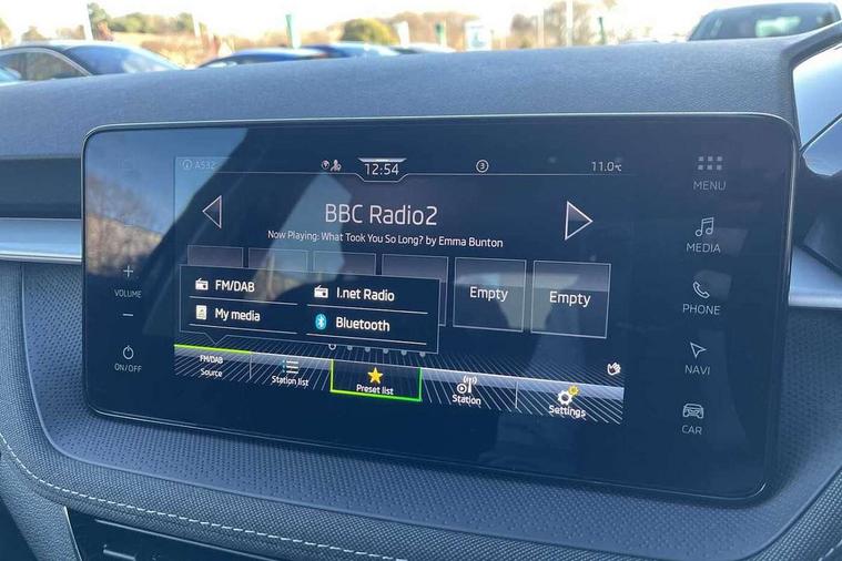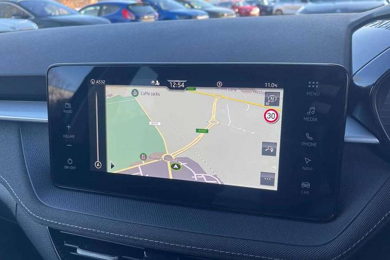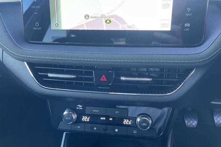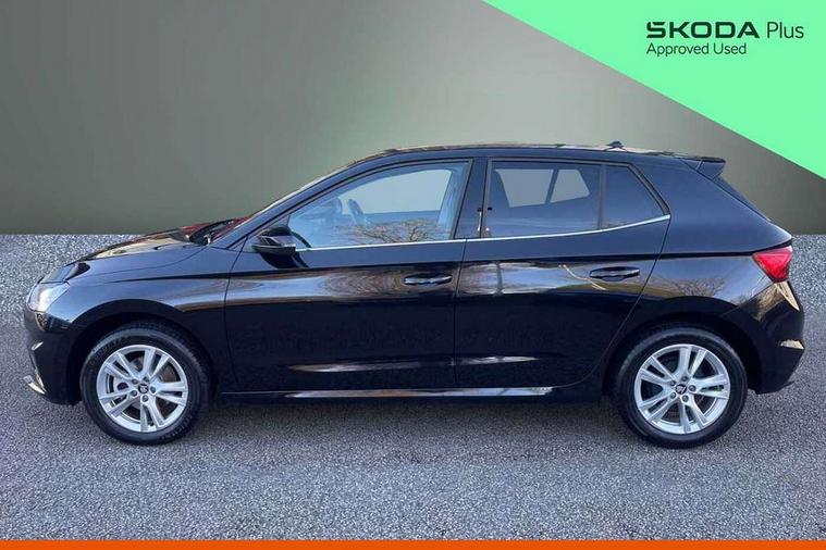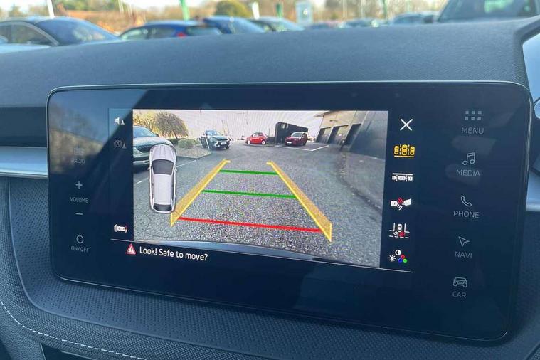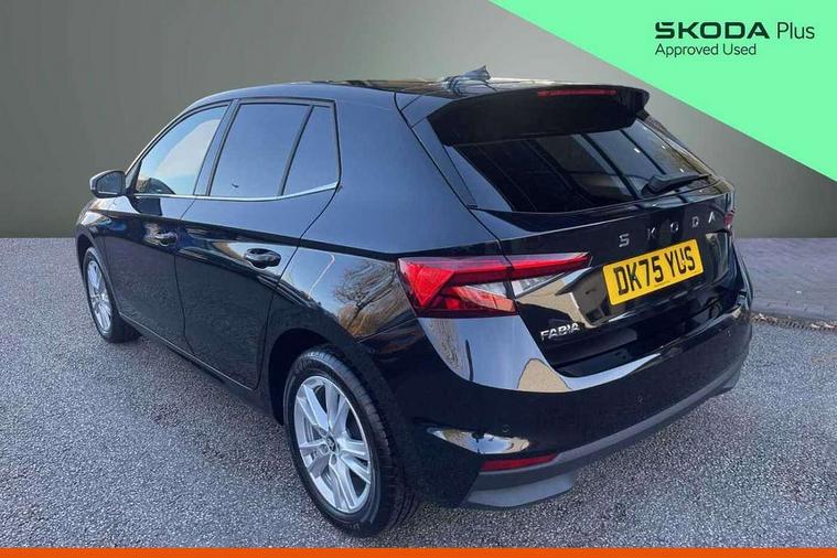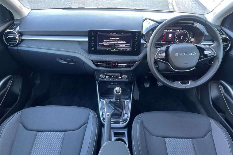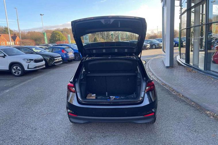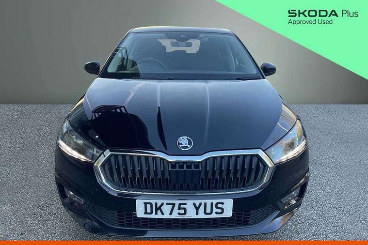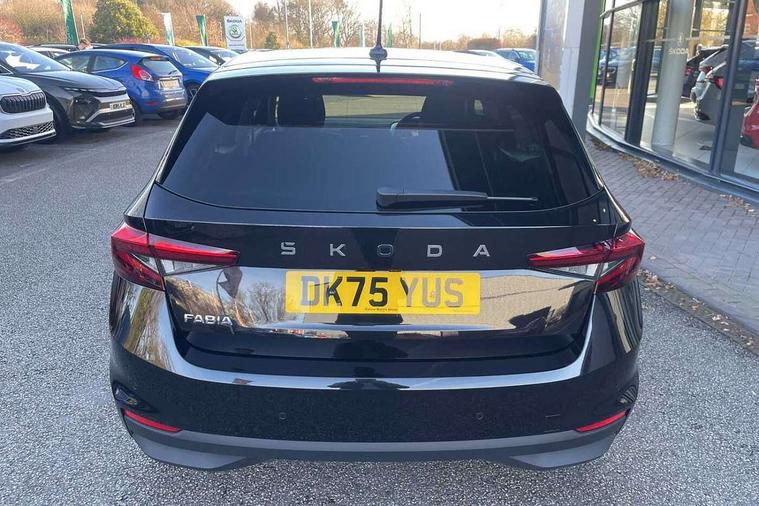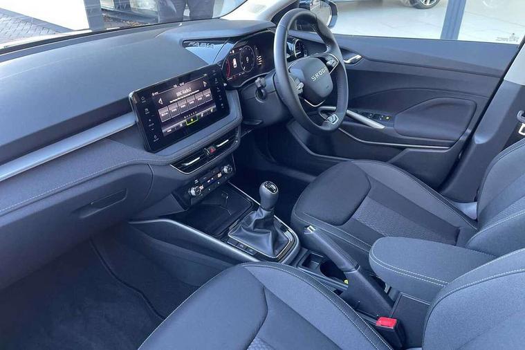 Advanced driver attention and drowsiness monitor, Bluetooth connection, Driver alert system, Electromechanical power steering, Exterior temperature gauge, Service interval indicator, Traffic sign recognition, Virtual cockpit with 10.25" colour display, Wireless SmartLink for Apple CarPlay and Android Auto, 6 Speakers (4 in front and 2 in rear), 9.2" colour display skoda navigation system with voice control and web radio, Auxiliary socket for external MP3 player, DAB digital radio reception, Auto dimming rear view mirror, Body colour door mirrors, Body coloured bumpers, Chrome window surround, Door mirror integrated indicators, Front and rear electric windows, Front window wiper intermittent control, Headlight range control - Automatic, Ice scraper in fuel cap, LED 3rd brake light, LED daytime running lights with coming and leaving home feature, LED rear lights, Privacy glass, Rear LED fog light, Rear side wing doors, Rear window wiper with washing nozzles, Roof mounted spoiler, SKODA tailgate lettering in chrome, Unique dark chrome design logo on alloy wheels, 2 LED reading lights in front and rear, 3 rear headrests, Backrest split and folding, Central console with fixed cup holder and storage box, Chrome handbrake release button, Comfort seats, Door sills with fabia badging, Dual zone air conditioning with climatronic electronic control, Fabric upholstery, Front centre armrest, Gearshift knob/handle in leather, Grain satin black interior door handles, Hand brake lever handle in leather, Height adjustable front headrests, Height adjustable front seats, Height adjustable steering wheel, ISOFIX and TopTether anchorage points to the outer rear seats, ISOFIX and TopTether on the front passenger seat, Luggage compartment lighting, Manually adjustable lumbar support in front seats, Pollen filter, Rear seat bench unsplit, Single front passenger seat, Skoda lettering on steering wheel, Storm grey headlining, Sun visors with mirror and airbag label on passenger side, Textile floor mats, Ticket holder, Umbrella in drivers door, Ambient lighting pack - Fabia Hatchback, 3-point height adjustable front seats belts with pretensioner and force limiter, Automatic warning lights in case of crash, Driver and passengers airbag with switch off function, e-Call+, ESC including ABS, MSR, ASR, EDS, HBA and XDS, Front and rear seat belt warning, FRONT ASSIST (AEB City and AEB Inter Urban), Front side airbags, Head airbags, One tone horn, Pedestrian protection, Three rear 3-points safety seat belts with pretensioner and force limiter including stop function for outer rear seat belts, Tyre pressure monitoring system, Anti-theft alarm system including immobiliser, interior monitoring, backup horn, and towing protection, Central locking with radio remote control, interior controls, SAFE function and 2 foldable keys, Chrome edged air vents, Grain satin black central console cover, Metallic grey upper decorative trim, Satin black door and side trim panel in front, Textile microsuede grey lower decorative trim with art grey stitching, Anti-theft wheel bolts protection, Super-low rolling resistance tyres,