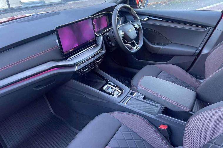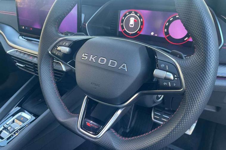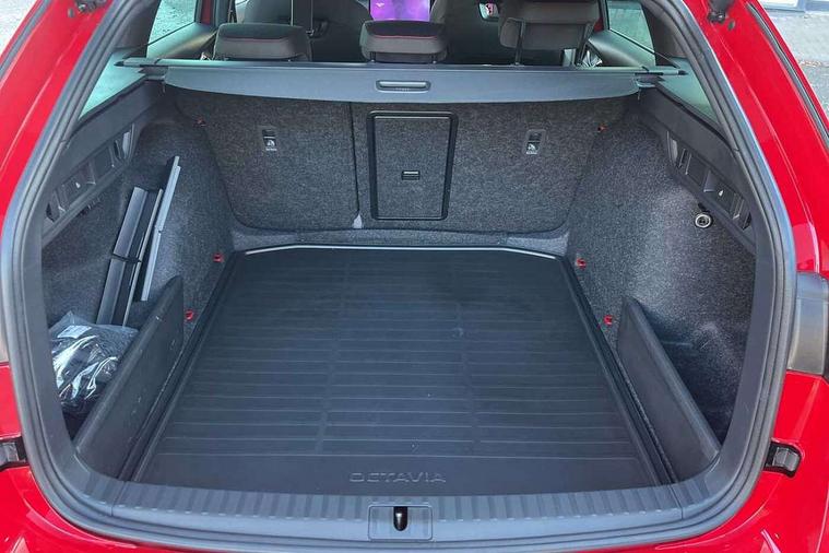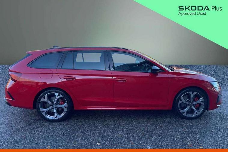 1x USB Typc C port in rear view mirror, 4x USB Type C ports - 2x in front centre console and 2x in rear (45W), Drive mode selection, Driver fatigue sensor, eCall emergency system, Electronic engine sound, Front assist system, Progressive dynamic steering, Traffic sign recognition, Turn Assist, Virtual Cockpit - 10.25" digital display, Voice control system, Wireless charging (15W) with cooling function, Wireless SmartLink for Apple CarPlay and Android Auto, Electronically controlled limited slip differential, vRS suspension, 13" touchscreen display with navigation, DAB Digital radio, Aero front windscreen wipers with intermittent function, Auto dimming rear view mirror, Black sport exhaust pipes, Body colour bumpers, Body colour door handles, Bumpers with rear red reflector strip, Electric front and rear windows, Exterior gloss black sports styling including front grille, window surrounds, door mirrors and badging, Gloss black diffuser, Gloss black roof rails, Gloss black spoiler, Heated rear windscreen, High beam control, High level third brake light, Ice scraper in fuel cap, LED daytime running lights, Logo projection in front doors, Rain and light sensors, Rear fog light on one side and reversing lights on both sides, Rear privacy glass, Rear side wing doors, Rear window wiper, Unique vRS bumpers and exterior styling, 12 volt socket in boot, 2x umbrella in door, 3 rear headrests, 3 seat bench in 2nd row, 4 foldable roof handles, Aluminium pedals, Front head restraints, Front sport seats, Heated front seats, Illuminated glovebox, Interior door handles in dark chrome, Jumbo Box storage, Luggage compartment lighting x2 lights, Mechanical rear seat release from boot, Single front passenger seat, Steering wheel in black leather with black stitching, Storage compartments in left and right of boot, Sun visors with mirrors, Sunglasses storage, Three spoke leather sports multifunction steering wheel with paddles, Ticket holder, Unsplit rear bench seat, split folding backrest with centre armrest with cupholder, Waste bin in door panel, Comfort package - Octavia Estate, Family package - Octavia, Light and view package plus - Octavia, vRS Design Selection pack - Octavia, 3x3 point rear seat belts, Alarm with interior monitoring, tilt sensor and back up horn, Curtain airbags and front side airbags, Driver and front passenger airbags, Drivers knee airbag, Electronic parking brake, ESC including ABS, EBV, MSR, ASR, EDS, HBA, DSR, Front central airbag, Hill hold assist, ISOFIX on front passenger seat and outer rear seats, Passenger airbag deactivate switch, Red brake calipers, Three point seat belts in front and rear, Two tone horn, Tyre pressure monitor, Visual and acoustic seat belt reminder, Warning reflectors in front door, Anti-theft wheel bolts, Keyless entry and start/stop, Remote central locking, Gloss black air vent surrounds, 19" Elias anthracite alloy wheels,
