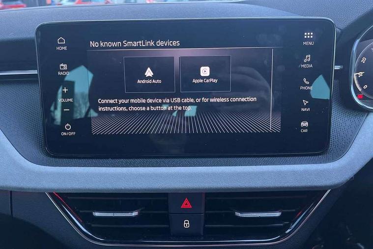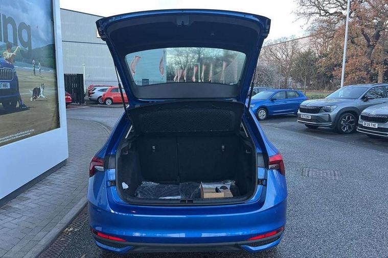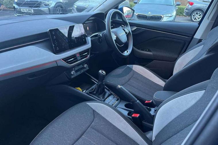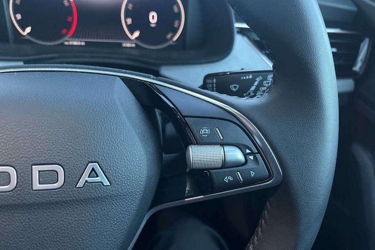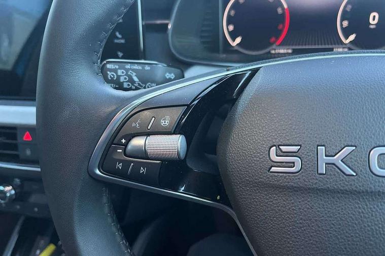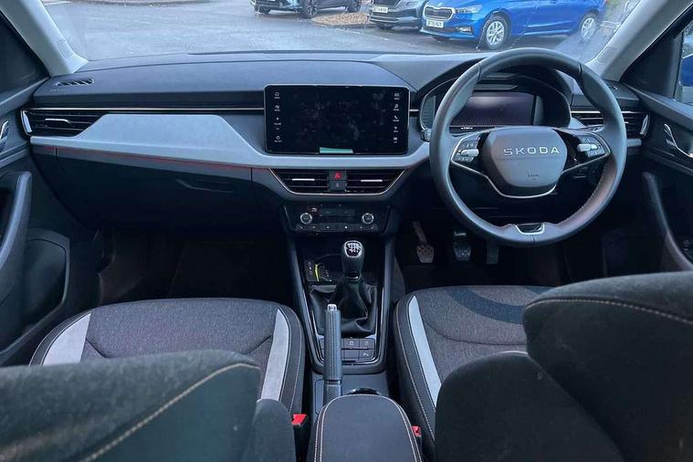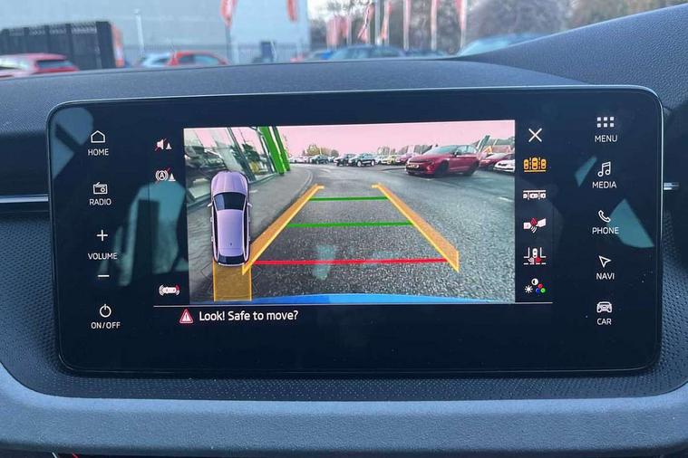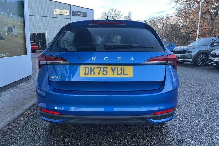 Advanced driver attention and drowsiness monitor, Bluetooth, e-Call (emergency call), Front assist system, PAS, Rear parking sensors, Rear view camera, Speed limiter, Tailgate, Traffic sign recognition, Virtual Cockpit - 10.25" digital display, Voice control system, Wireless smartlink, 4 USB C ports, 8 Speakers, 9.2" Skoda navigation display, DAB radio, Auto dimming rear view mirror, Automatic headlight control with manual coming and leaving home feature, Automatic intermittent wipers, Body colour bumpers, Body colour door mirrors and handles, Chrome moulding around grille, Chrome window frames, Front and rear electric windows, Heated rear window, LED 3rd brake light, LED daytime running lights, LED high beam, LED low beam, Light sensors, Privacy glass, Rear LED fog light, Rear side wing doors, Rear wiper, Tinted windows, Unique dark chrome design logo on alloy wheels, 12V socket in luggage compartment, 3 seat bench in 2nd row, Ambient lighting in white/red, Black / Copper armrest stitching, Cargo elements, Chrome inner door handles, Copper hotstamping, Door inserts in accent black, Driver and passenger sun visors with vanity mirror, Dual zone climate control, Front and rear roof lights, Front centre armrest, Front head restraints, Glasses storage in roof liner, Height adjustable driver seat, Height adjustable passenger seat, Ice scraper, Illuminated glove compartment, Inner circulation control with pollen filter, ISOFIX for front passenger seat, Isofix preparation for back seats, Leather gearknob and handbrake lever, Lodge cloth upholstery, Luggage net under rear parcel shelf, Manual lumbar support for front seats, Net package and top tether hooks in boot space, Pocket on the back of both front seats, incl. mobile phone pockets, Rear centre armrest, Single front passenger seat, Skoda lettering on steering wheel, Textile floor mats, Third rear headrest, Ticket holder, Top tether for front passenger seat, Umbrella in driver's door, Convenience pack without rear camera - Scala, 3x3 point rear seatbelts, ABS, Child locks, Curtain airbags and front side airbags, Disc brakes, Driver and front passenger airbags, ESP, Hill hold control, Manual leather parking brake, One tone horn, Passenger airbag switch off function, Seatbelt reminder for driver and front passenger, Tyre pressure monitoring system, Anti theft alarm system with interior monitoring, backup horn and towing protection, Anti-theft wheel bolts, Remote central locking with 2 remote folding keys, SAFE function for remote central locking, Decorative inserts,