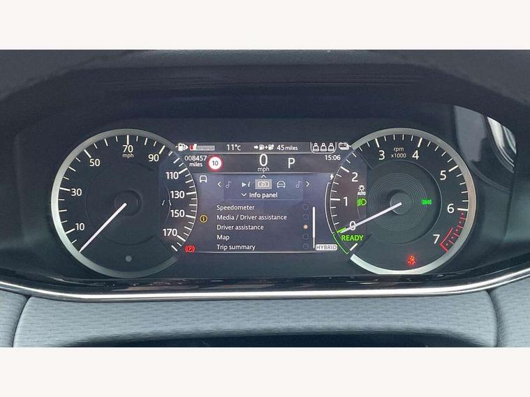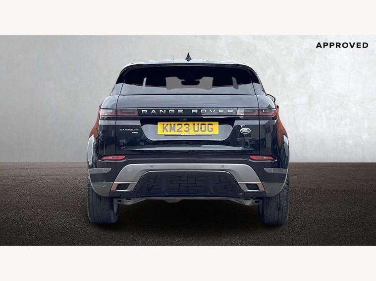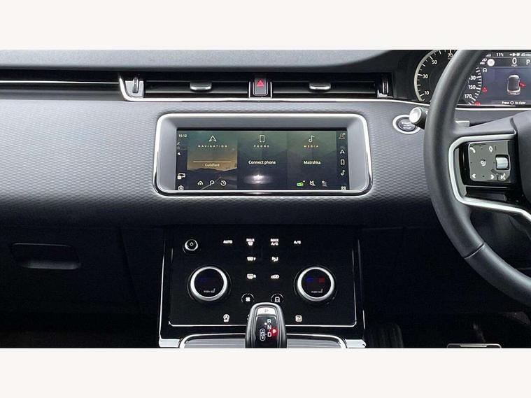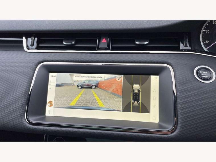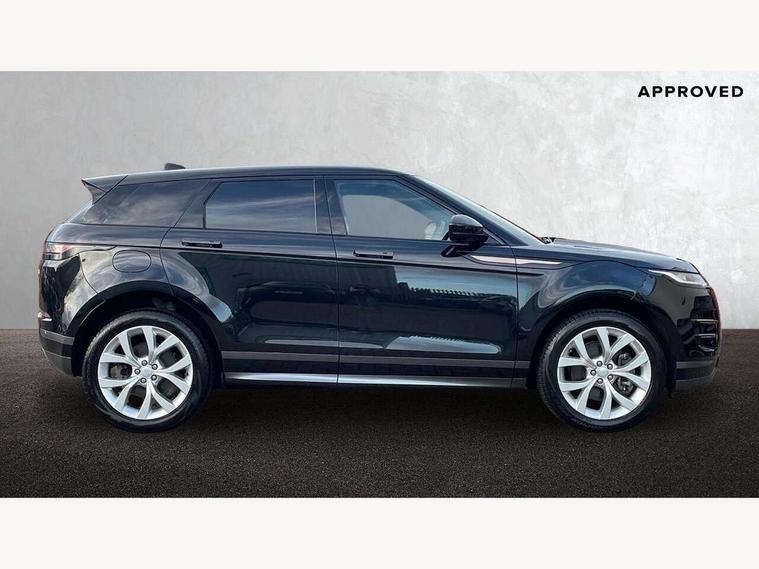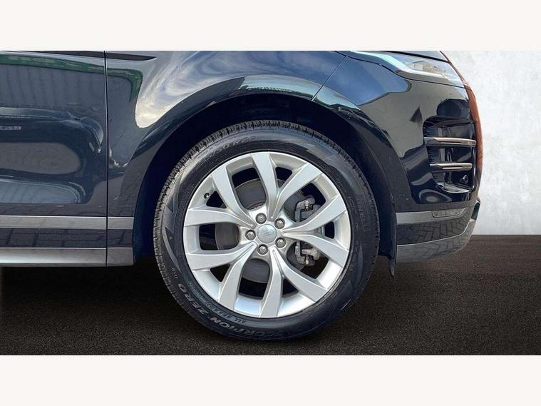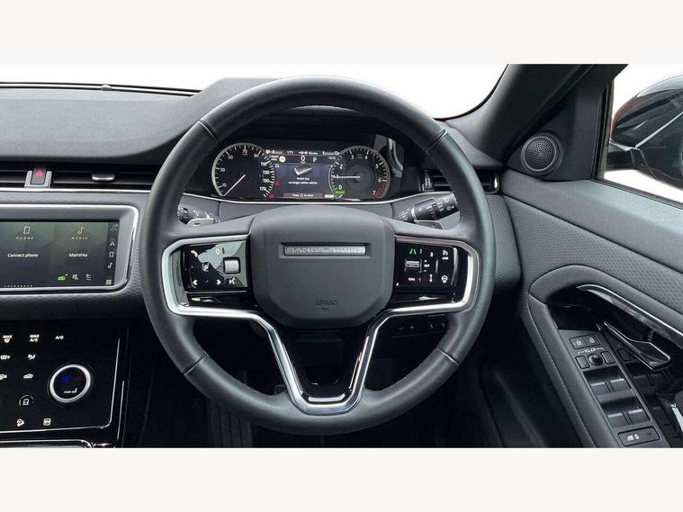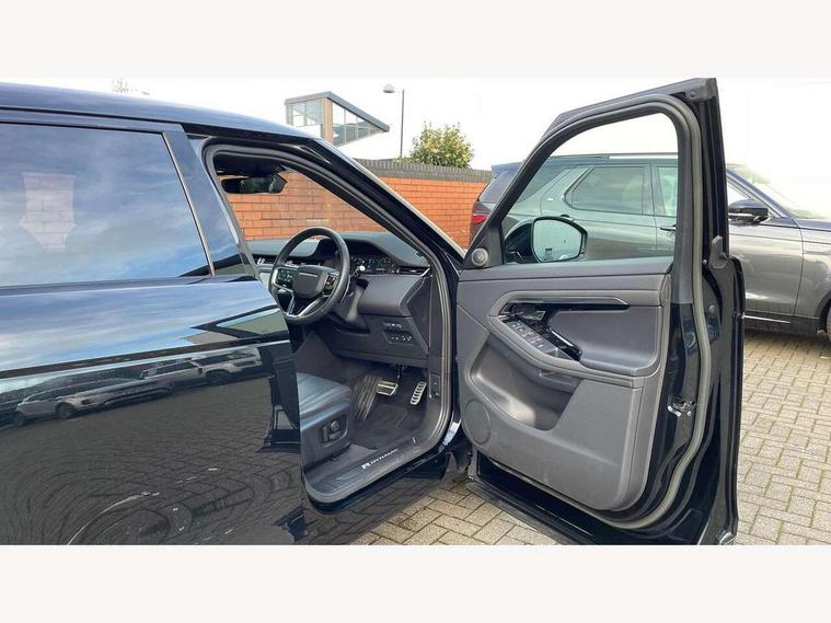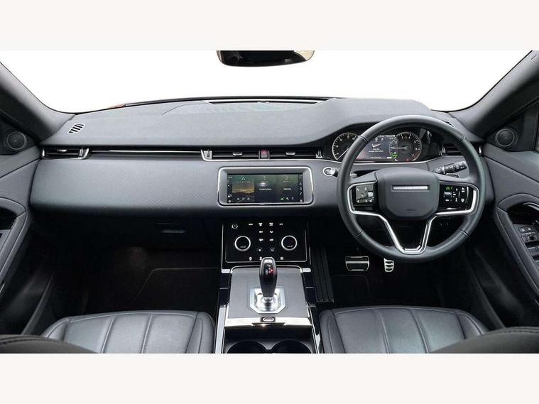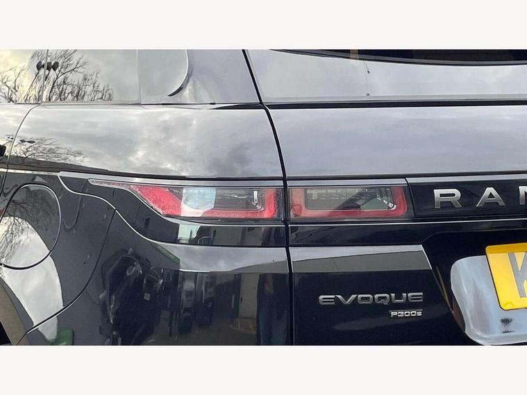 Adaptive cruise control, Android Auto, Apple car play, Bluetooth connectivity, Brake pad wear indicator warning light, Driver condition monitor, eCall emergency system, Electronic power assisted steering (EPAS), Front and rear parking aid, InControl remote, Land Rover InControl apps, Lane keep assist, Pivi pro connected includes upgraded infotainment, connected navigation pro, Nuance speech licence, Push button starter, Traffic sign recognition with adaptive speed limiter, Voice control system, 7 kW onboard charger, All terrain progress control, Electric rear axle drive, Home charging cable, Large fuel tank, Passive suspension, Public charging cable, Terrain Response 2 Auto, Digital Audio Broadcast radio-DAB, Steering wheel mounted controls, Auto headlights, Daytime running lights, Electric windows with one touch open/close and anti trap, Evoque and R-Dynamic badge, Flush deployable exterior door handles, Heated rear window with timer, Heated washer jets, Heated windscreen, P300e badge, Power fold, auto-dimming, heated door mirrors with approach lights and auto dimming driver side, Rain sensing windscreen wipers, Rear fog lights, Rear side wing doors, Rear wiper, Tailgate spoiler, Third brake light, 40:20:40 split folding rear seats with centre headrest and armrest, Ambient interior lighting, Bright metal pedals, Isofix system on outer rear seats, Overhead lighting console, Overhead stowage for sunglasses, Passive front head restraints, Rear air vents, Rear centre headrest, Rear head restraints, Satin chrome gearshift paddles, Single passenger seat, Sunvisors with illuminated vanity mirrors, Twin sliding front centre armrest, 3 rear 3 point seatbelts, Anti-lock braking system (ABS), Customer configurable autolock, DSC - Dynamic Stability Control, Electronic brake force distribution, Electronic parking brake, Electronic traction control, Emergency braking, Front and rear seatbelt reminder, Hill descent control, Hill launch assist, Low traction launch, Power operated child locks, Roll stability control, Six airbags - Driver and passenger airbags/driver knee airbag/front side airbag and curtain airbags, Torque vectoring brake, Tyre pressure monitoring system, Alarm, Immobiliser, Intrusion sensor, Locking wheel nuts,