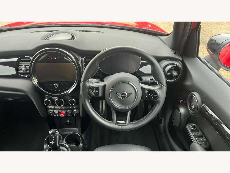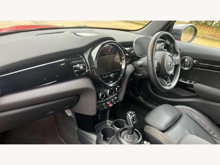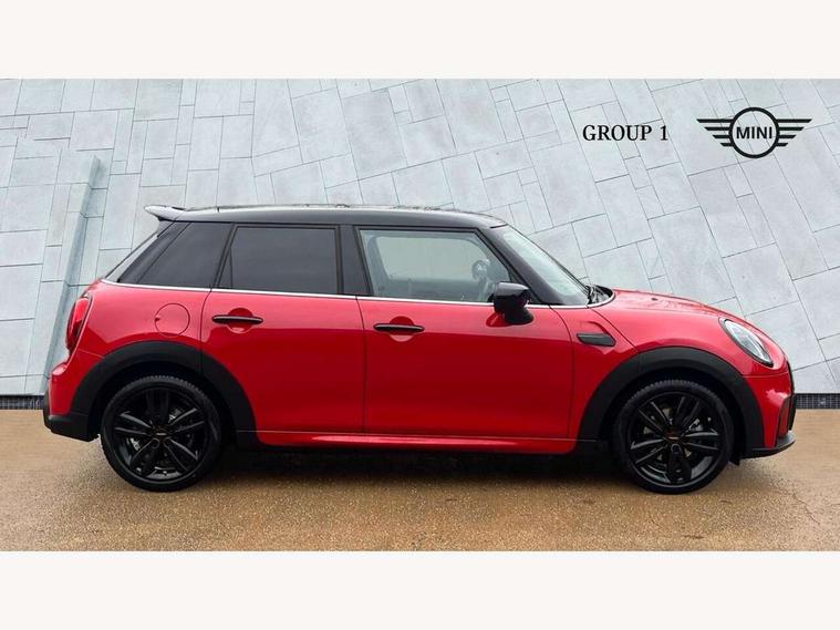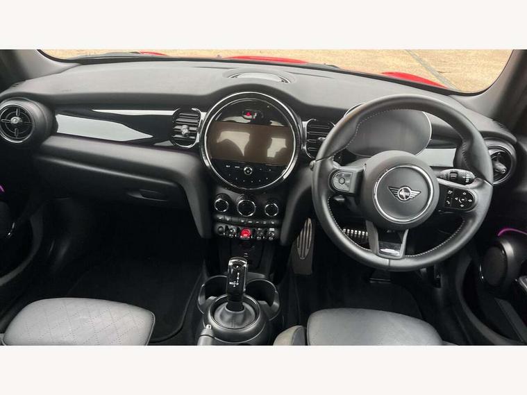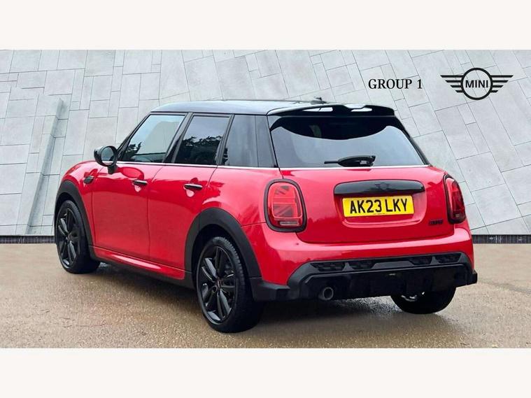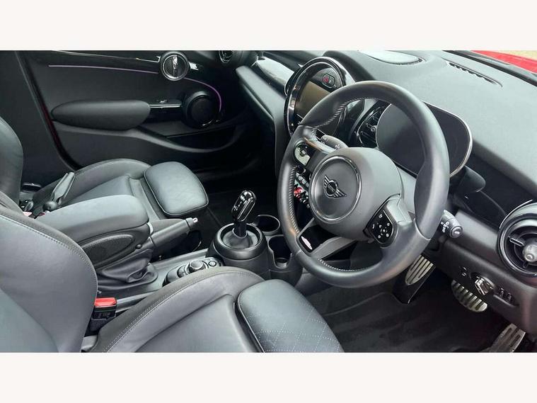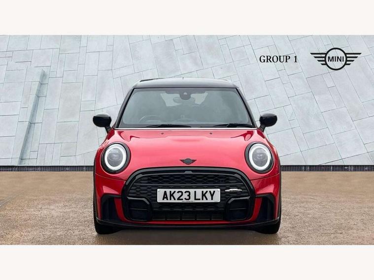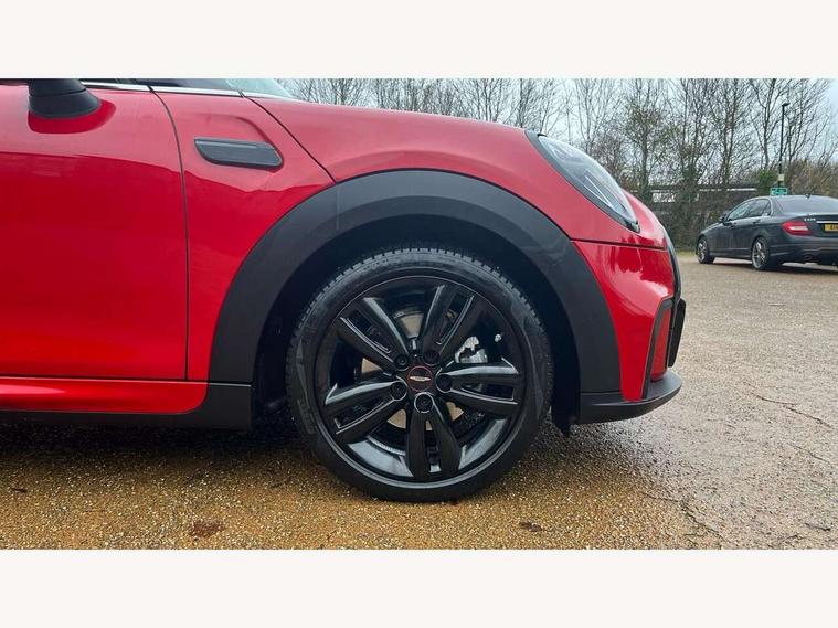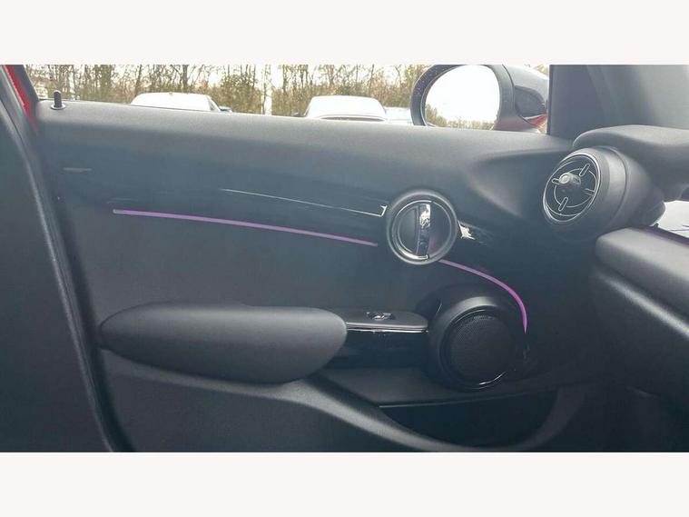 Apple CarPlay, Automatic start/stop function with brake energy recuperation, Compatible mobile phone bluetooth with audio streaming, Electro-mechanical speed dependant steering assistance, Flexible car sharing preparation, MINI Driving Modes - centre toggle switch to control driving setting (sport, mid and green), Mini E-call, MINI TeleServices, On board computer, Rear park distance control, Service interval indicator, Adaptive suspension, Double Vanos system, Fully variable valve control, Gear change indicator display, High precision injection, Performance Control, Steptronic transmission with double clutch, 8.8" touchscreen with LED ring, FM tuner and DAB digital radio, 3rd brake light, Automatic headlight activation switch, Body colour fuel filler cap, Chrome border high gloss black slats radiator grille, Dynamic brake lights, Electric front+rear windows, Exhaust tailpipe on left with chrome finisher, Heated rear window, Heated windscreen washer jets, JCW Aerodynamic kit - Front and rear bumpers with sporty JCW styling and part-painted side sills with MINI John Cooper Works door sill finishers, John Cooper Works rear spoiler, Metal door sill strips with MINI imprint, Model logo Cooper on right of tailgate, Rain sensor window wipers, Rear fog lights, Rear LED lights with union jack design, Rear side wing doors, Rear window wiper, Side scuttle panel with integrated indicator, Sun/heat protection glass, White indicator lenses, 12V Accessory socket in centre console, 3 seat bench in 2nd row, 4 lashing eyes in luggage compartment, 60/40 split folding rear seat, Anthracite headliner including grab handles and clothes hooks, Carbon black colour line - Knee roll and door armrest, Chrome interior highlights, Cupholders, Front and rear isofix with front passenger airbag deactivation, Front and rear velour floor mats, Glove compartment, Height and length steering column adjustment, Interior lighting with 12 different colours across the dashboard, underneath door bezel with illuminated laser-engraved design on central display, JCW Sport seats with integrated headrests, adjustable thigh support and John Cooper Works logo, Leatherette gearshift lever and handbrake gaiters, LED reading lights, vanity mirror lights, front foot well light and spotlight on front seats, Mechanical seat adjustment - forward/back & backrest for front seats and driver seat height adjust, Multifunction steering wheel, Single front passenger seat, Storage compartments in doors, Sunvisors with vanity mirrors, Walknappa leather steering wheel with grey seam and John Cooper Works badge on Piano Black lower steering wheel spoke, Piano black exterior pack - Mini Hatchback Cooper, 3 point seatbelts on all five seats, 6 Airbags - front, side, head and seat belt tensioners, Anti-lock braking system (ABS), Child locks on rear doors, DSC - Dynamic Stability Control, Front and rear disc brakes, Hill start assist, Single tone fanfare horn, Tyre pressure monitoring system, Alarm system with tilt sensor, monitoring doors, bonnet interior and tailgate, Electronic vehicle immobiliser, Start/stop toggle with keyless go, Piano black interior trim, Tool kit,
