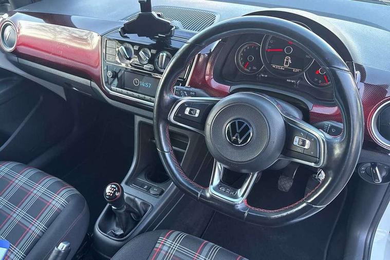Digital clock, Lane assist, Multifunction computer, One touch indicators, Rev counter, Speed sensitive power steering, Speedometer, electronic odometer and fuel gauge, Volkswagen connect, Body lowered sports suspension, Galvanished body, Start/stop function with battery regeneration, Composition colour system with 5" screen, DAB, AUX in socket, SD card, MP3/WMA/AAC, 4 X 20W, bluetooth, audio connection and USB connectivity, Smartphone answering button on multifunction steering wheel with audio over the vehicle speaker system, Smartphone interface navigation system, Antenna, Black decals above door sill, Black radiator grille, Body colour door handles, Body coloured bumpers, Chrome trimmed surround on light, Door sill protectors in stainless steel with black honeycomb pattern inset and GTI logo, Electric front windows, GTI badge, Halogen clear headlights with integrated indicators and range adjustable, Heated rear window, High level 3rd brake light, LED daytime running lights, LED rear number plate lights, Left side chrome exhaust tailpipe, Manually dimming rear view mirror, Rear fog lights, Rear tailgate spoiler in gloss black, Rear tinted glass from B pillar backwards, approx 65% tinted, Rear wash/wipe, Red Stripe on lower tailgate, Red stripe with chrome detailing on lower radiator grille, Unique GTI badging on front wings, rear tailgate and front radiator grille, Windscreen wipers intermittent wipe, 12V accessory power point in centre console, 2 cup holders in the front and rear centre console, Ambient lighting red below upper dashpad, Black roof lining, Cooled glovebox, Driver seat height adjust, Drivers and front passengers easy entry sliding seat with memory function, Drivers and front passengers sun visors with vanity mirrors, Folding front seat backrest release on front passenger seat, Front and rear carpet mats with contrast stitching in red and grey, Front head restraints, Front sports seats, GTI logo and red contrast stitching on steering wheel, Heating/ventilation unit with 4 speed fan, Height adjustable rear seat head restraints with red contrast stitching (x2), Height adjustable steering wheel, Interior light delay, Isofix Preparation 2 Rear child seats, Jacara red cloth upholstery, Jack and tool kit, Luggage compartment cover, Luggage compartment lighting, Multifunction leather trimmed three-spoke steering wheel, gear knob and handbrake grip, Storage compartment in front doors, Two rear seats with 60/40 split folding rear seat backrest, Variable boot floor, GTI styling pack - Up, Winter pack - Up, 3 point front seatbelts with pre-tensioners, Anti-lock braking system with EDL, EBD + TCS, Curtain airbags for front and rear passengers, Driver and front passenger airbag with front passenger airbag deactivation, Driver/front passenger side airbags, Engine drag torque control, Front disc brakes, High tone horn, Hill hold control, Hydraulic Brake Assist (HBA), Rear drum brakes, Red brake calipers, Two 3 point rear seatbelts, Tyre pressure loss indicator, Volkswagen roadside assistance, Warning buzzer and light for front and rear seat belts if unfastened, Electronic engine immobiliser, Locking fuel filler cap, Remote central locking with 2 remote folding keys, Chrome surrounds to the air vents, radio controls and air conditioning, Matt chrome trim on interior door handles, infotainment system + instrument cluster, Red pixels dash pad, 17" Oswald alloy wheels with anti theft wheel bolts, Tyre mobility system,